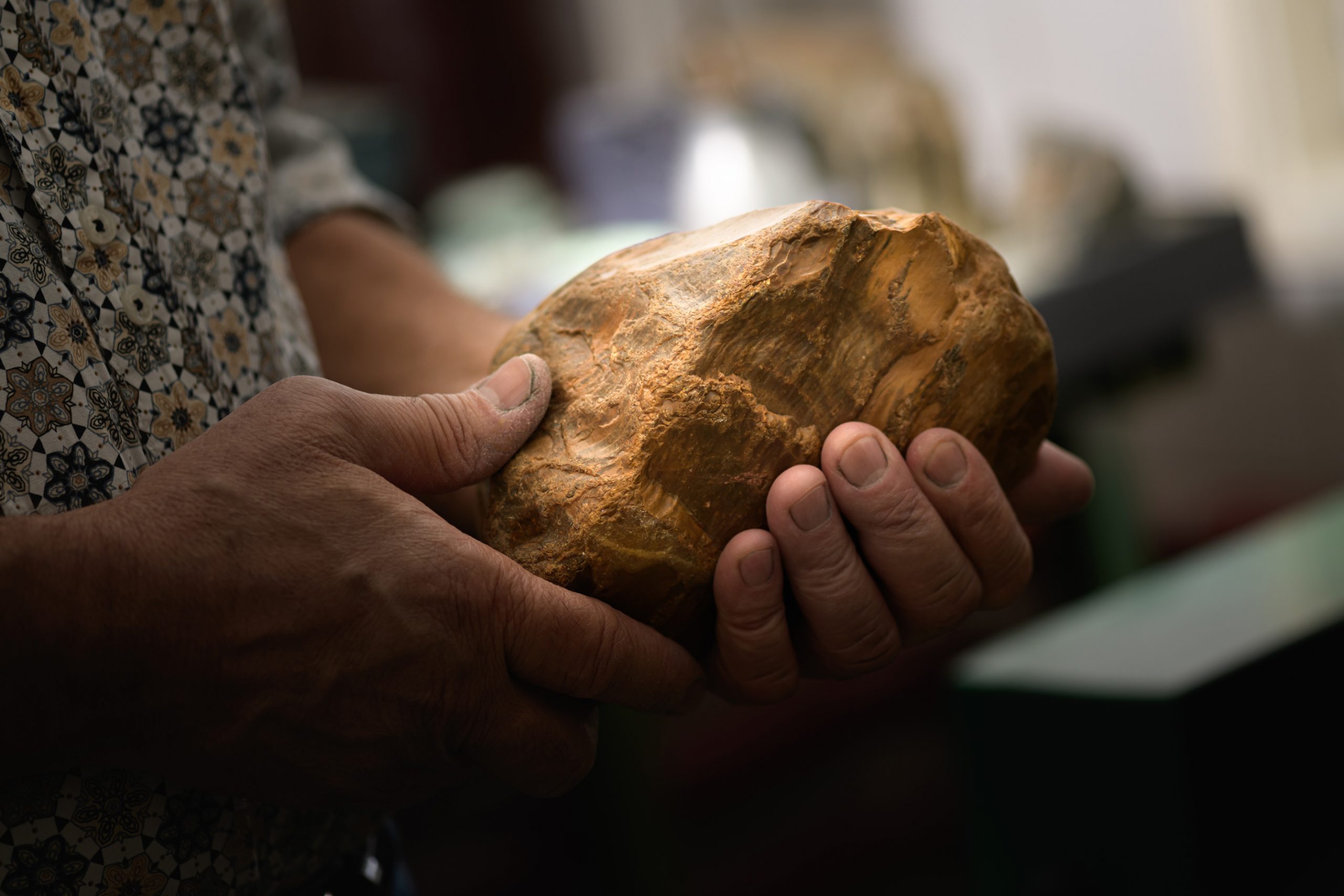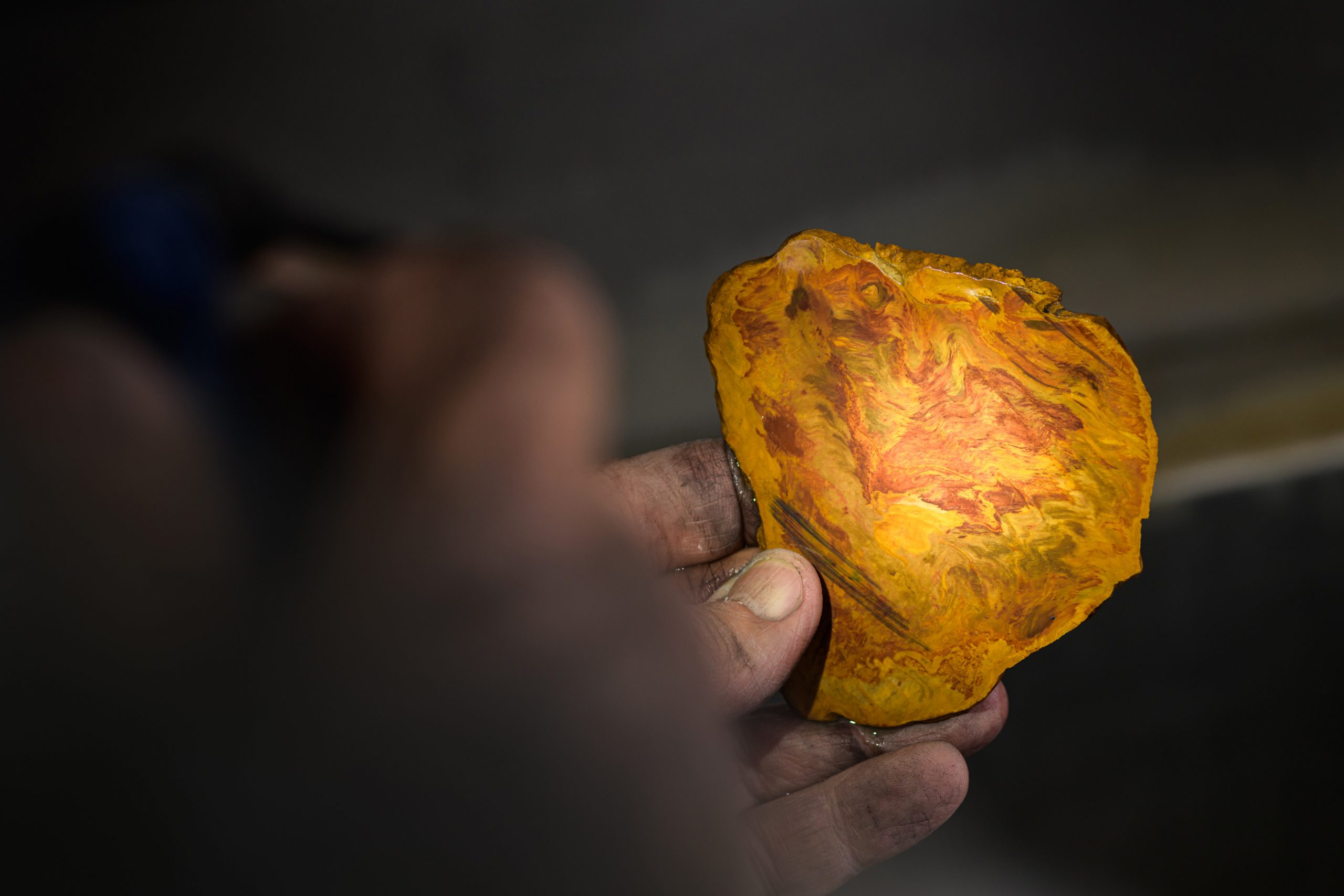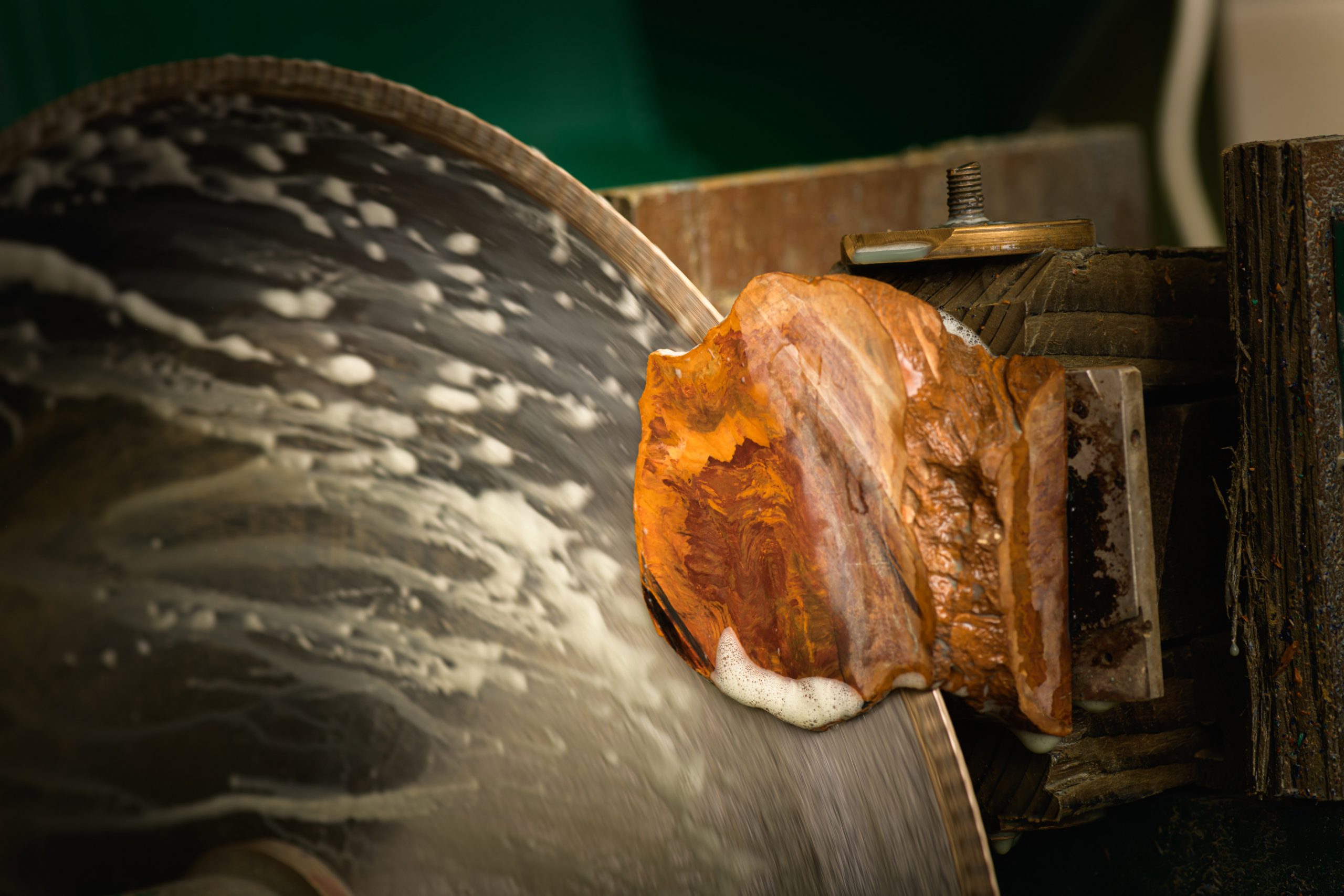 This mineral has a remarkable history. When dinosaurs ruled the Earth 150 million years ago and birds began to hatch, the first flower bloomed. That is also when Chinchilla Red came to be. It was formed by fir trees covered in volcanic ash that were swept away by lava. The product is an exceedingly rare and dense mineral. It takes countless hours of manual work just to make the surface smooth.