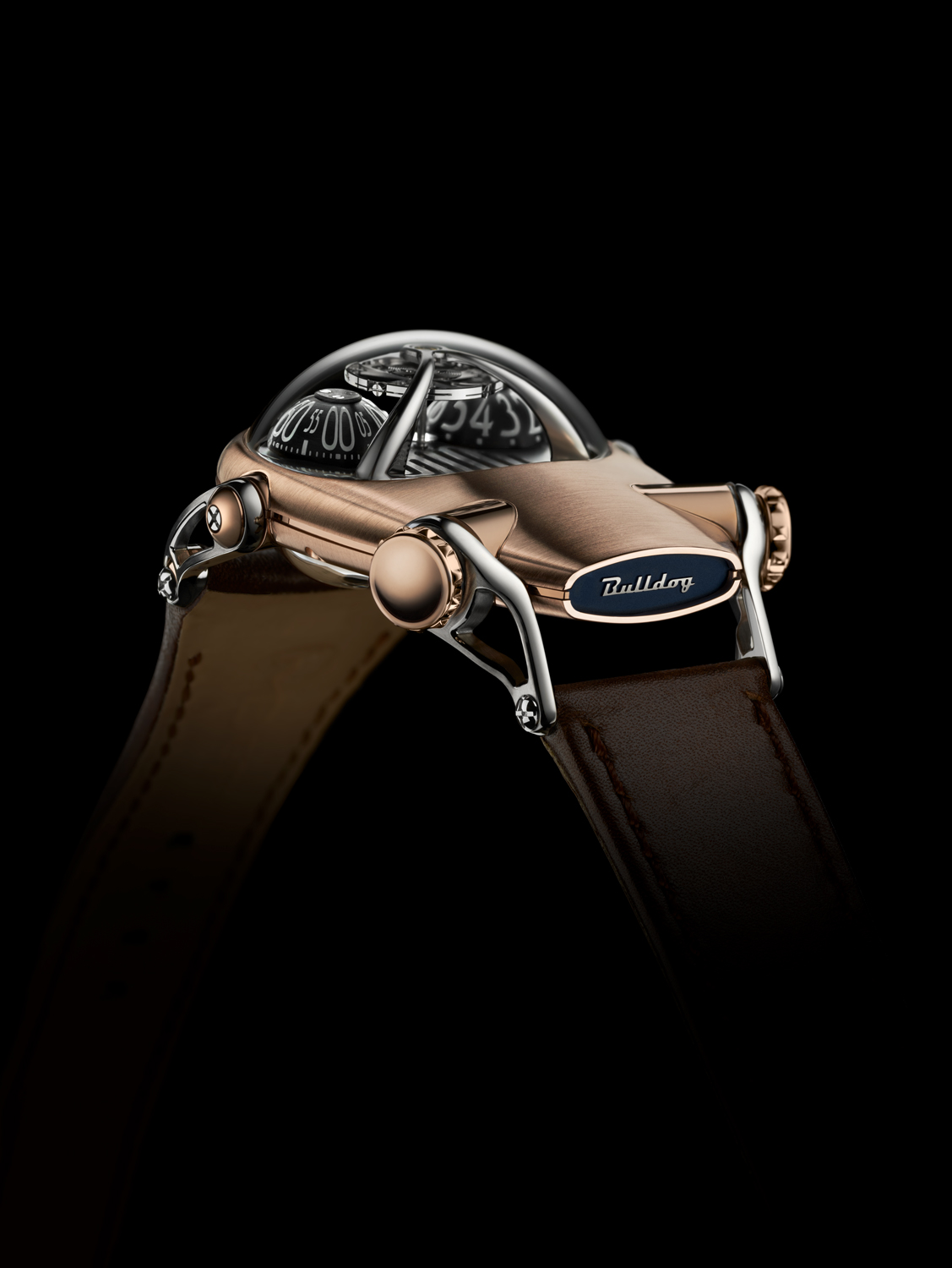 The design came to Maximilian Büsser while he was travelling in Japan; Horological Machine N°10 ‘Bulldog’ bounded up in his mind’s eye just as a loyal pup might greet a returning master.