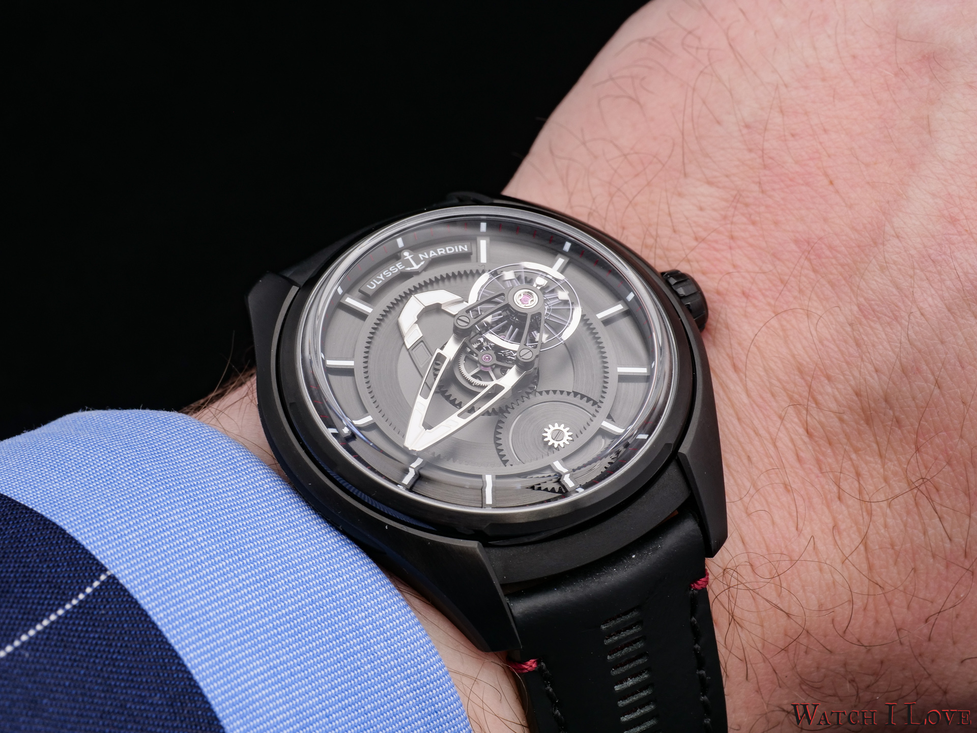 My favourite piece of four is the black DLC version. I consider it the most unpretending piece from the series. While the “coloured” versions are very attractive, the all-black model withdraws the least attention from the surroundings. The Ulysse Nardin Freak X sits well on the wrist and offers good legibility. I think Ulysse Nardin did a really good job with these timepieces offering in only four pieces a good variation in colours and prices.