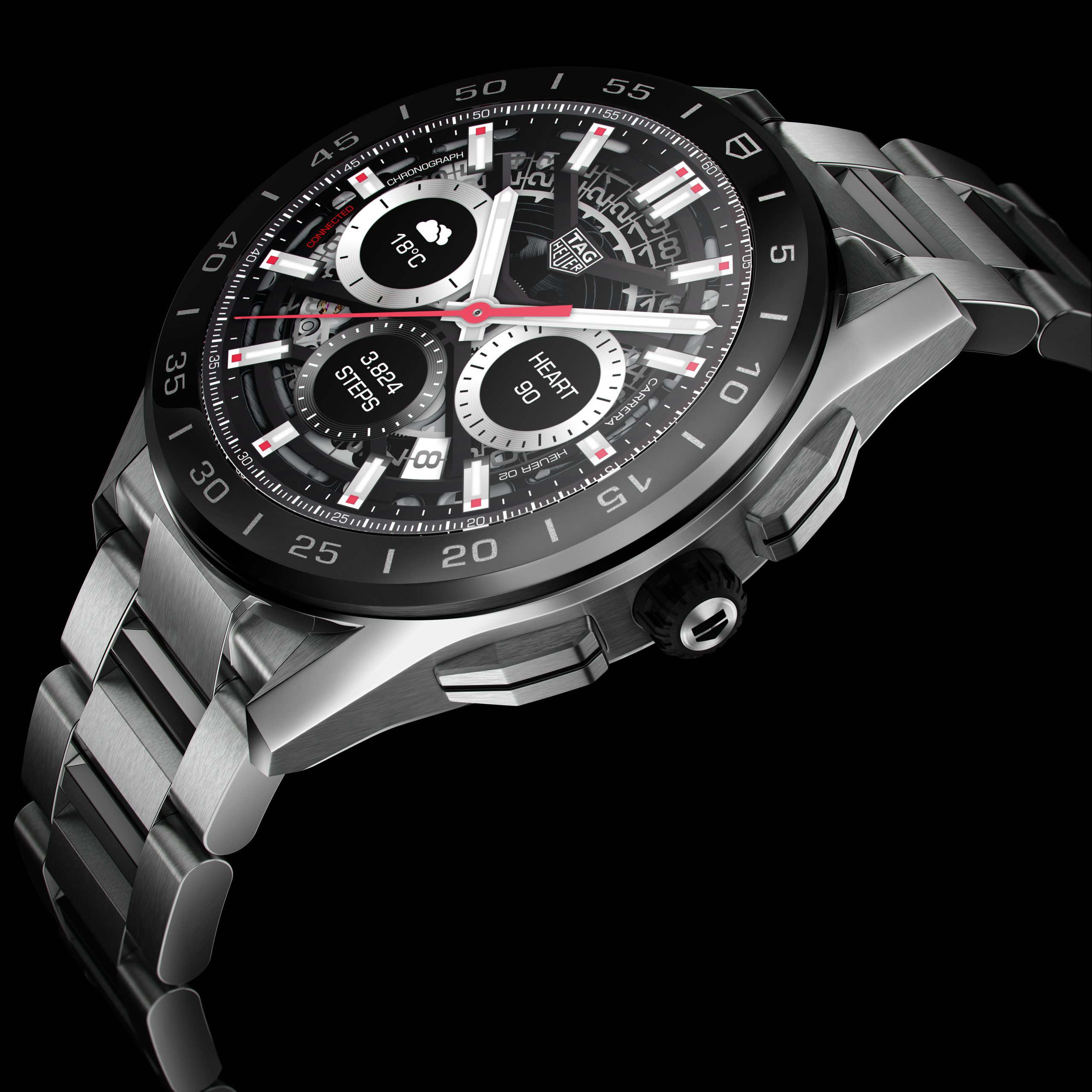 Paying tribute to the brand’s timekeeping heritage, the new models also introduce a TAG Heuer stopwatch application that can be operated with the pushers and boasts to-the-millisecond precision, as well as a timer, an alarm and a bespoke settings interface.