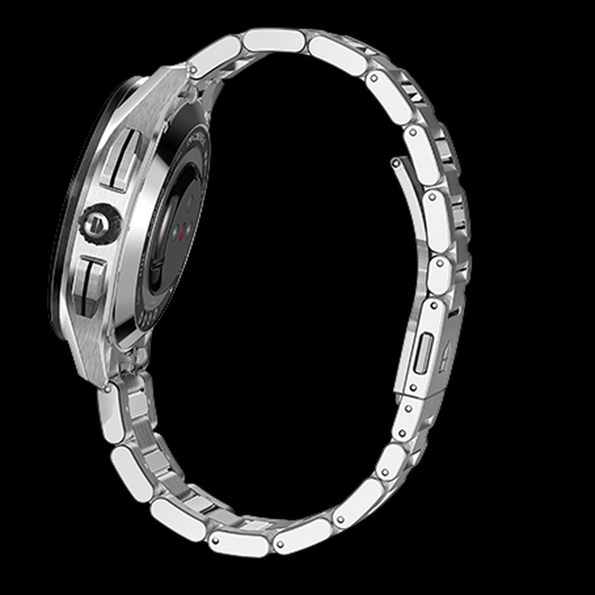 Activities are recorded with maximal precision and accuracy thanks to top-of-the-line sensors, including a new non-medical-grade heart-rate monitor, made of high-tech resin and naturally integrated into the caseback. This also enables reliable monitoring of calories burned, while the built-in GPS measures the user’s position during workouts and can calculate different performance metrics, and also includes a compass for direction, as well as an accelerometer and gyroscope.