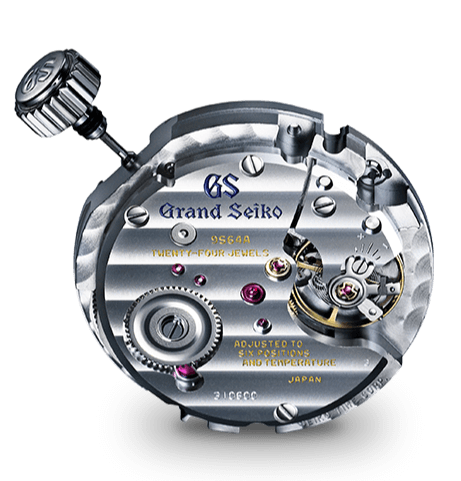 Three different materials are used. The case in the platinum version is in Platinum 950 and the dial carries the star mark that signifies that its hour markers are in 18k gold. The engraving of the Grand Seiko name on the dial is particularly sharp thanks to the fact that the dial, too, is in 18k gold.