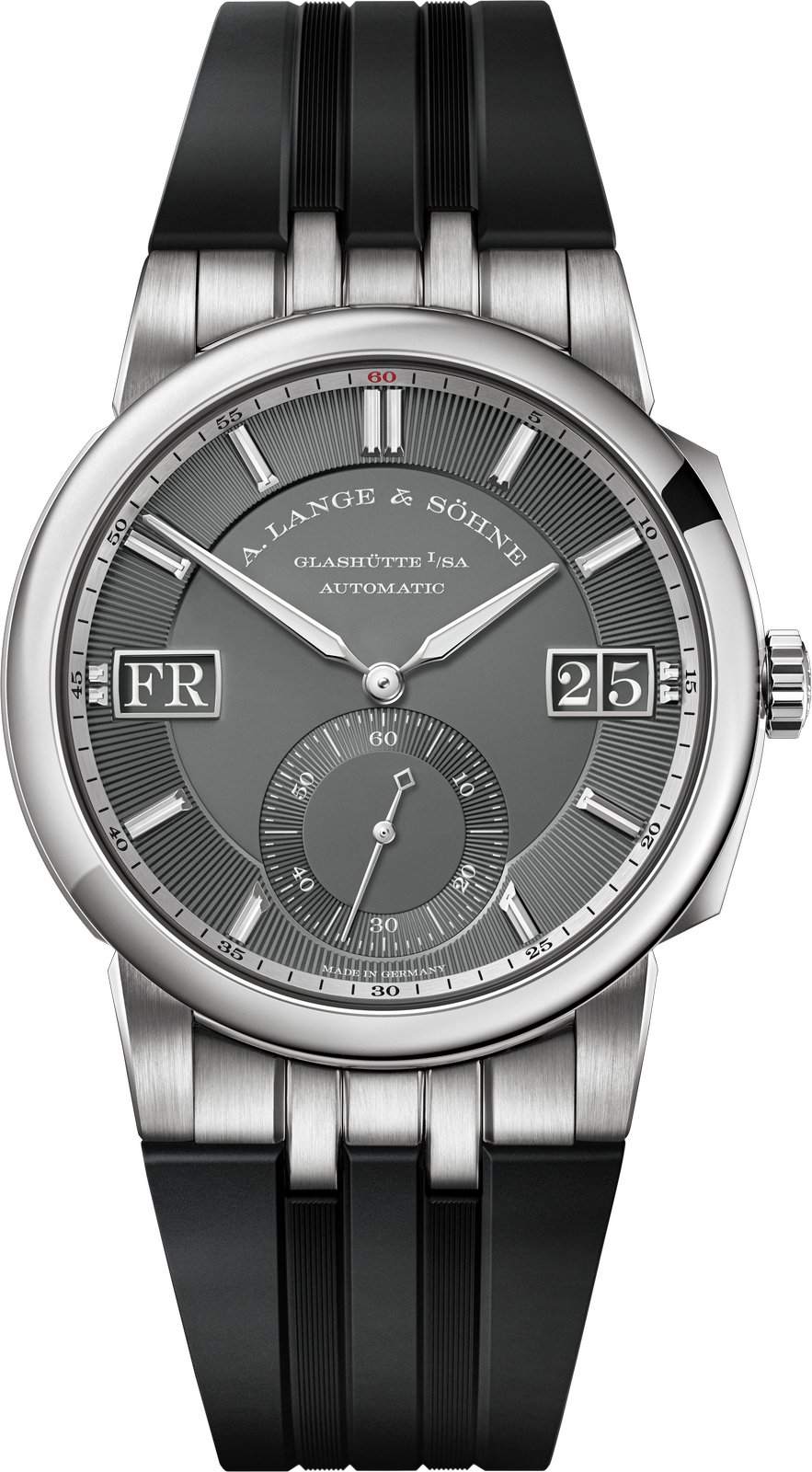 The latest A. Lange & Söhne watch family is growing. The ODYSSEUS now comes in white gold with an integrated rubber or leather strap. The sporty-elegant timepiece with the large-format date and day display and a water-resistant case features a grey dial with a special surface structure for a very textured effect.