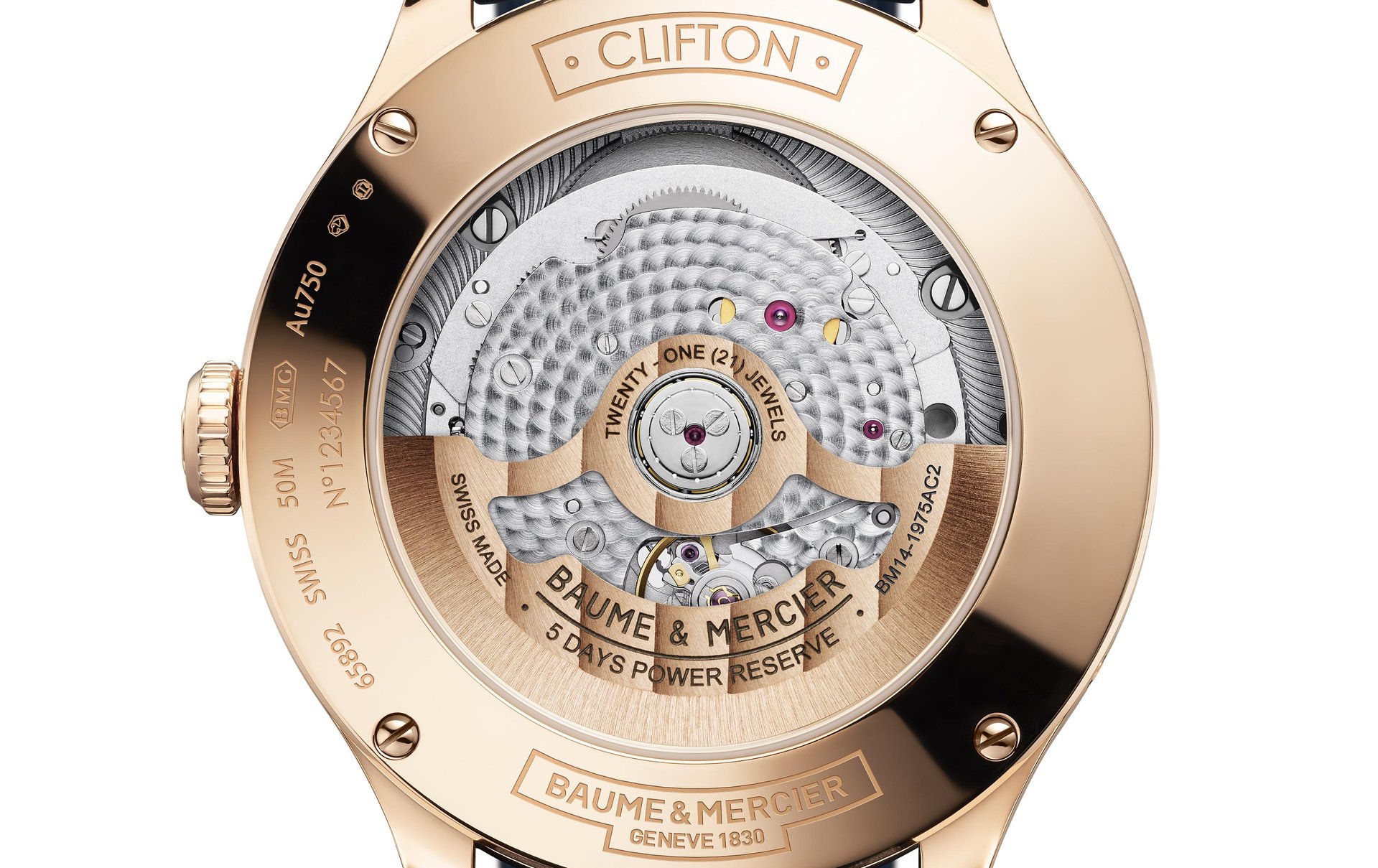 The Baumatic BM14 in-house calibre embodies the full expertise and enthusiasm that has driven Baume & Mercier to create a new model. It now features a beautiful complication that reinforces the traditional watch expertise with a reliable, exclusive mechanism. This self-winding movement features a 5-day power reserve.