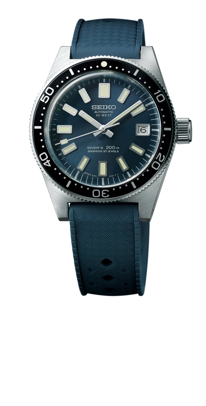 In addition to the limited edition trilogy, the 55th anniversary of Seiko’s first diver’s watch is also celebrated with an all-stainless steel modern re-interpretation. This new version is characterized by its slim profile and a lowered center of gravity that makes it comfortable to wear on even a smaller wrist. It features the same special 55th anniversary blue-gray dial as graces the trilogy and comes with both a stainless steel bracelet and a silicone strap. It is powered by Caliber 6R35 that delivers a power reserve of 70 hours. It will be available in a limited edition of 5,500 at Seiko boutiques and selected retailers worldwide from June 2020.