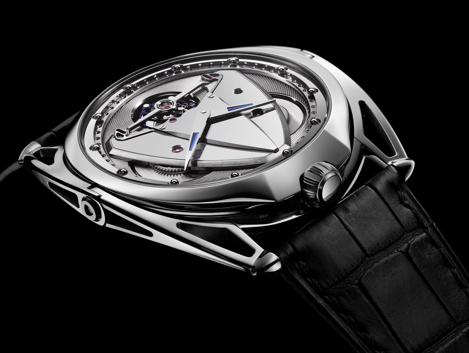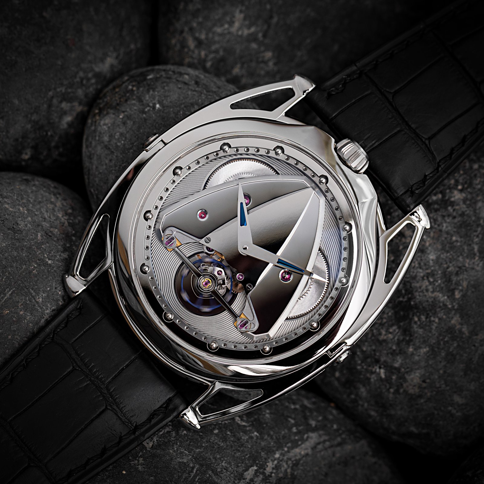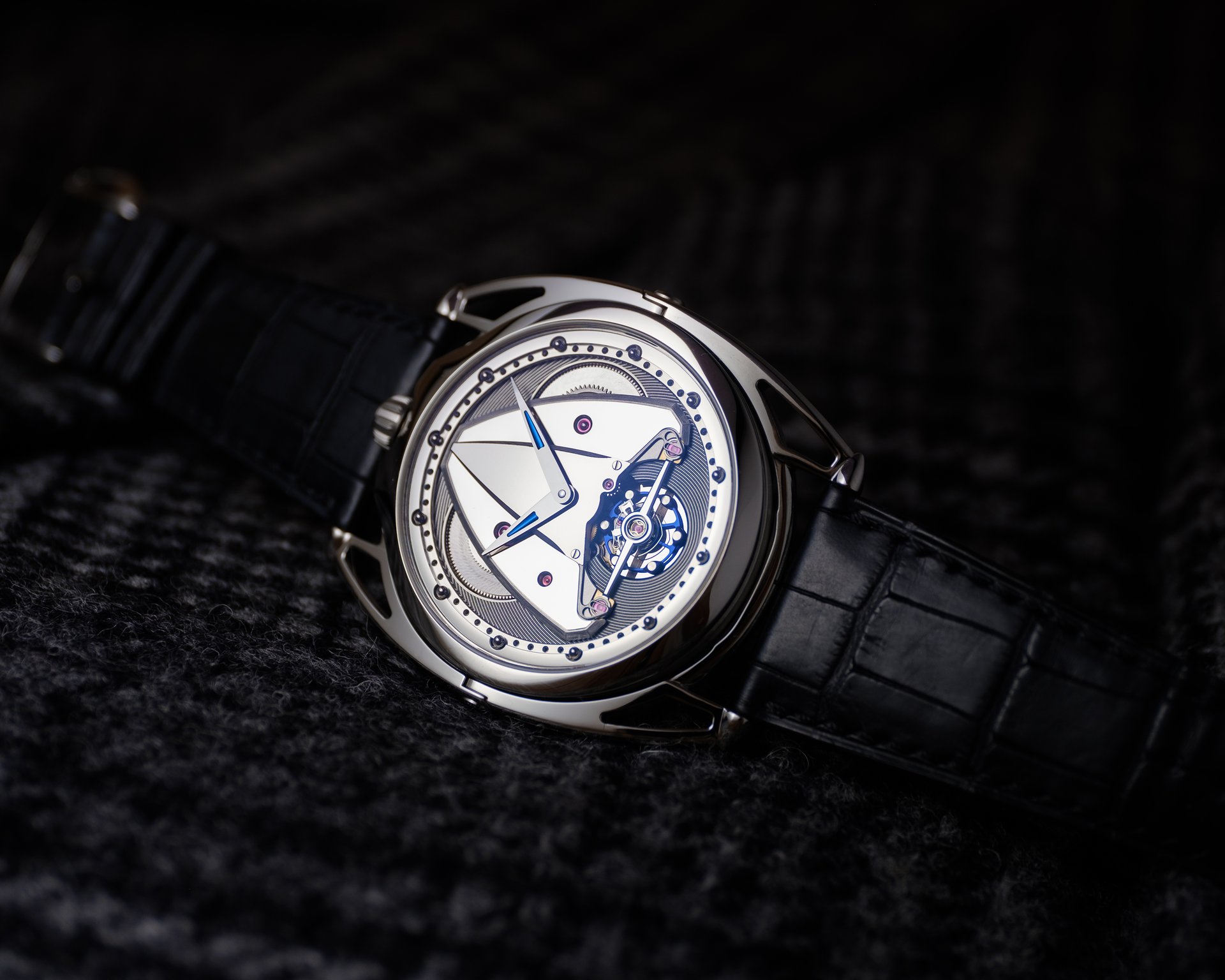 It’s about all the levels at which one experiences a timepiece, its layers, reliefs, the light playing with shadows and reflections. Cut from titanium, the watch reveals an architectural fusion of space, time and light that lingers long after the first glance.