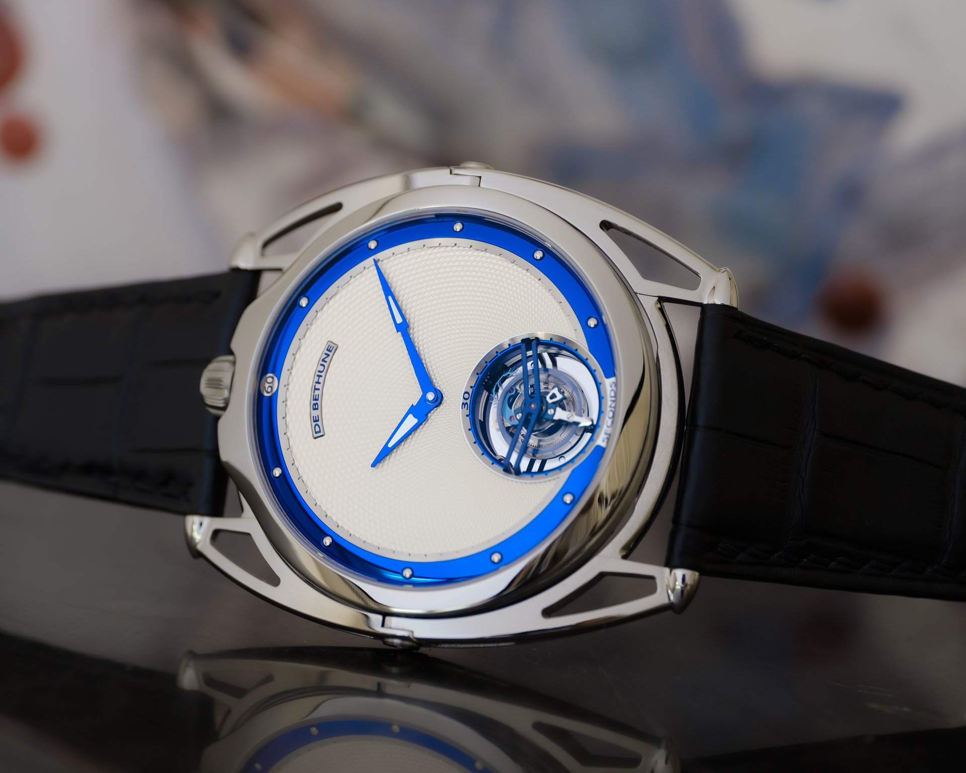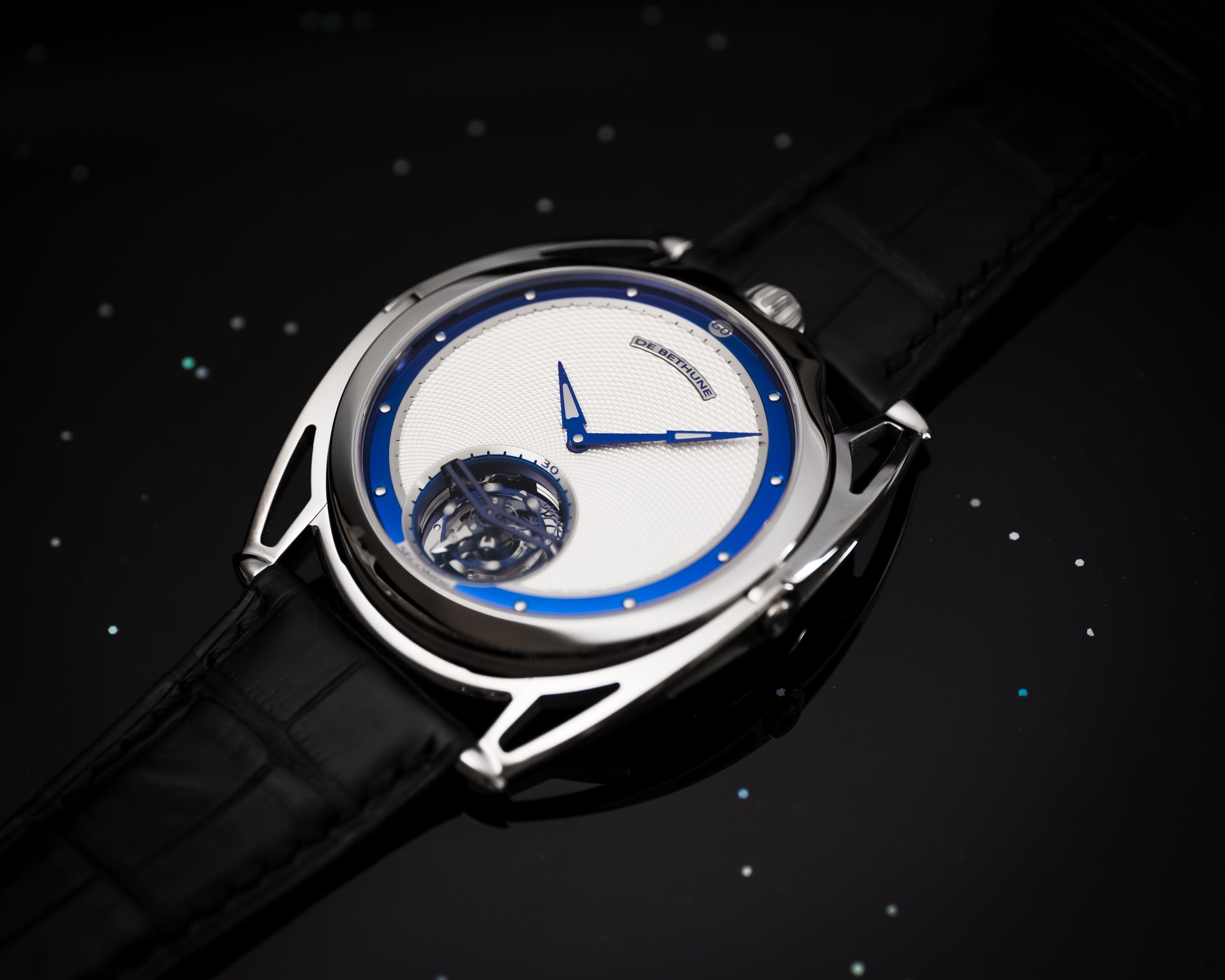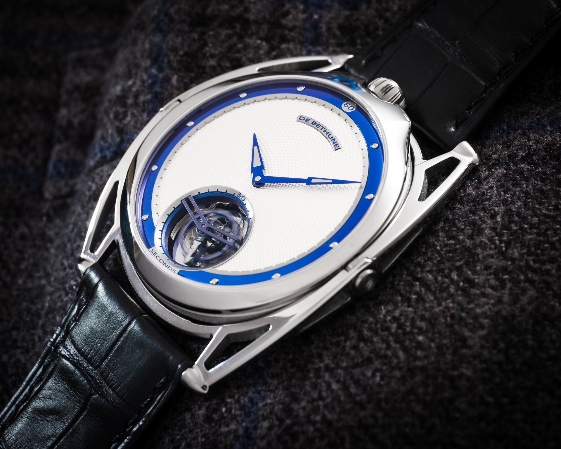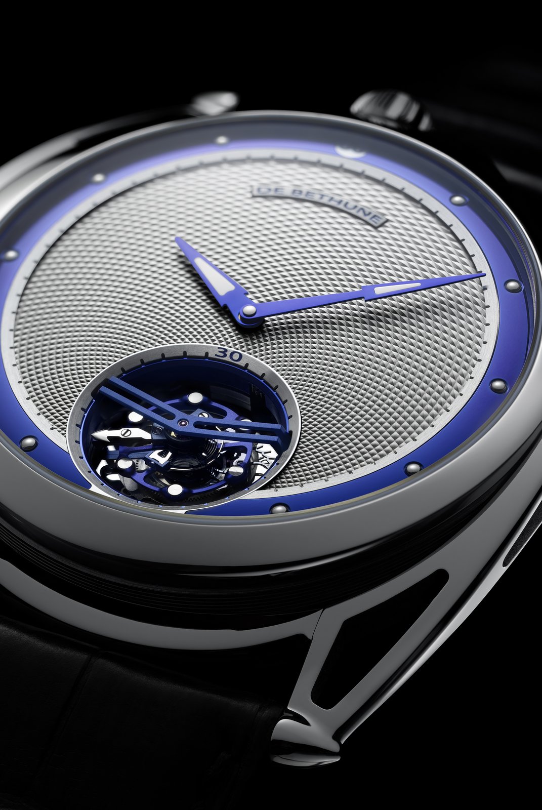 Finally, as a discreet De Bethune signature, the blued titanium inserts in the hands at the centre.