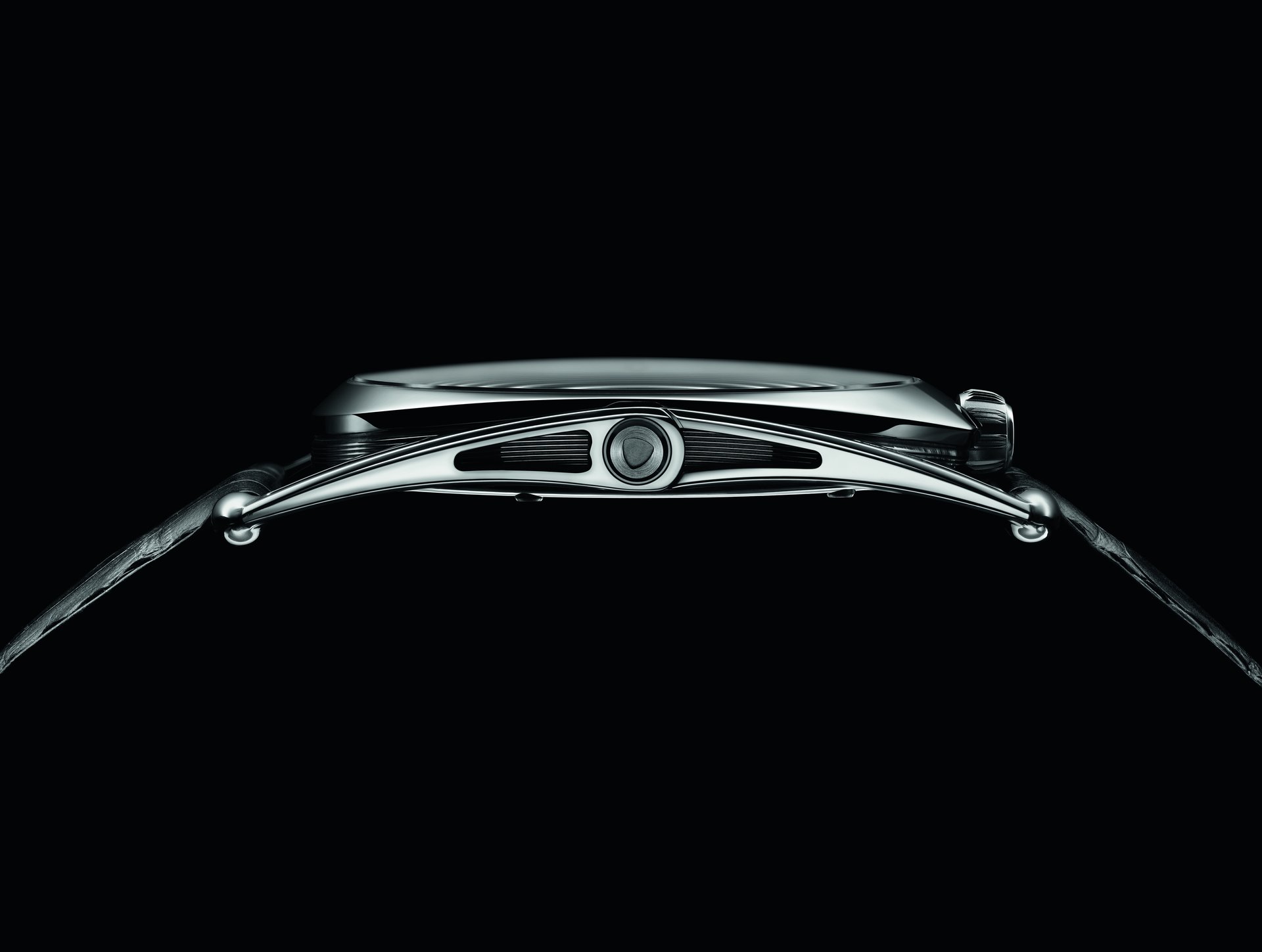 The case band has been completely redesigned, with a more pronounced curvature, flowing with the lines of the wrist and lugs – whose bullets incidentally have also entirely redesigned. The plate’s Microlight finish is echoed along the sides of the case band, rendered all the more meticulously in the absence of simple geometric forms.