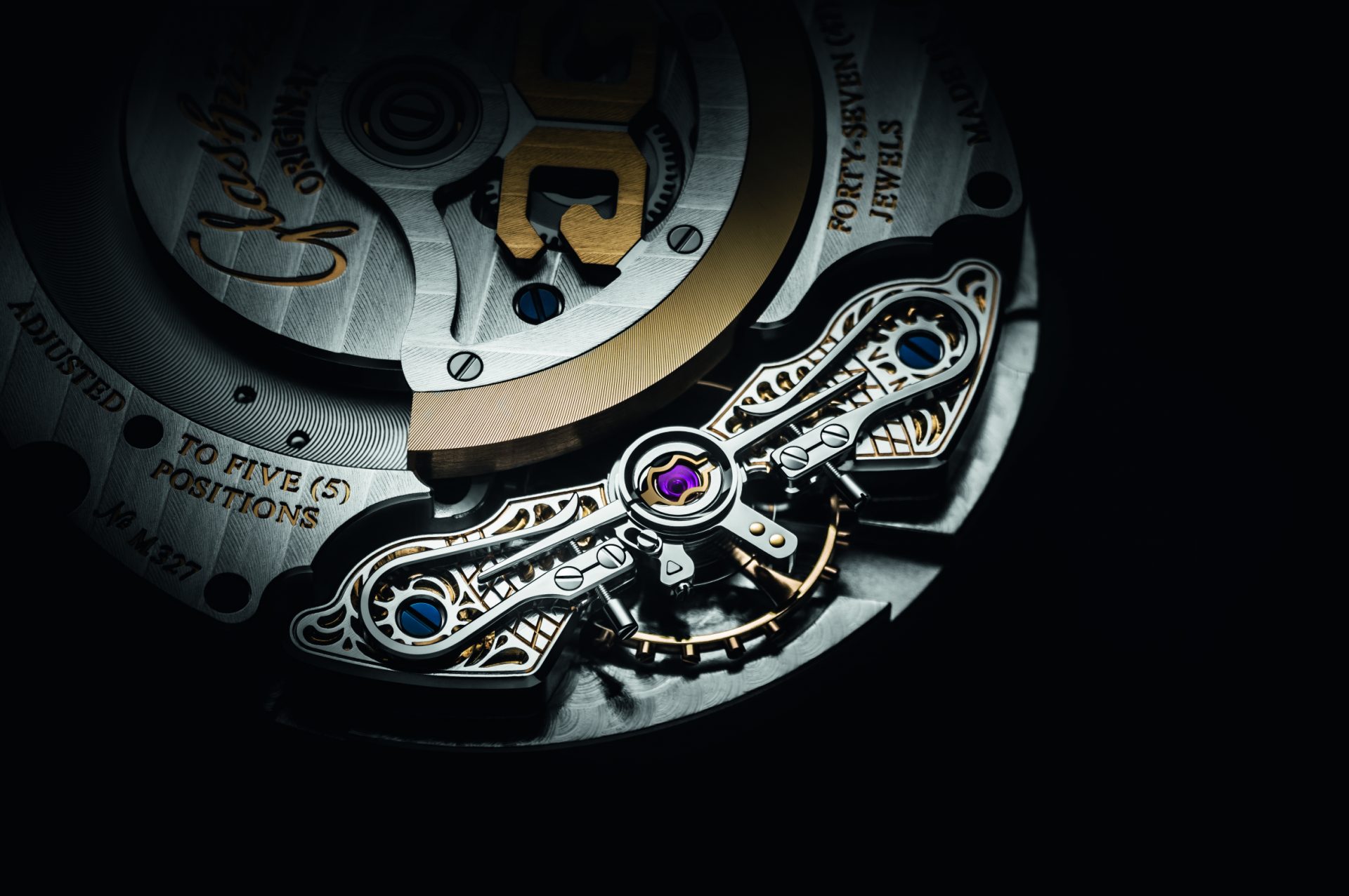 The experts responsible for this impressive range of different shades work in Glashütte Original’s in-house dial manufactory in Pforzheim, Germany. After they have first given the dial a coat of galvanic nickel, the outer edge is carefully sprayed with black lacquer to produce the special dégradé effect. The entire surface is then coated with transparent green lacquer. The result of this hand-crafted, highly detailed work is a special colour gradient that renders each dial unique.