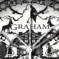 - Cow’s horn dial. Openwork steel with black PVD plate (0.1mm thick) engraved with the Swiss Poya (cow herd’s climb to the mountain pastures)