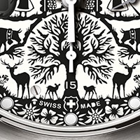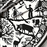 Tribute to Swiss heritage: the dial shows the traditional Swiss Poya paper-cutting