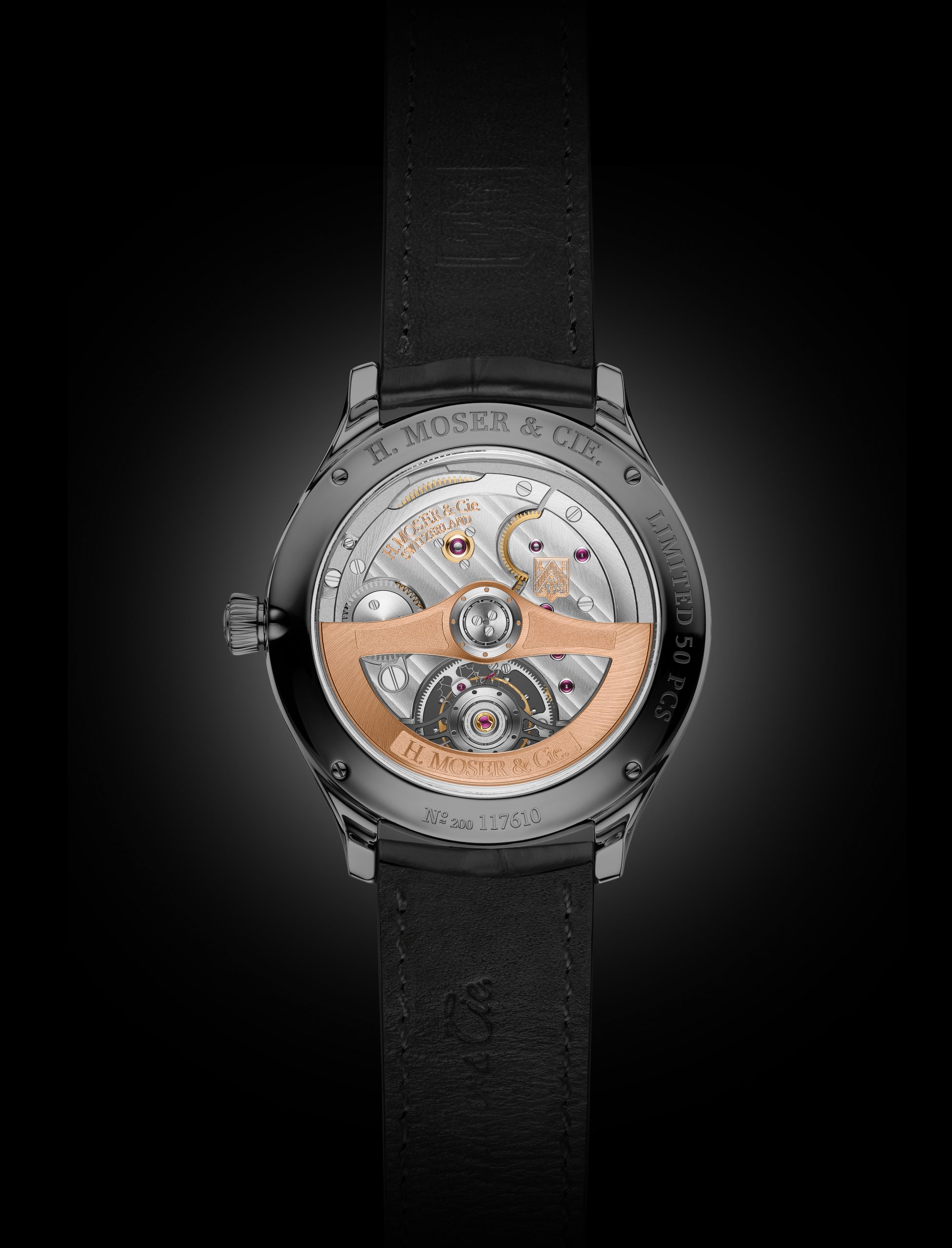 - Oscillating weight in 18-carat red gold with engraved H. Moser & Cie. logo