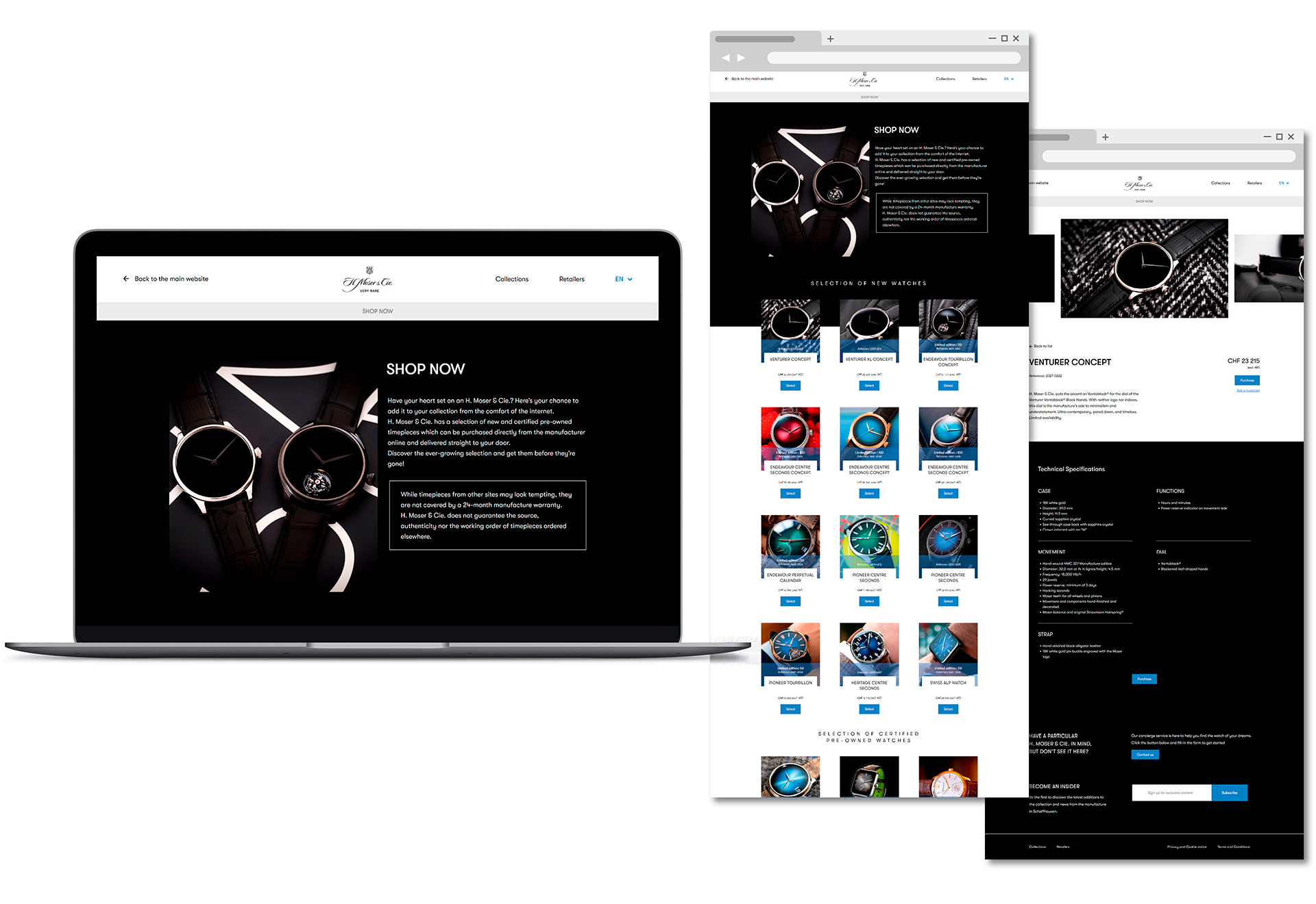 Note: While timepieces from other sites may look tempting, they are not covered by a 24-month manufacture warranty. H. Moser & Cie. does not guarantee the source, authenticity nor the working order of timepieces ordered elsewhere.