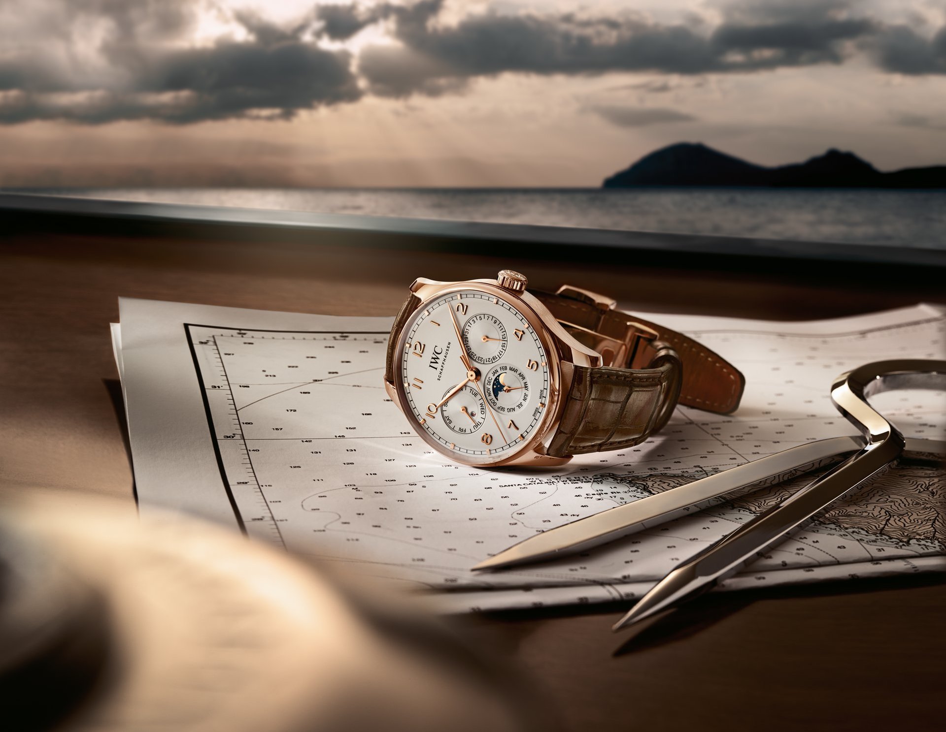 Back in the 1980s, IWC’s legendary watchmaker Kurt Klaus designed a perpetual calendar that comprised only about 80 individual parts. The complication premiered in the Da Vinci Perpetual Calendar (Ref. 3750) of 1985. For the first time, a perpetual calendar had a four-digit year display and a perpetual moon-phase display. A further attractive new feature was its high user-friendliness. All displays are perfectly synchronised and, if the watch has not been worn for some time, are easily advanced using only the crown. In 2003 the perpetual calendar appeared in the Portugieser family for the first time. The calendar module has been continuously improved over the years. It will require a correction only in 2100 because, due to a quirk of the Gregorian calendar, the leap year that would normally occur then, will be omitted.