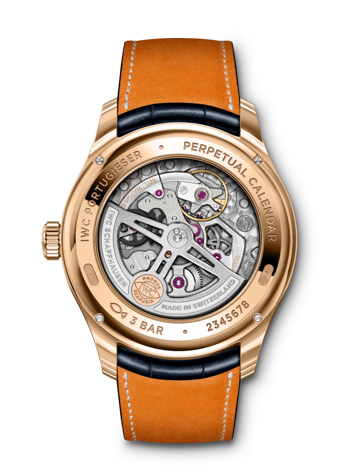 Rigorously thought through and developed to meet users’ needs with a focus on maximum autonomy and simple operation: No other complication expresses IWC’s values quite as eloquently as the perpetual calendar developped by legendary watchmaker Kurt Klaus in the 1980s. For the Portugieser Perpetual Calendar 42 (Ref. 3442), IWC has integrated the iconic complication for the first time with an in-house movement from the 82000-calibre family. Its compact dimensions have made it possible to offer the watch a diameter of just 42 millimetres. The IWC-manufactured 82650 calibre advances the calendar module with a single impulse during the night. The automatic Pellaton winding is equipped with zirconium oxide ceramic components and builds up a power reserve of 60 hours. The movement can be admired through the transparent sapphire-glass back.