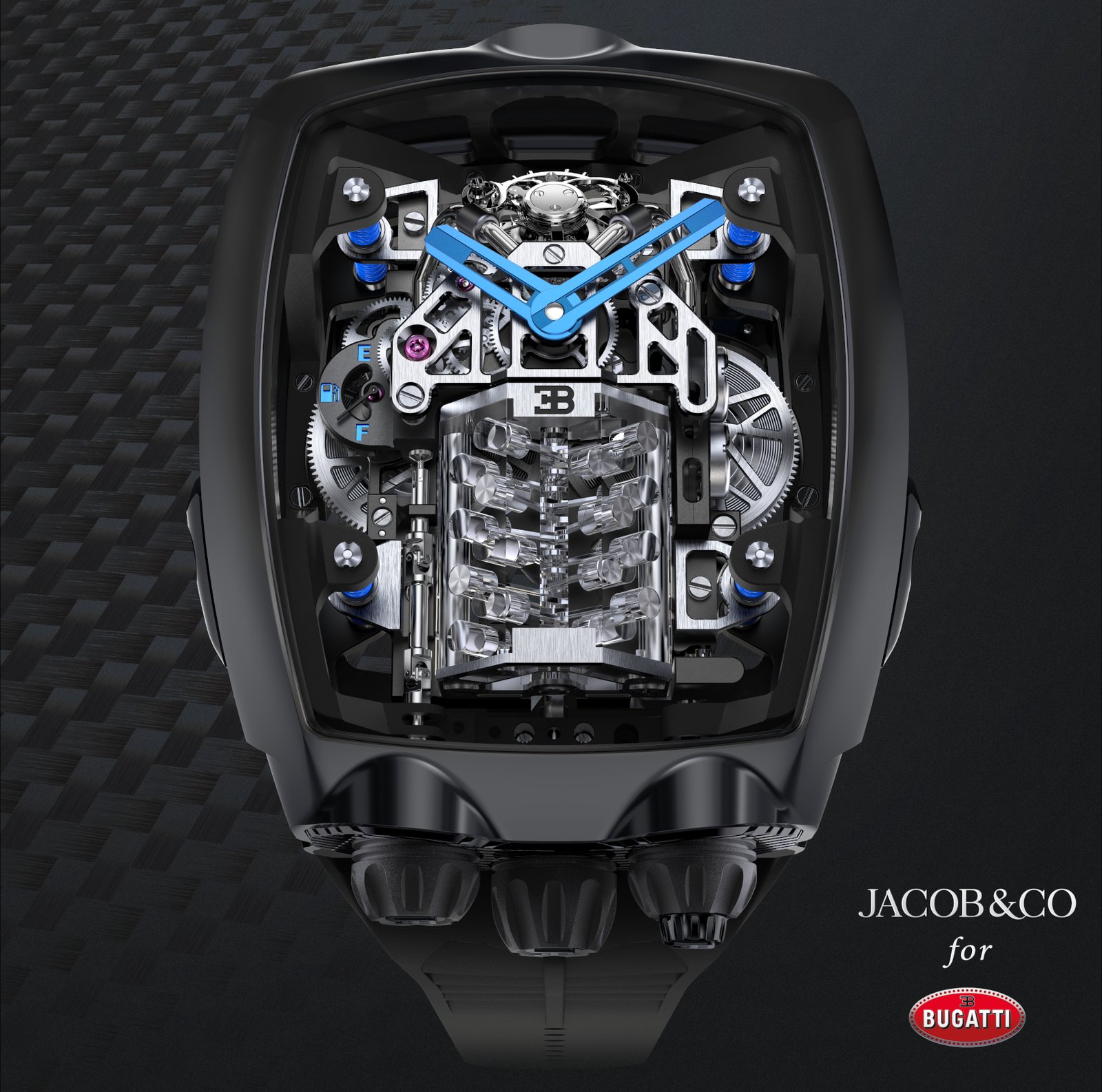 It started with an idea conceived by Jacob & Co. together with Bugatti – how to reproduce the visceral sensation of the iconic Bugatti 16-cylinder engine in a timepiece.