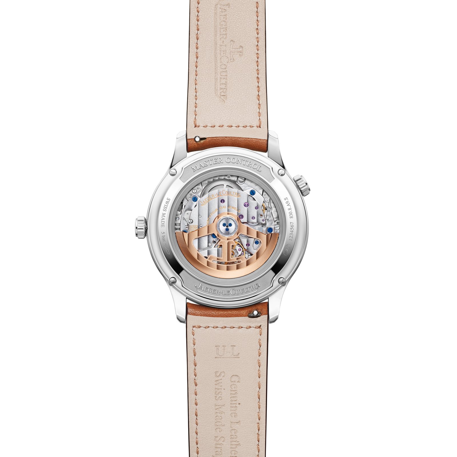 With its 40-millimetre diameter, outwardly sloping bezel and dynamically curved lugs, the new Master Control case exudes a relaxed and understated elegance – timeless yet absolutely contemporary. Satin-brushing on the case-sides is complemented by the polished bezel, crowns and lugs. Refined details abound, including bas-relief engravings on the back bezel and a sapphire crystal case-back to reveal the finely finished and decorated movements.