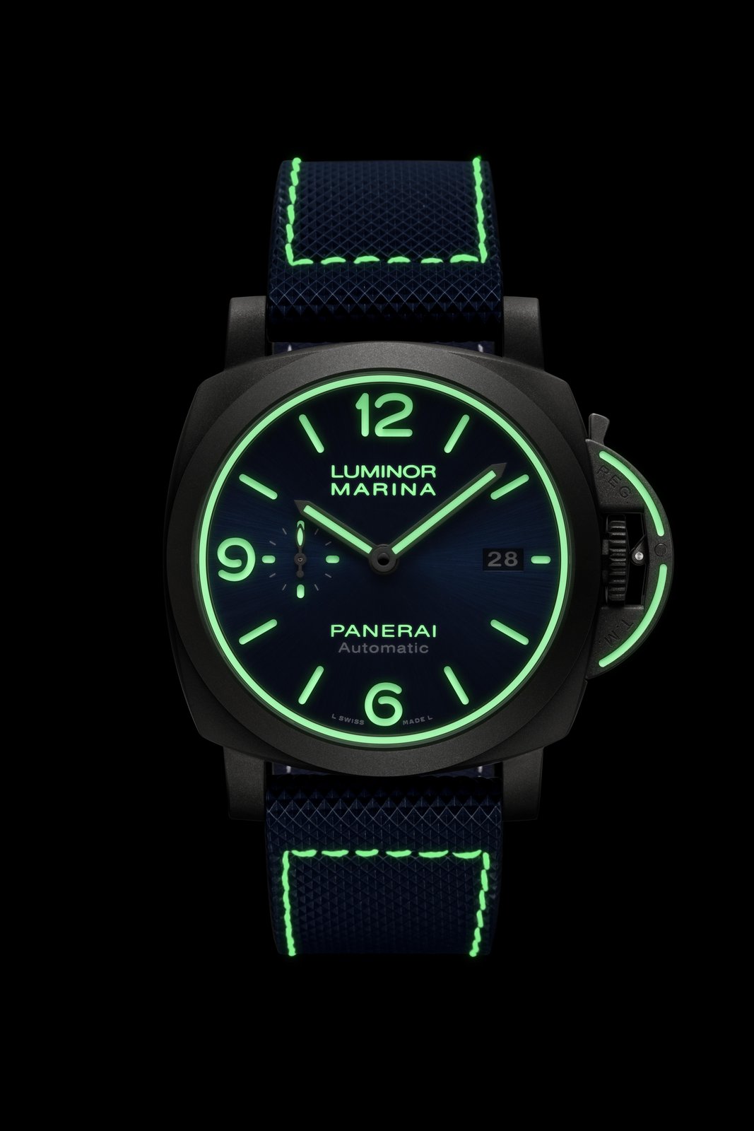 Panerai celebrates the essence of the legendary luminous compound with a new Luminor Marina notable for its particularly high visibility in the dark – Panerai Luminor Marina PAM01117.
