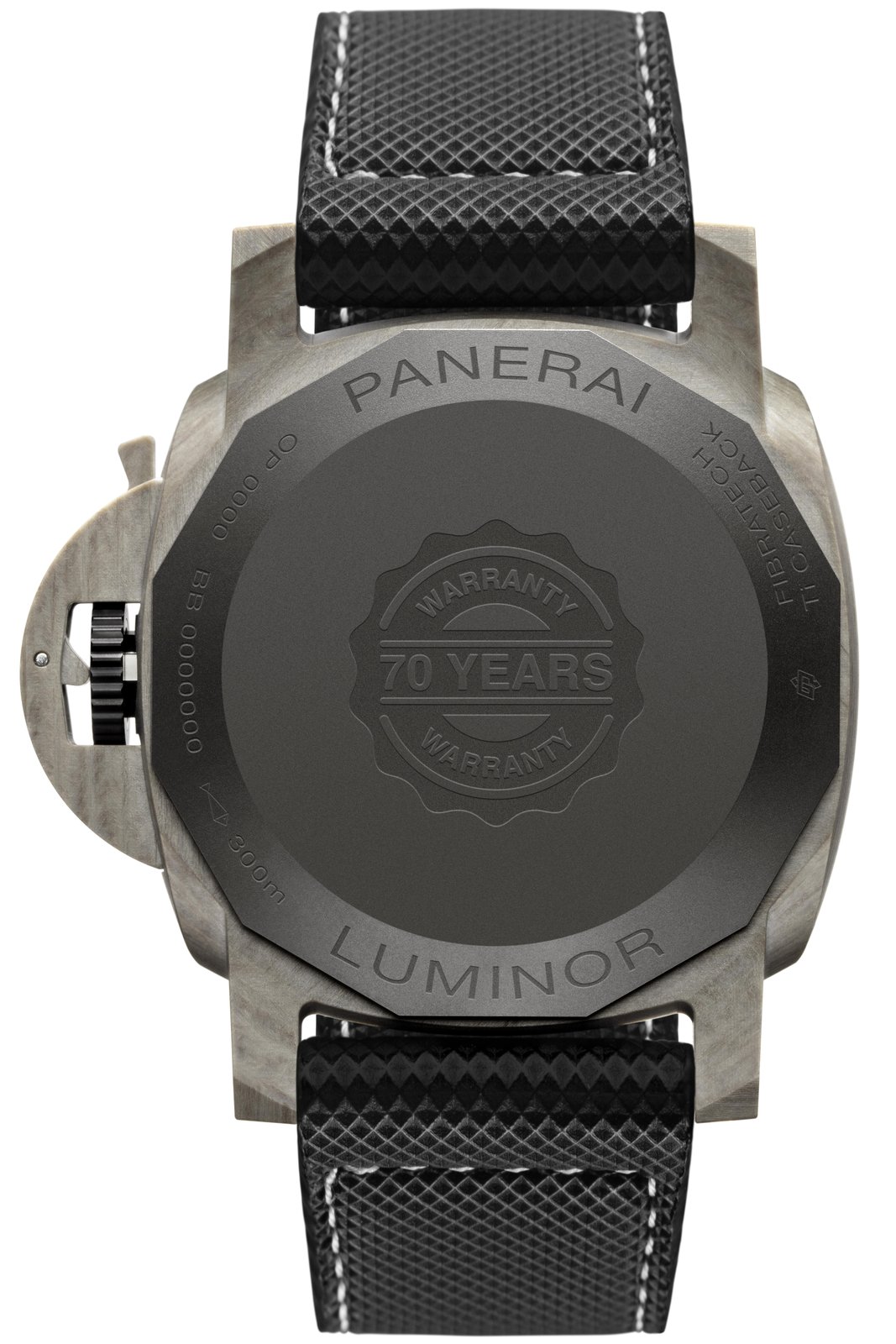 Always at the forefront in the search for new technical solutions, thus constantly improving the technical content and performance of its time-keeping instruments, Panerai has upped the rules of the game by giving the Luminor Marina Fibratech™ – 44 mm a guarantee of 70 years. Throughout this period Panerai will maintain the good working order of the client’s watch as necessary under the terms and conditions of the International warranty.Panerai Luminor Marina Fibratech™ – 44 PAM01119