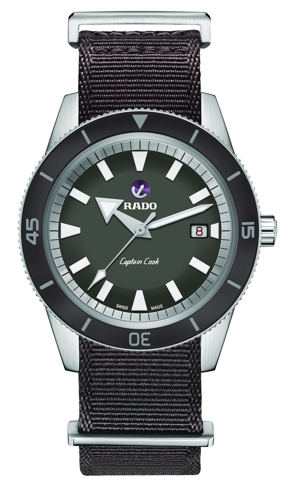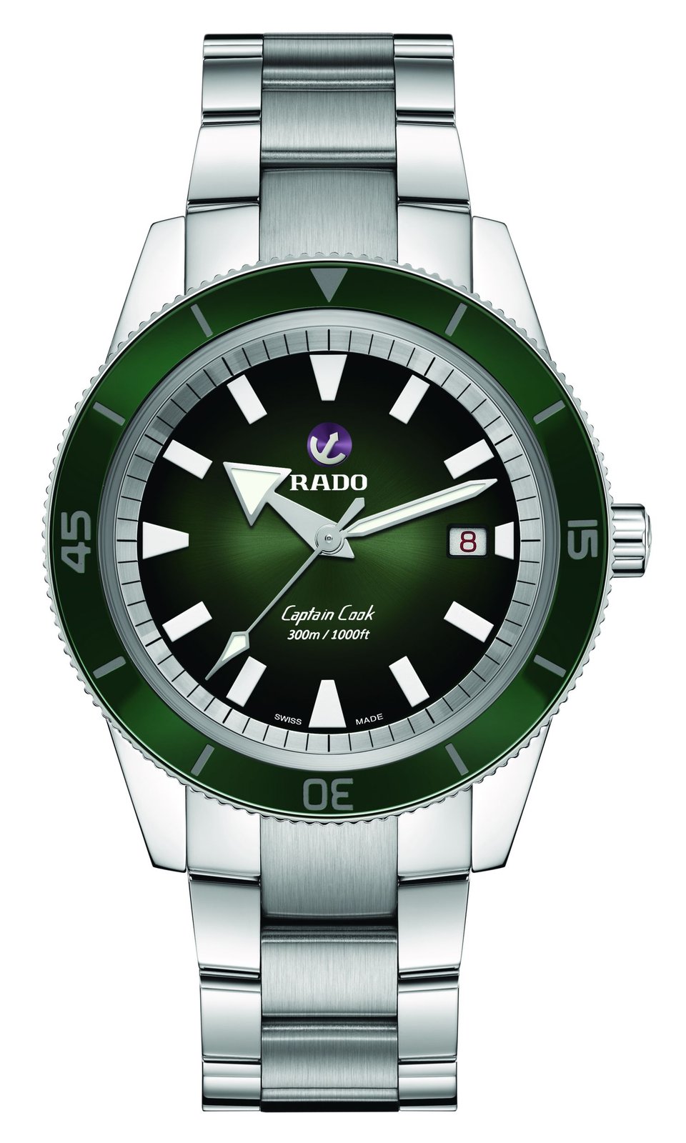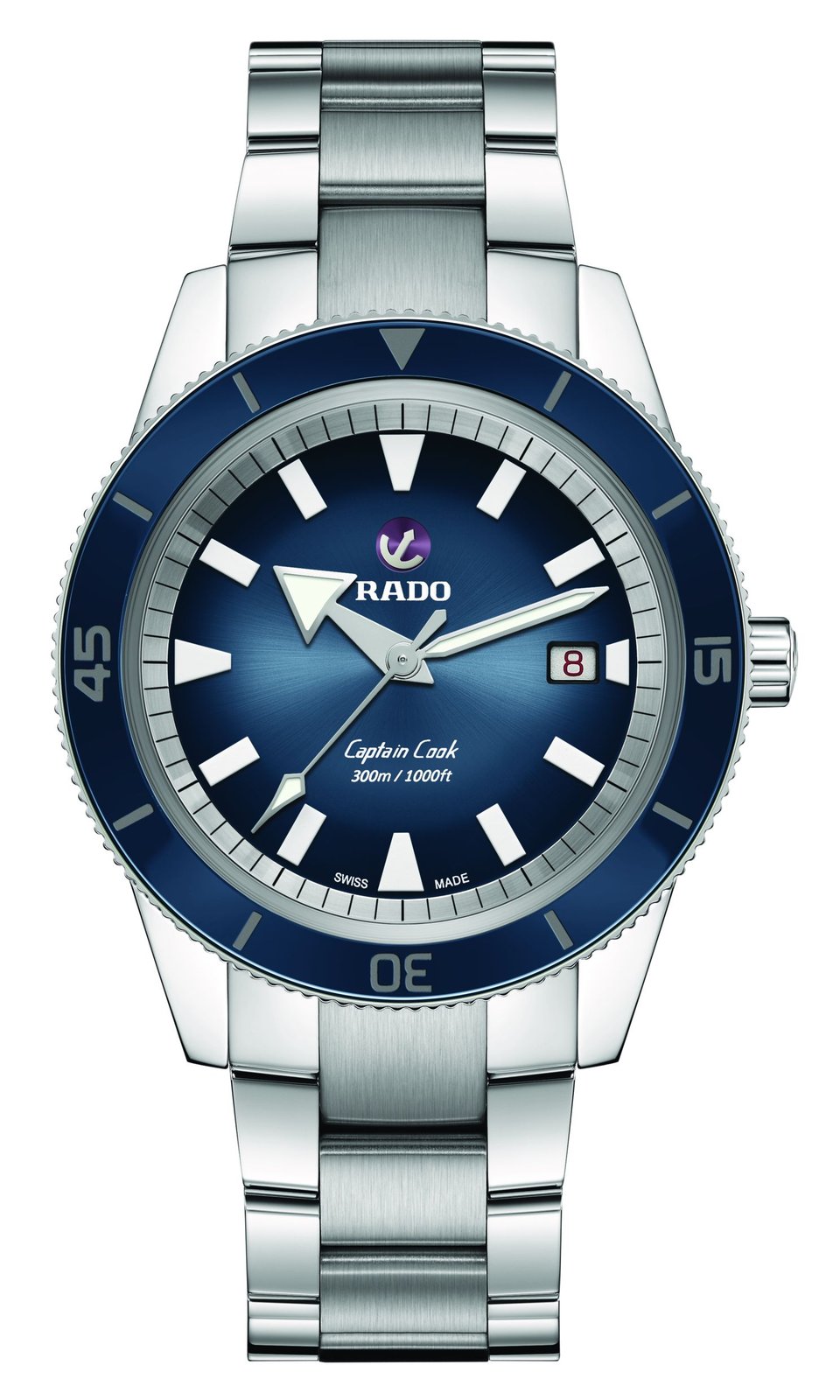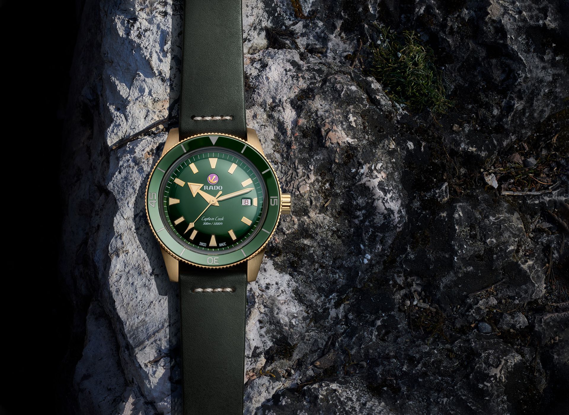 - white printed Rado and Captain Cook logos, 300m/1,000ft