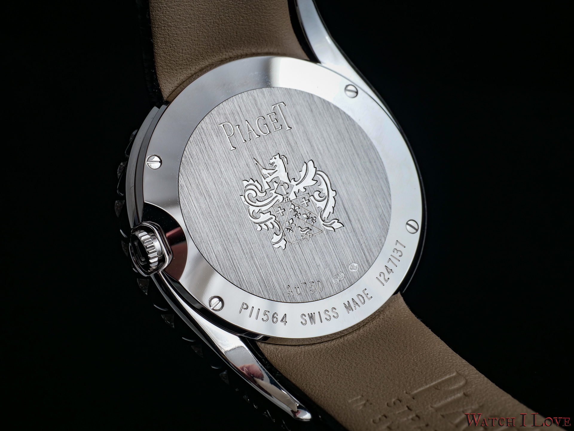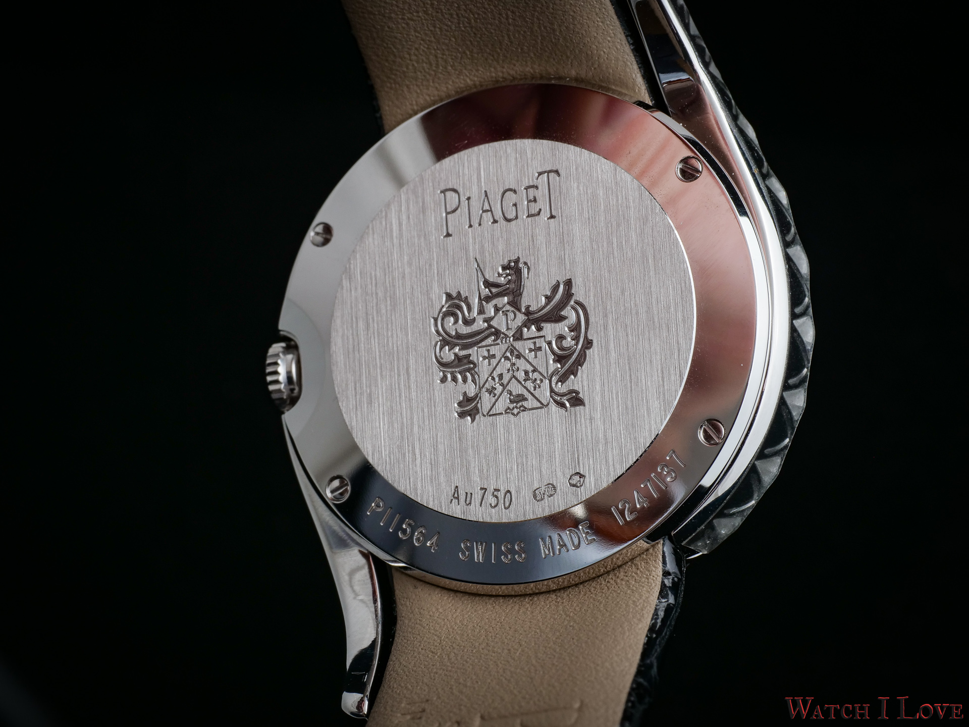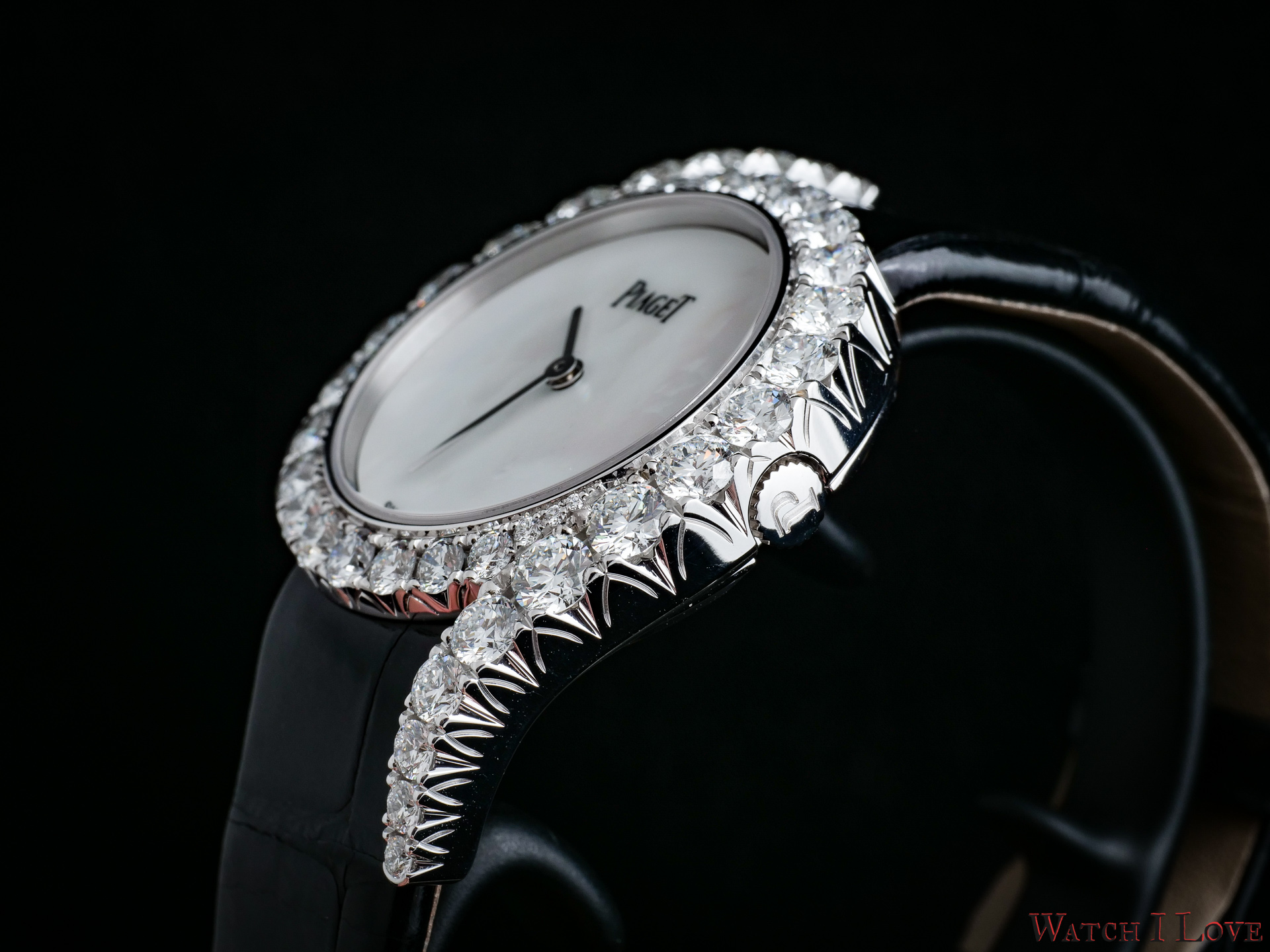 To smooth the diamonds’ integration, the case received extra engraved decorations. The crown was also sublime integrated in the case. The crown bears the Piaget logo and fits perfectly in the overall design.