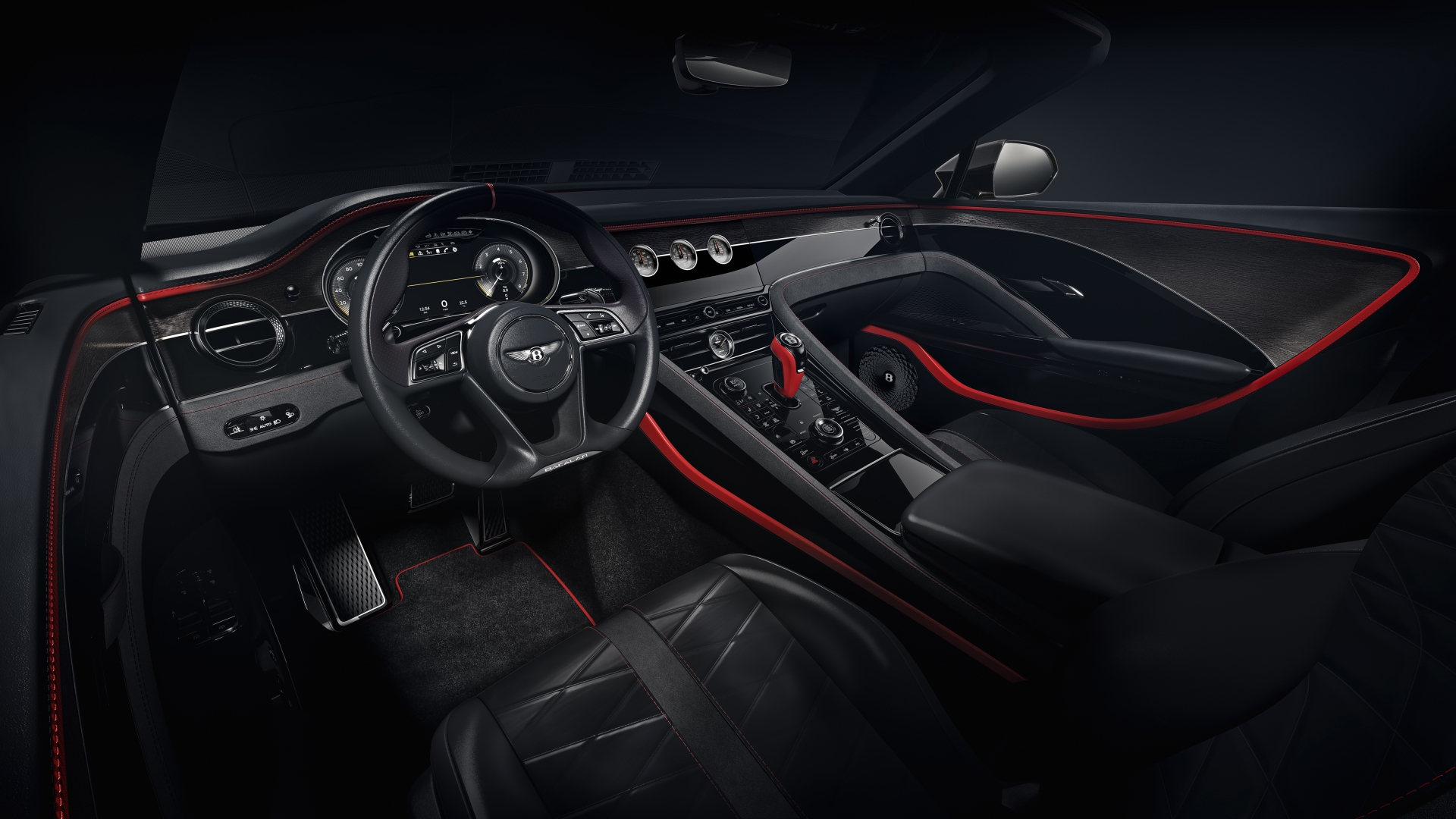 The deep and evocative exterior finish of Lacquer Red is exemplified by light, revealing all of the Bacalar’s true design in detail. 5,000 year old Open Pore Riverwood alongside Piano Black veneer embellishes the interior with a sense of history and depth, coupled with hides of perforated Mulliner Beluga and Hotspur accents. Gloss black brightware and Beluga Alcantara textile adds to the understated theme.