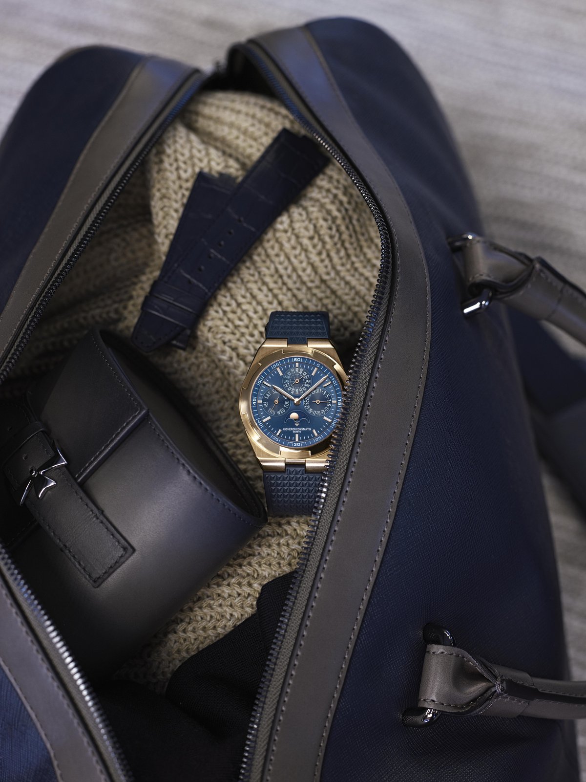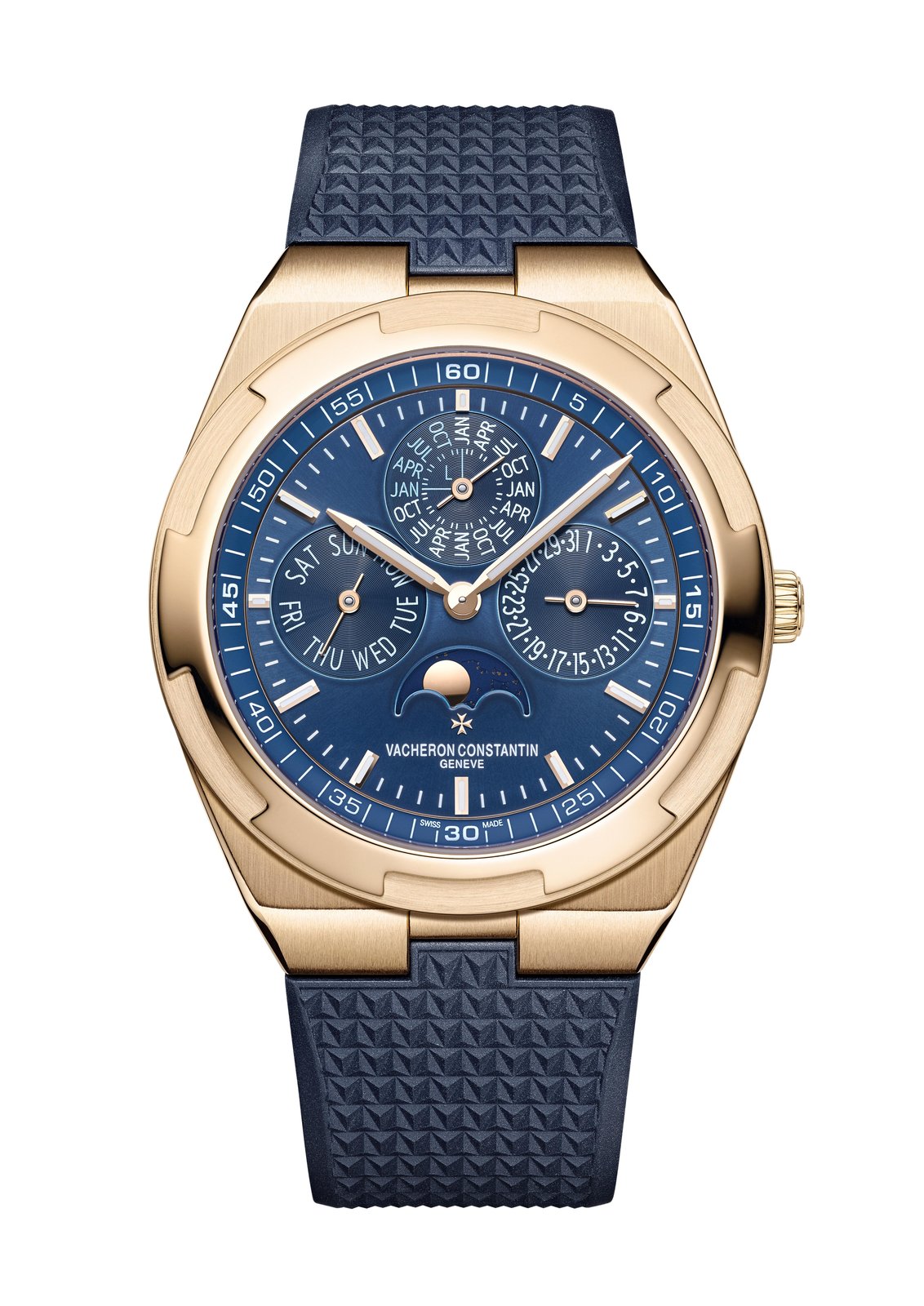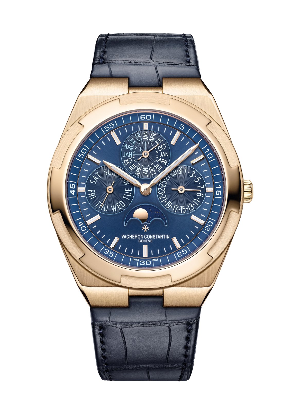Pink gold and blue-lacquered offer a perfect combination of casual chic. For the first time, Vacheron Constantin is offering this pleasing association of colours by presenting a new Overseas perpetual calendar with a gold case and bracelet along with a blue dial – Vacheron Constantin Overseas Perpetual Calendar Ultra-Thin. A spirited combination that endows this model with a distinctive new personality.