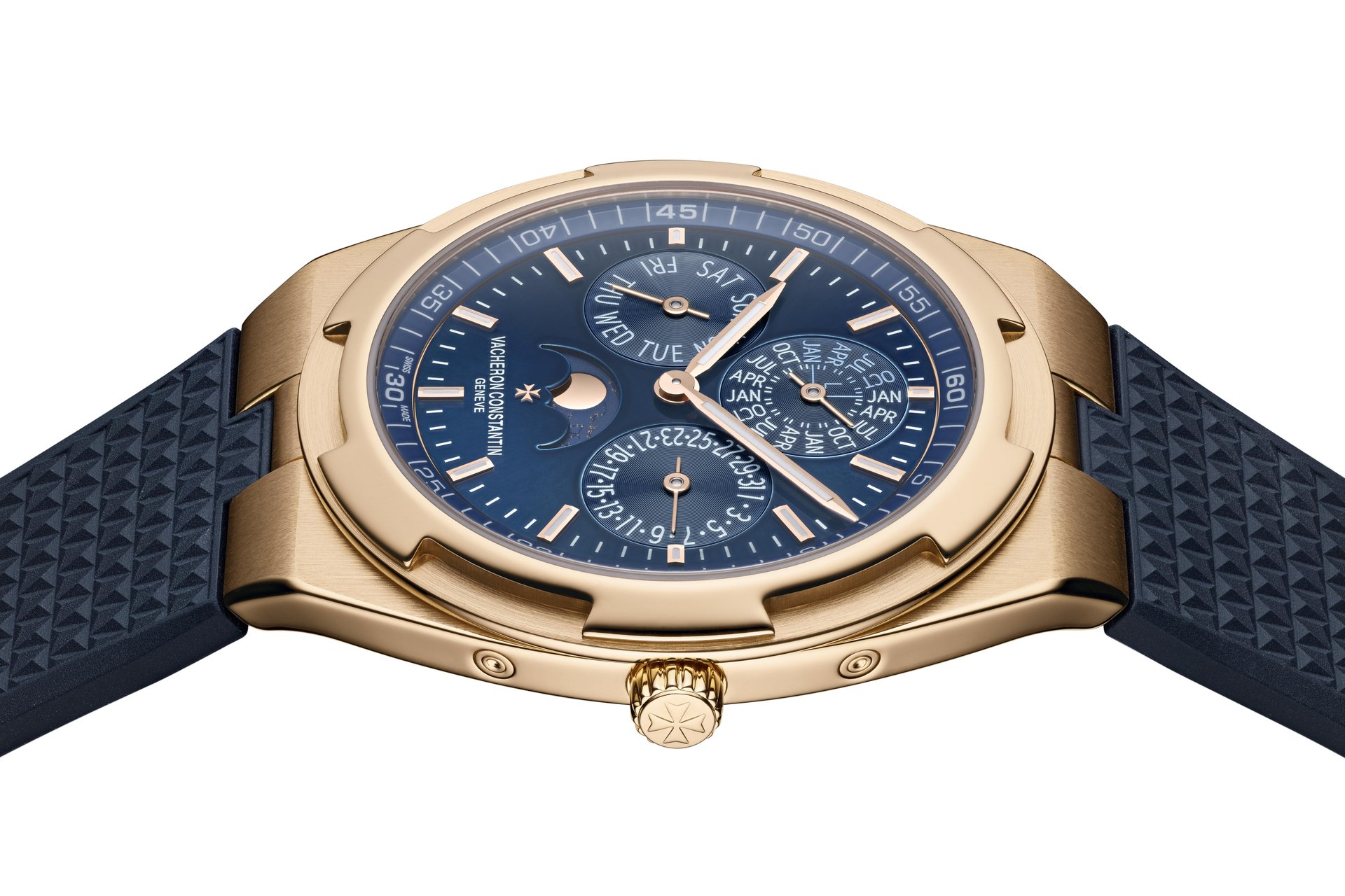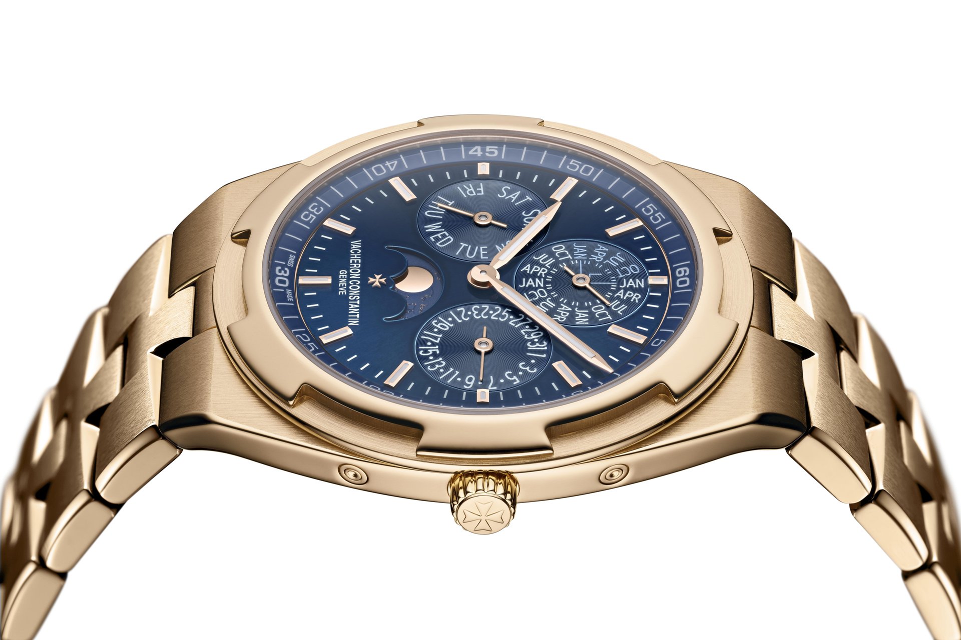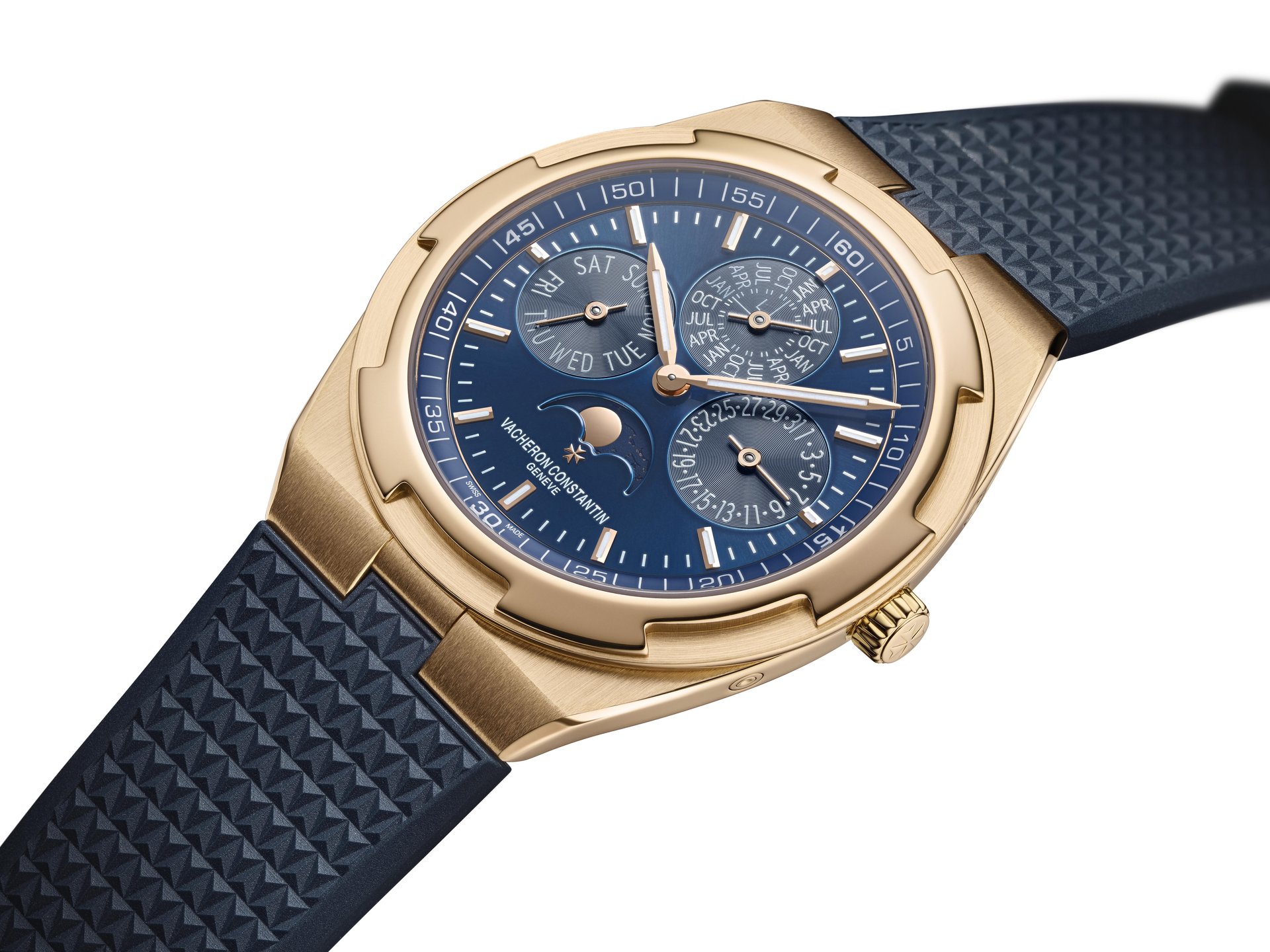 Pink gold and blue-lacquered offer a perfect combination of casual chic. For the first time, Vacheron Constantin is offering this pleasing association of colours by presenting a new Overseas perpetual calendar with a gold case and bracelet along with a blue dial – Vacheron Constantin Overseas Perpetual Calendar Ultra-Thin. A spirited combination that endows this model with a distinctive new personality.