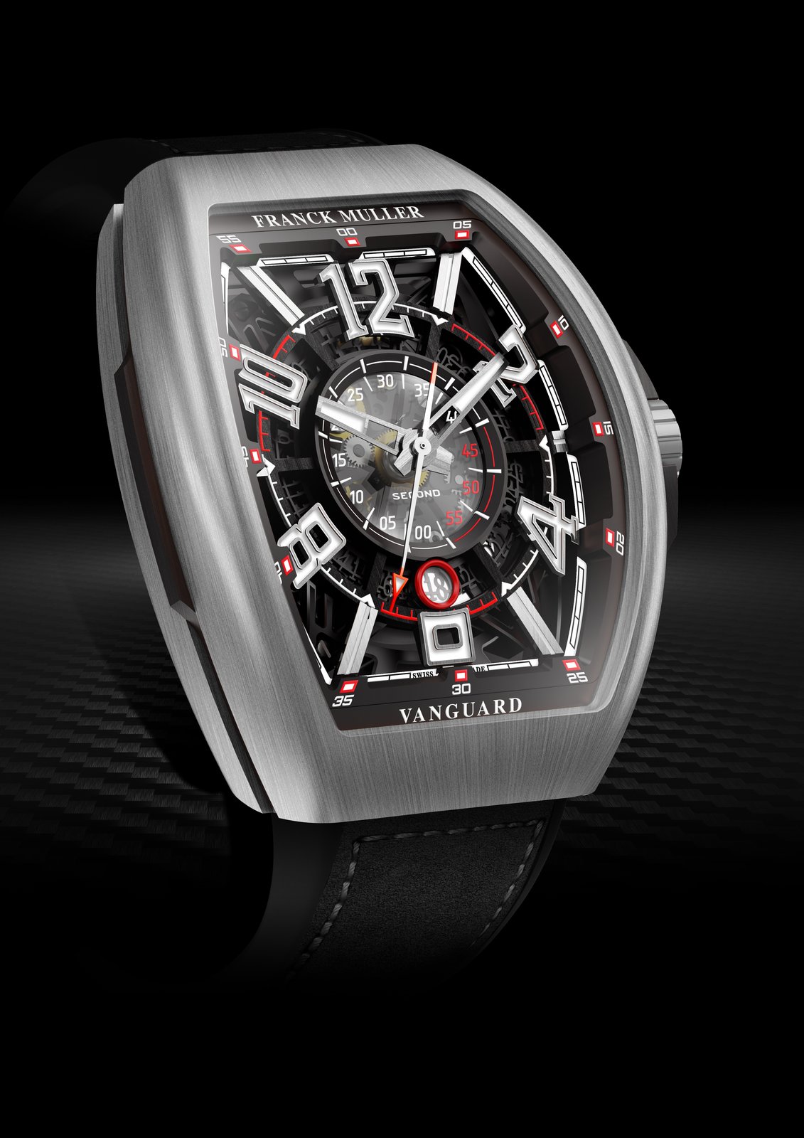 Inspired by automotive competition, the Franck Muller Vanguard™ Racing Skeleton collection calls in for a stylish engine-turned skeletonized movement.