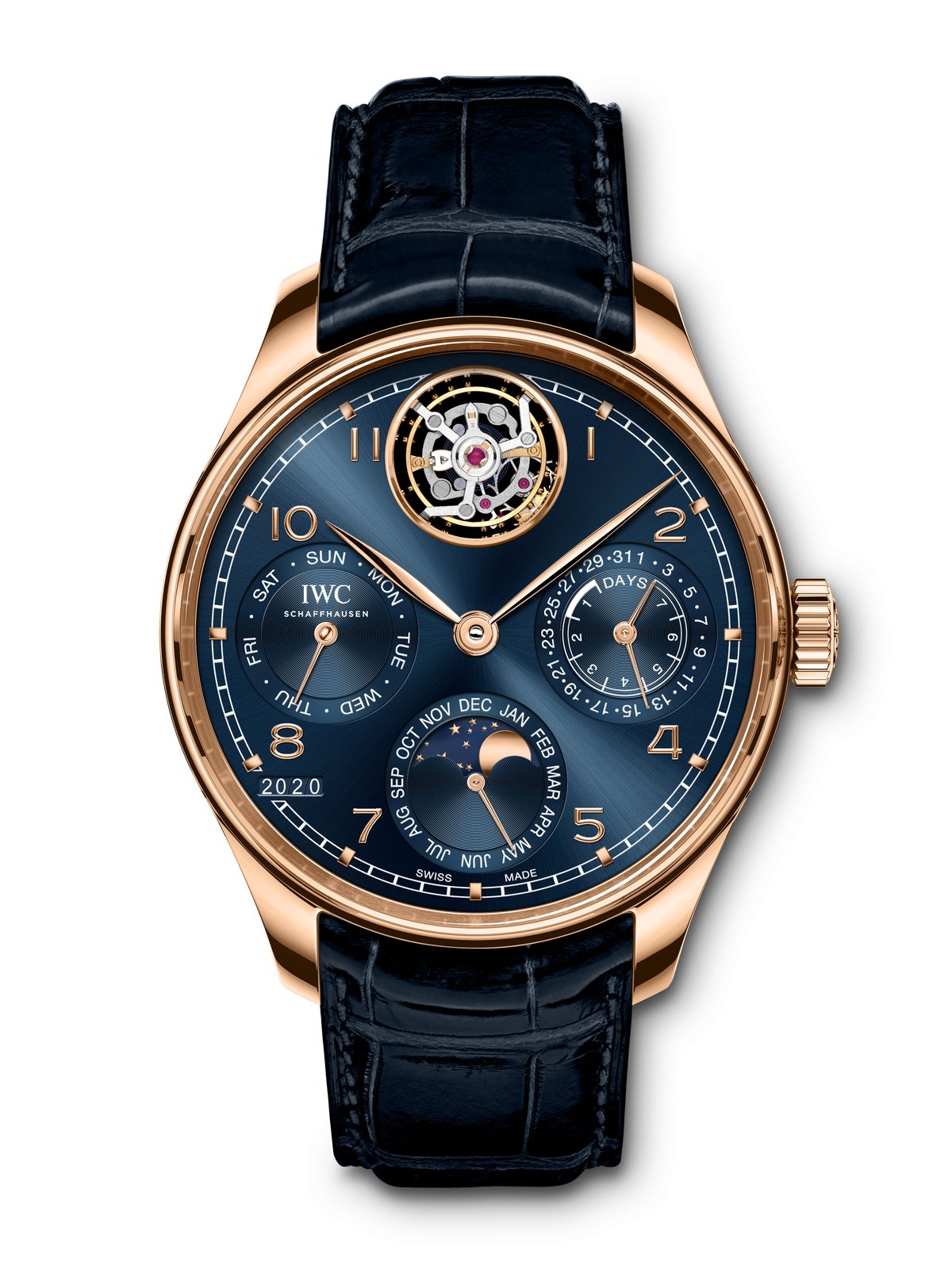 The Portugieser Perpetual Calendar Tourbillon (Ref. 5045) brings together the two complications that give the watch its name. Two References are available, both limited to 50 each. One will be available as a Boutique Edition with an 18-carat Armor Gold® case, while the second will be available in platinum.