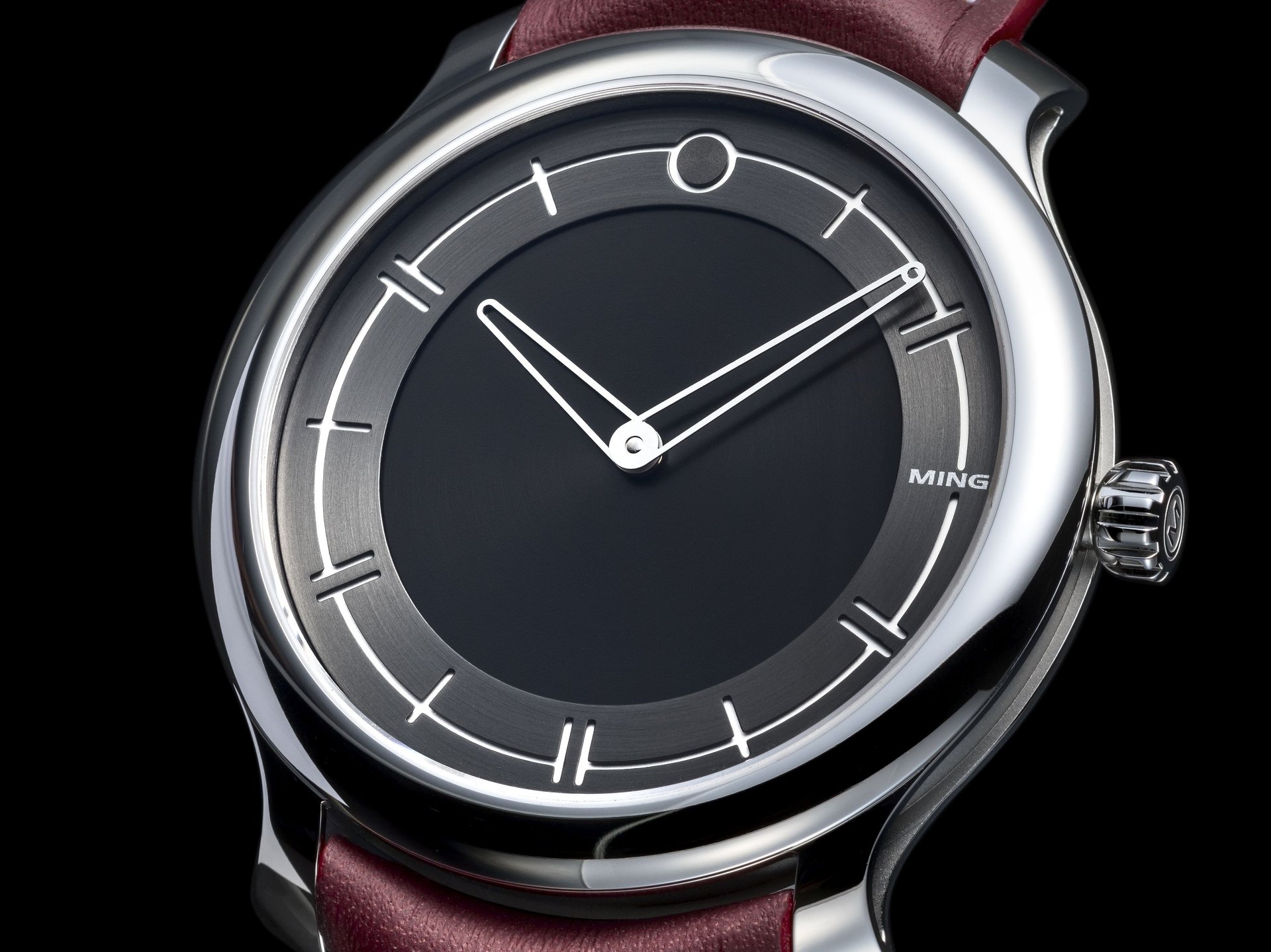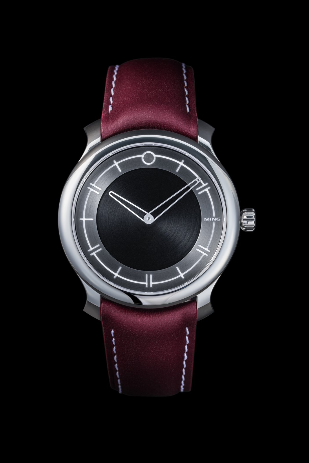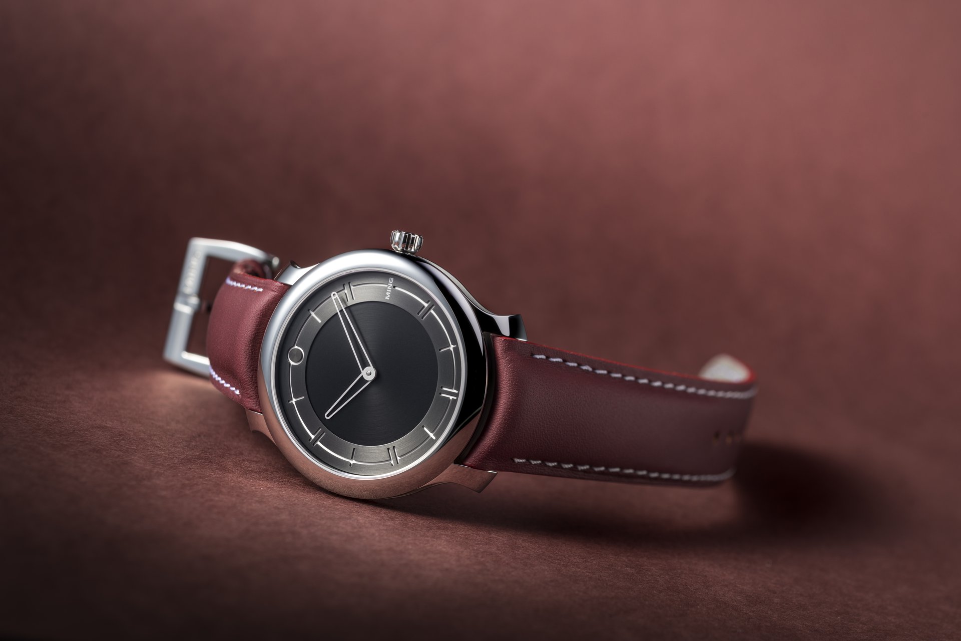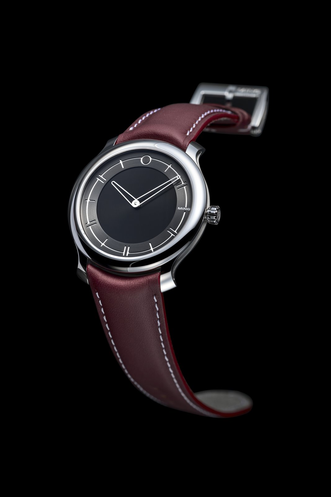 Being the most formal and dressy piece in our range, the 27.01 is our first watch not to carry any luminous material. However, a contrasting mix of matte and brushed surfaces in four different shades of silver allow for exceptional legibility. This subtle variation in texture and height of elements creates a depth despite the lack of thickness; in its interaction with light, the 27.01 is still very much a MING.