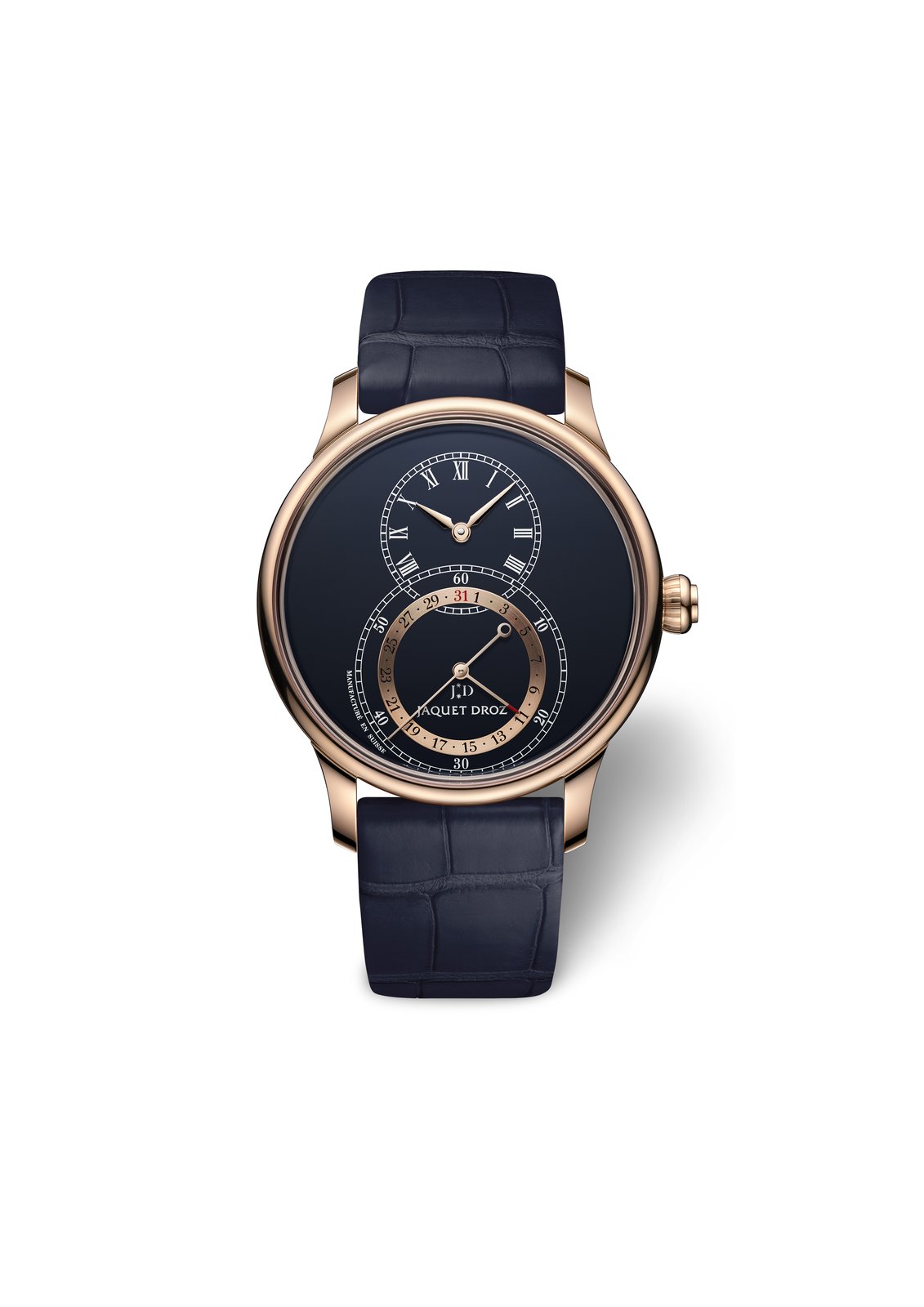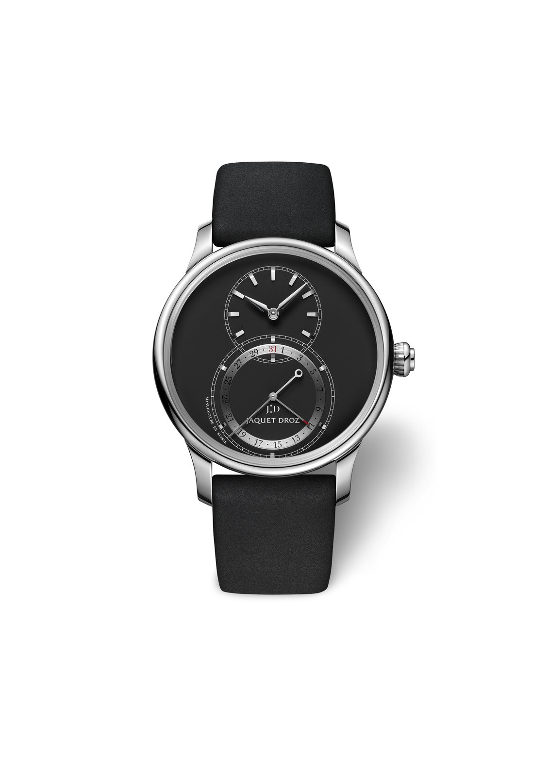 Each distinctly different variation gives collectors a chance to satisfy their personal tastes. The first four versions with classic watchmaking aesthetics are on offer with the case, appliques and oscillating weight in red gold on an alligator strap matching the Grand Feu enamel dial. The other three feature a contemporary steel case suited for more modern finishes such as matching velvety soft calfskin straps and gold, rhodium-plated or colored appliques that strike dramatic contrasts. They include an openworked oscillating weight for optimal rewinding and an unobstructed view of the hand-assembled Jaquet Droz self-winding movement that ensures a nearly three-day power reserve (68 hours). Like almost all of Jaquet Droz’s modern-day creations, a silicon balance spring is used to control the isochronism and make the timepiece resistant to temperature changes, magnetic fields and shock. With these seven new models, Jaquet Droz is ushering the Grande Seconde into the 21st century in the utmost of style while showcasing the novelty of a design with lines that follow every curve of its time.