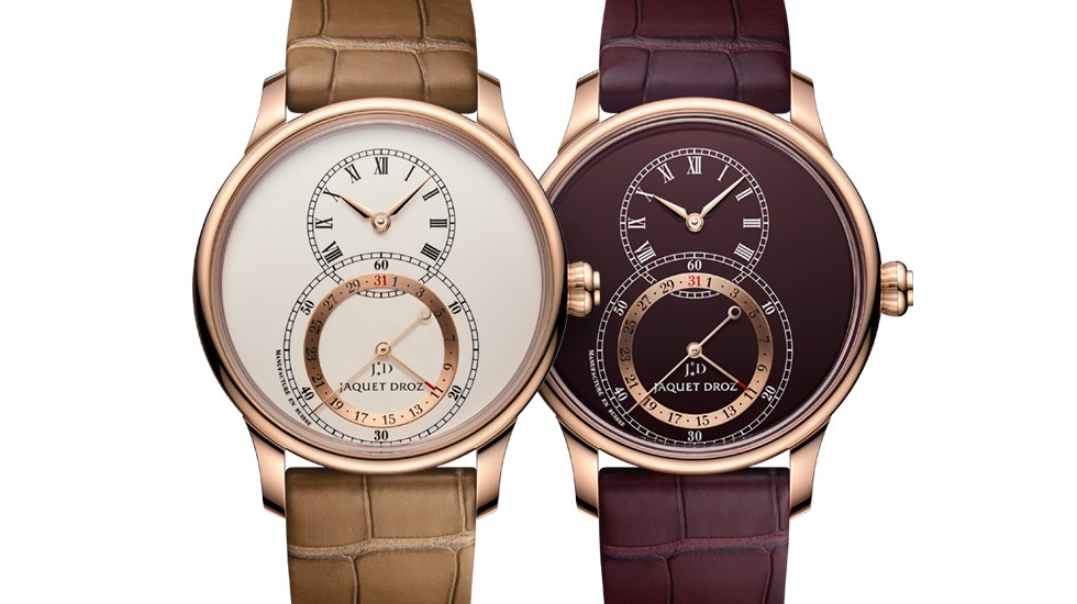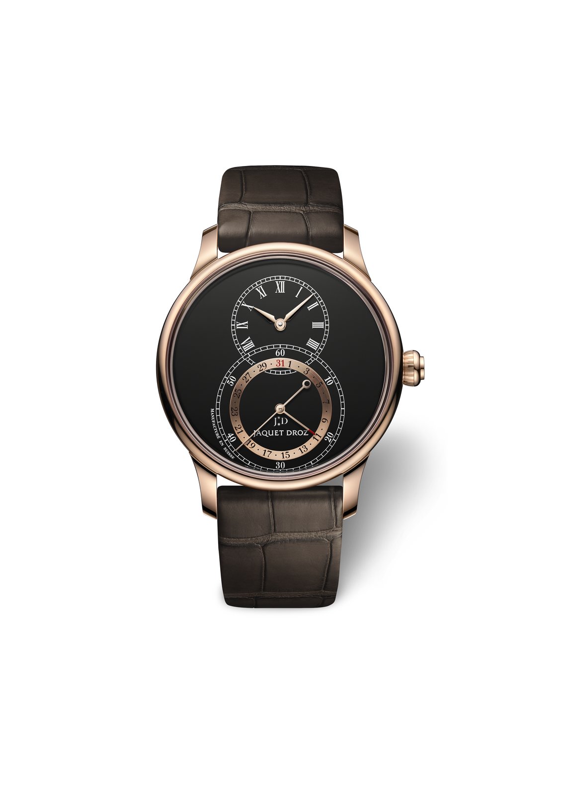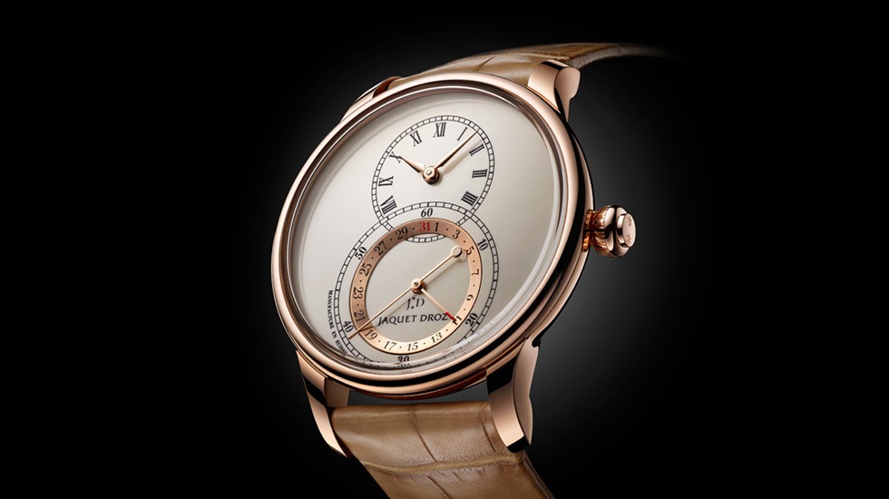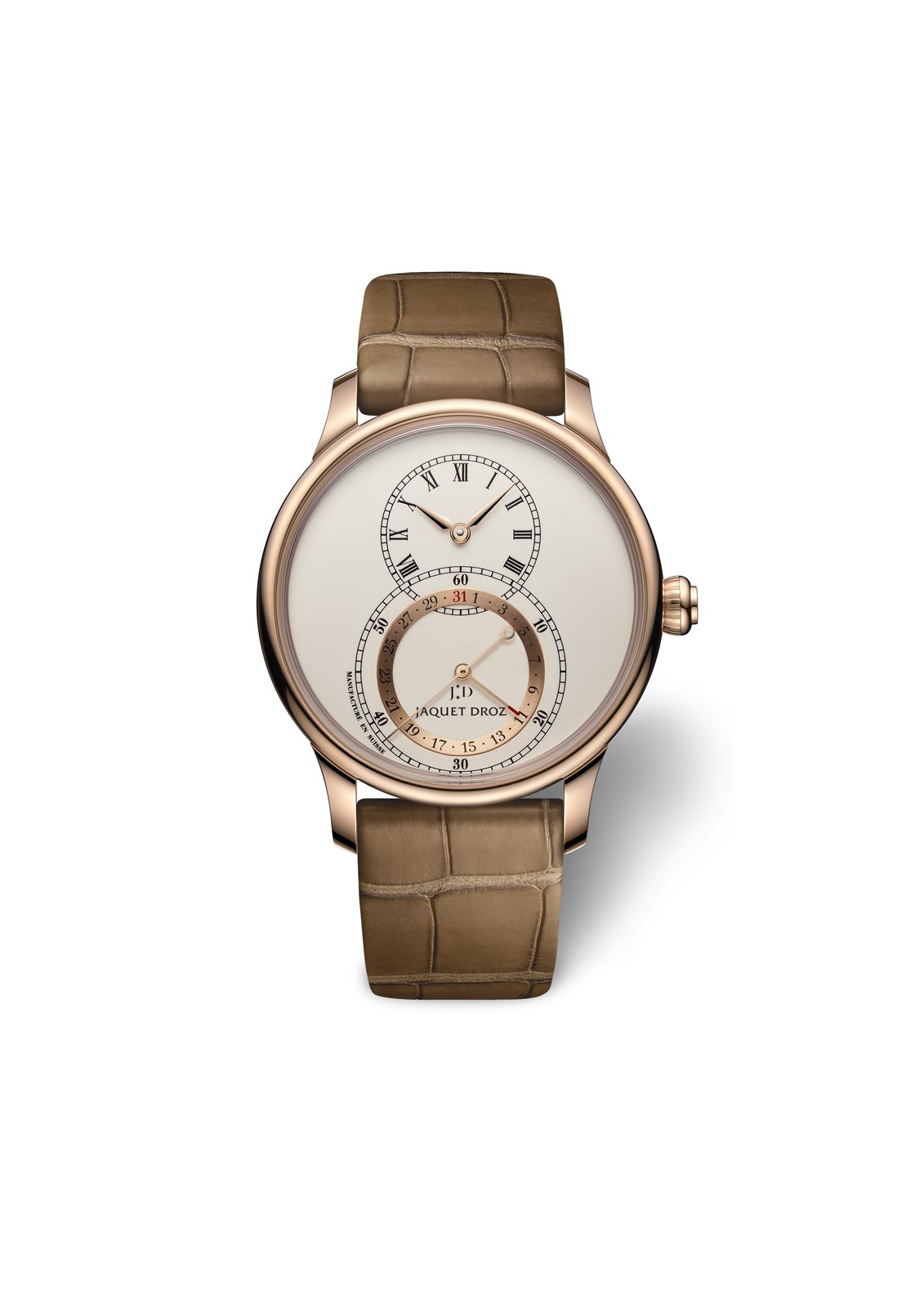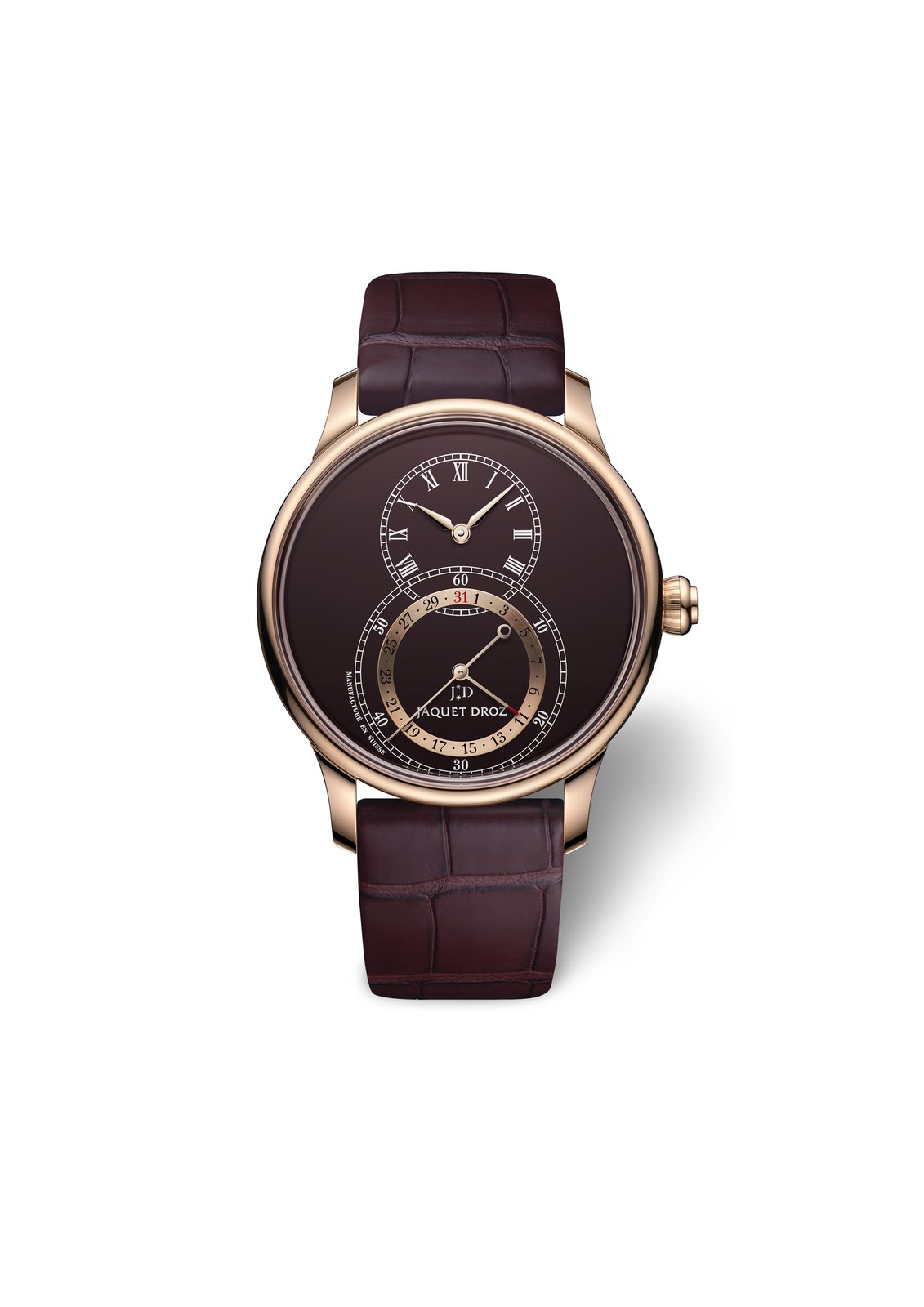 - Jaquet Droz 2660Q2, self-winding mechanical movement, silicon balance spring and pallet horns, double barrel, 18-karat red gold oscillating weight