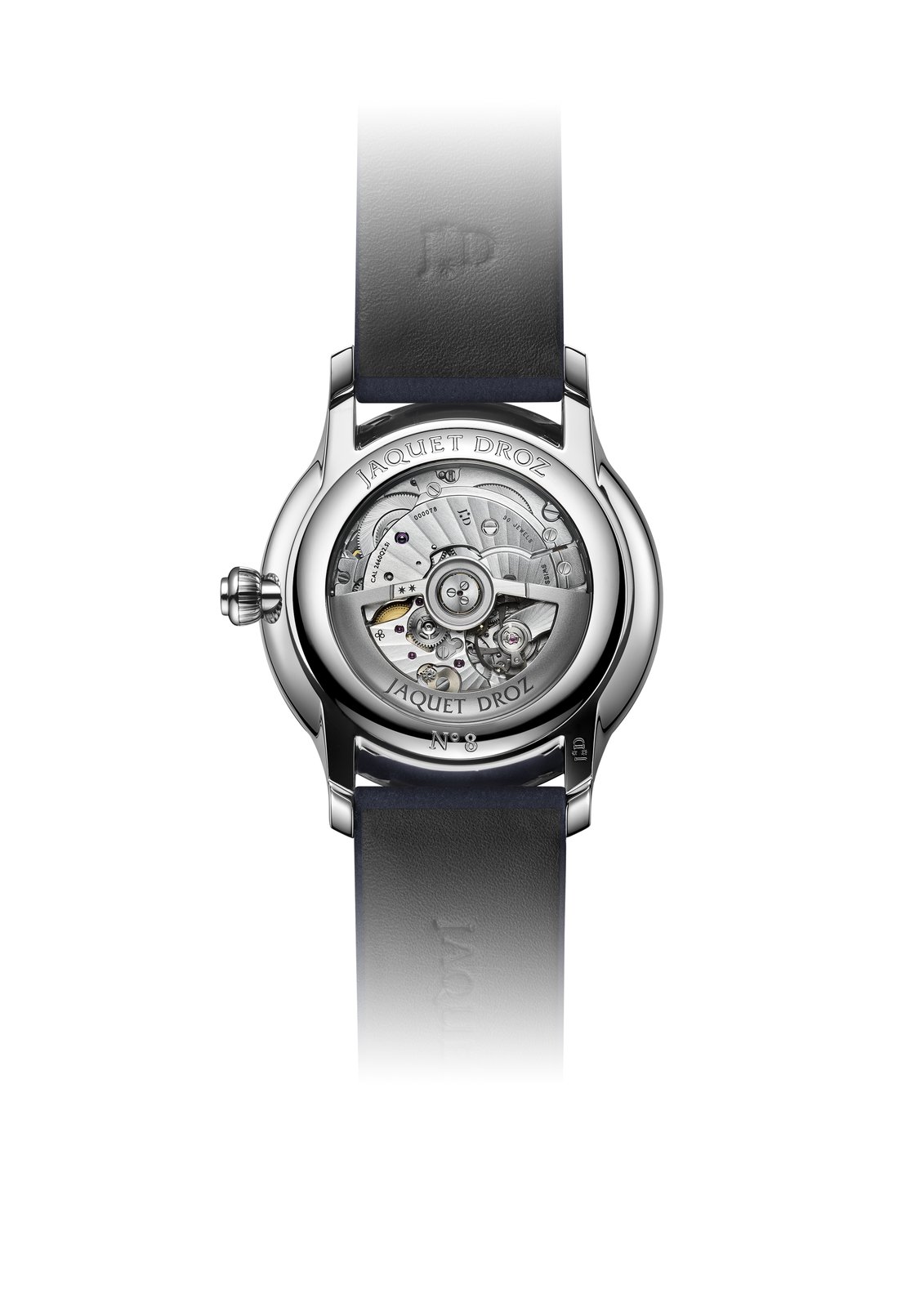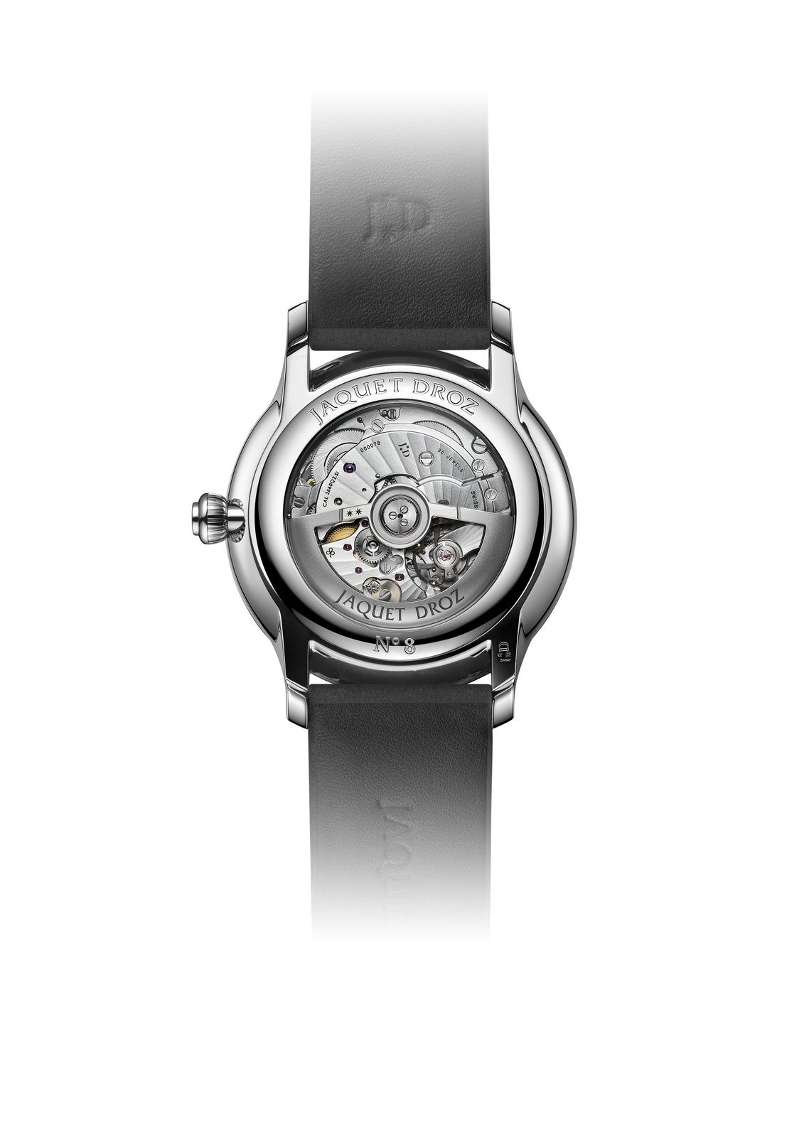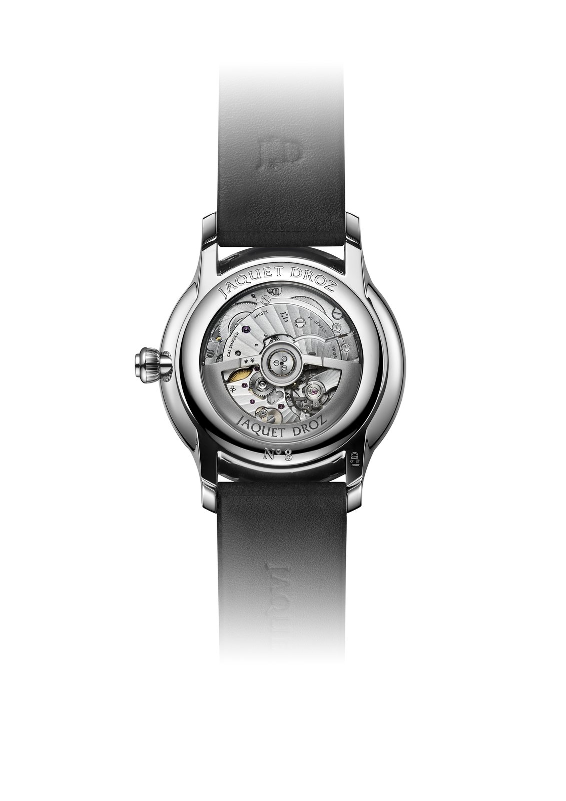 - Jaquet Droz 2660Q2, self-winding mechanical movement, silicon balance spring and pallet horns, double barrel, oscillating weight in heavy metal