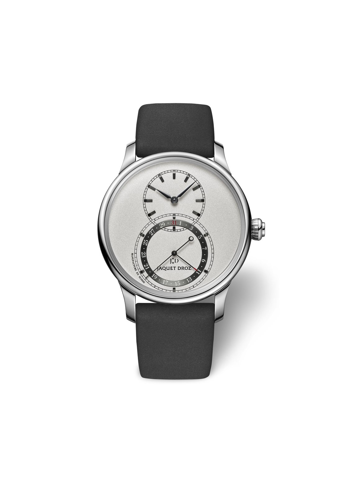 Long-awaited by collectors, this new size was a chance for Jaquet Droz to take a fresh approach to several design elements. This makes the Grande Seconde Quantième 41 mm an authentic creation, and by no means is it simply a smaller version of an existing model. Everything, or almost everything, has been given a second look. The redesign begins with the case itself, which is now 41 mm. It was thinned down slightly to make it lighter on the wrist and more compatible with its new diameter. This serves to preserve the proportions, and most remarkably the original piece’s balance and modern feel.