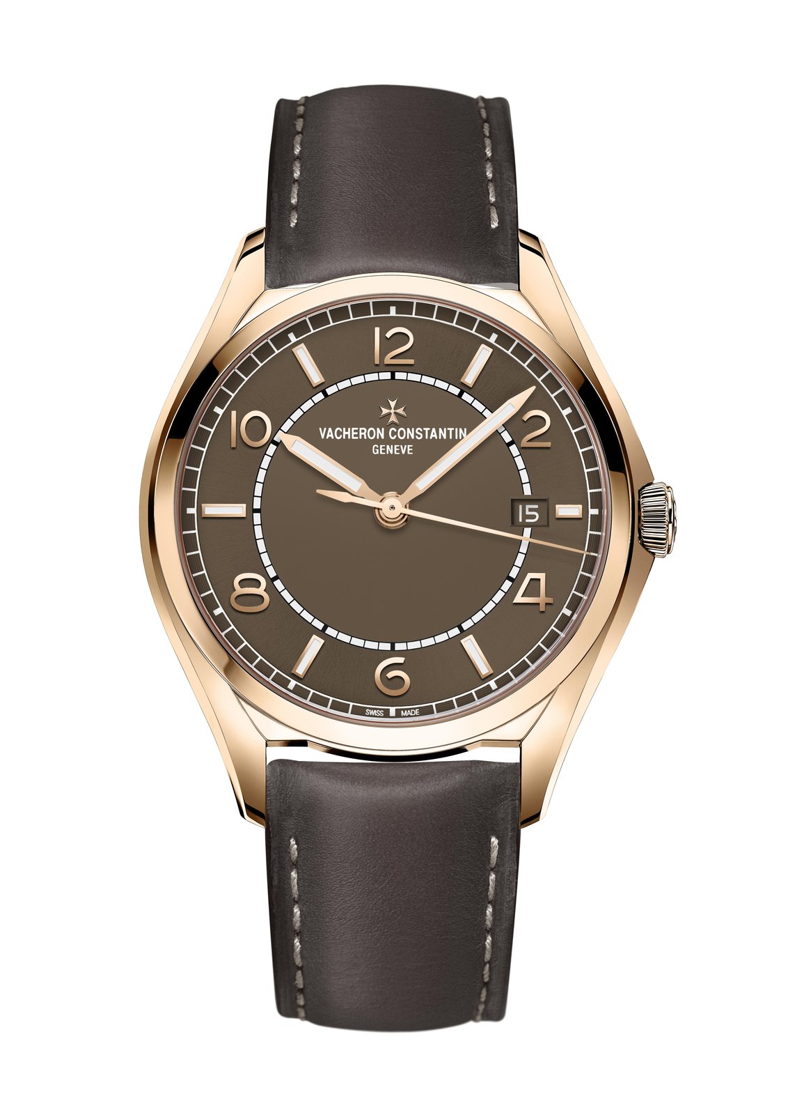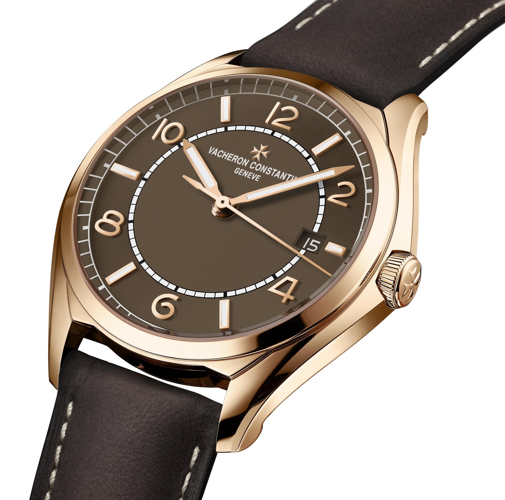 Vacheron Constantin’s retro-contemporary collection adopts a new sepia brown-toned dial colour. Available on the Fiftysix® complete calendar and Fiftysix® self-winding models, this elegant shade perfectly complements the warm hues of the 40 mm-diameter 18 carats 5N pink gold case paired with a brown calfskin strap. A skilful blend of styles and eras for these two models, which are equipped with an openworked 22 carats gold oscillating weight, whose design is inspired by the shape of the Maltese cross.