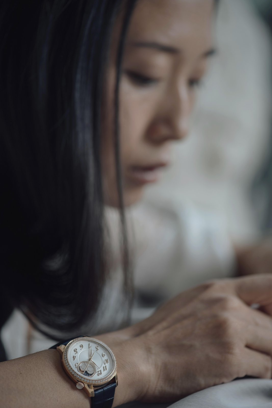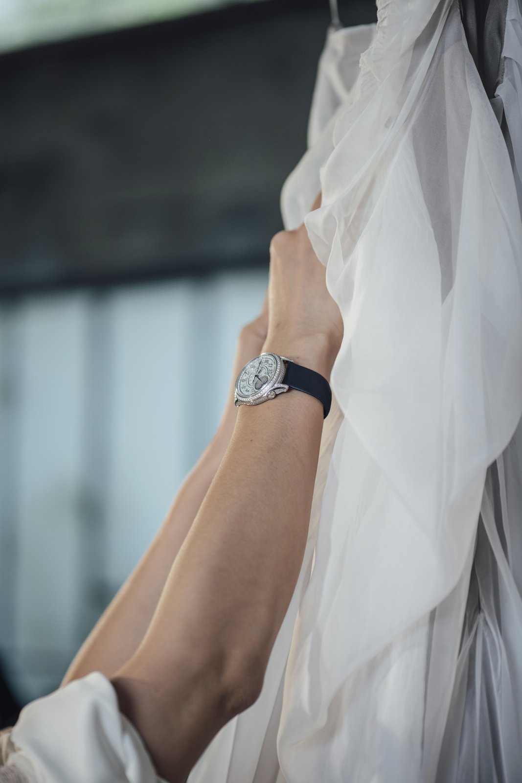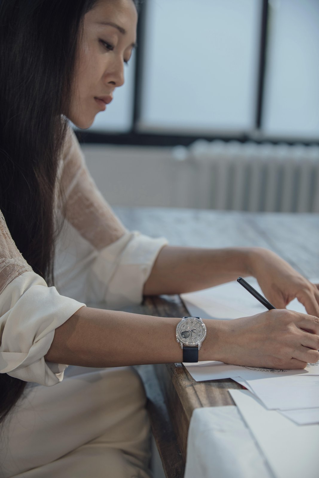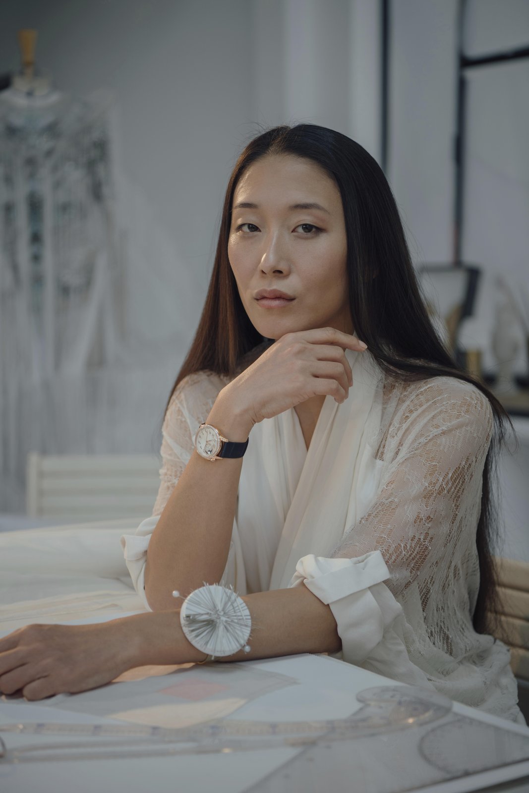Acknowledged and respected within the select circle of Haute Couture connoisseurs, her universe naturally chimed with that of Vacheron Constantin. Yiqinq Yin shares with the watchmakers and artisans of the Maison a concern for detail and a desire for discovery. Ties were thus woven between Haute Couture and Haute Horlogerie, two worlds where craftsmanship, expertise and rarity would be nothing without passion and creativity, a vocation that is constantly being challenged and reinvented in step with successive creations. The Égérie collection symbolises this encounter through the pleated dial and the off-centre aesthetic of its design.