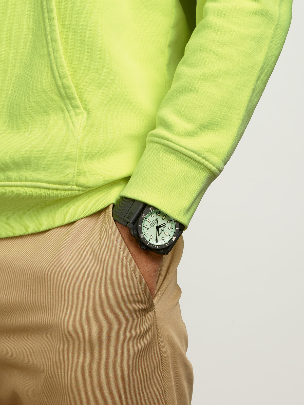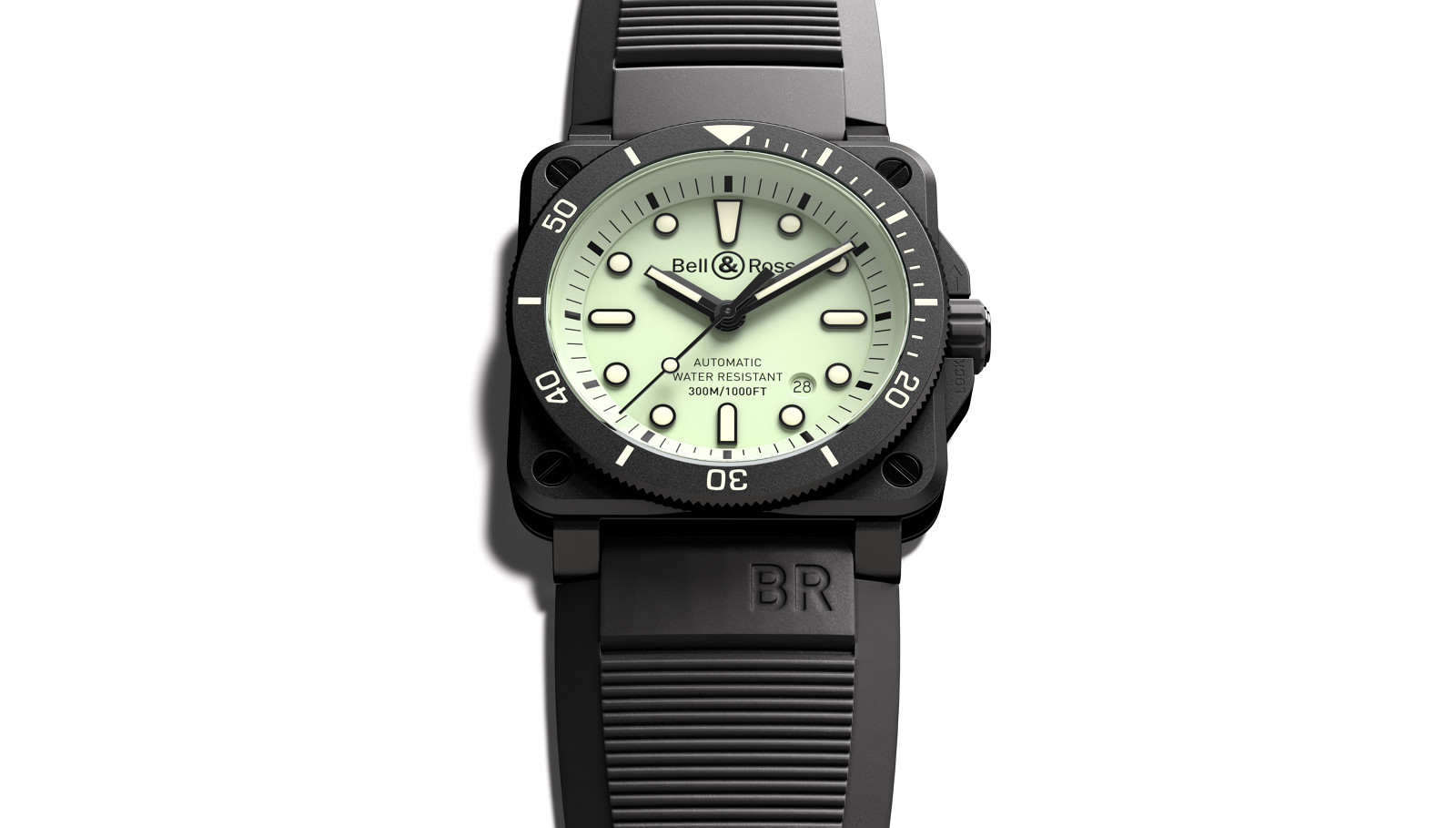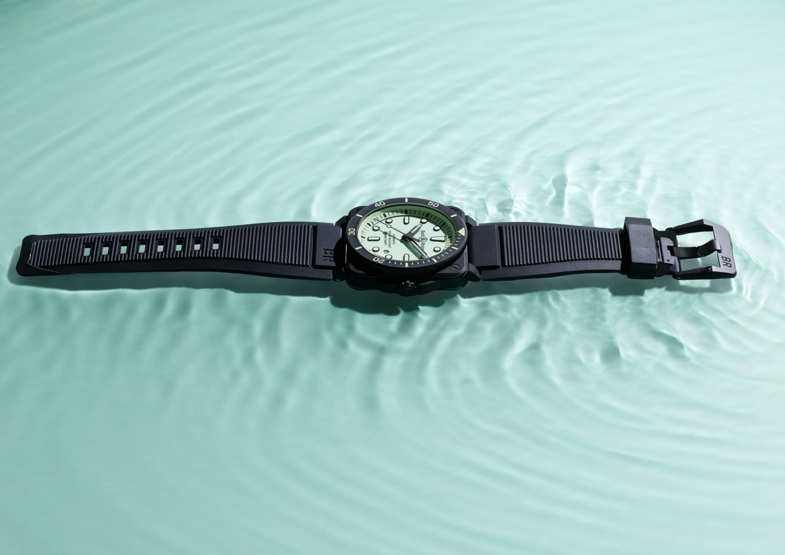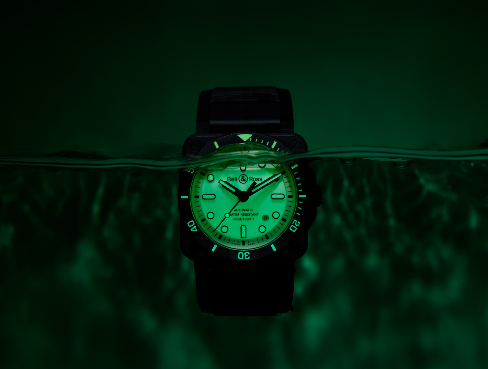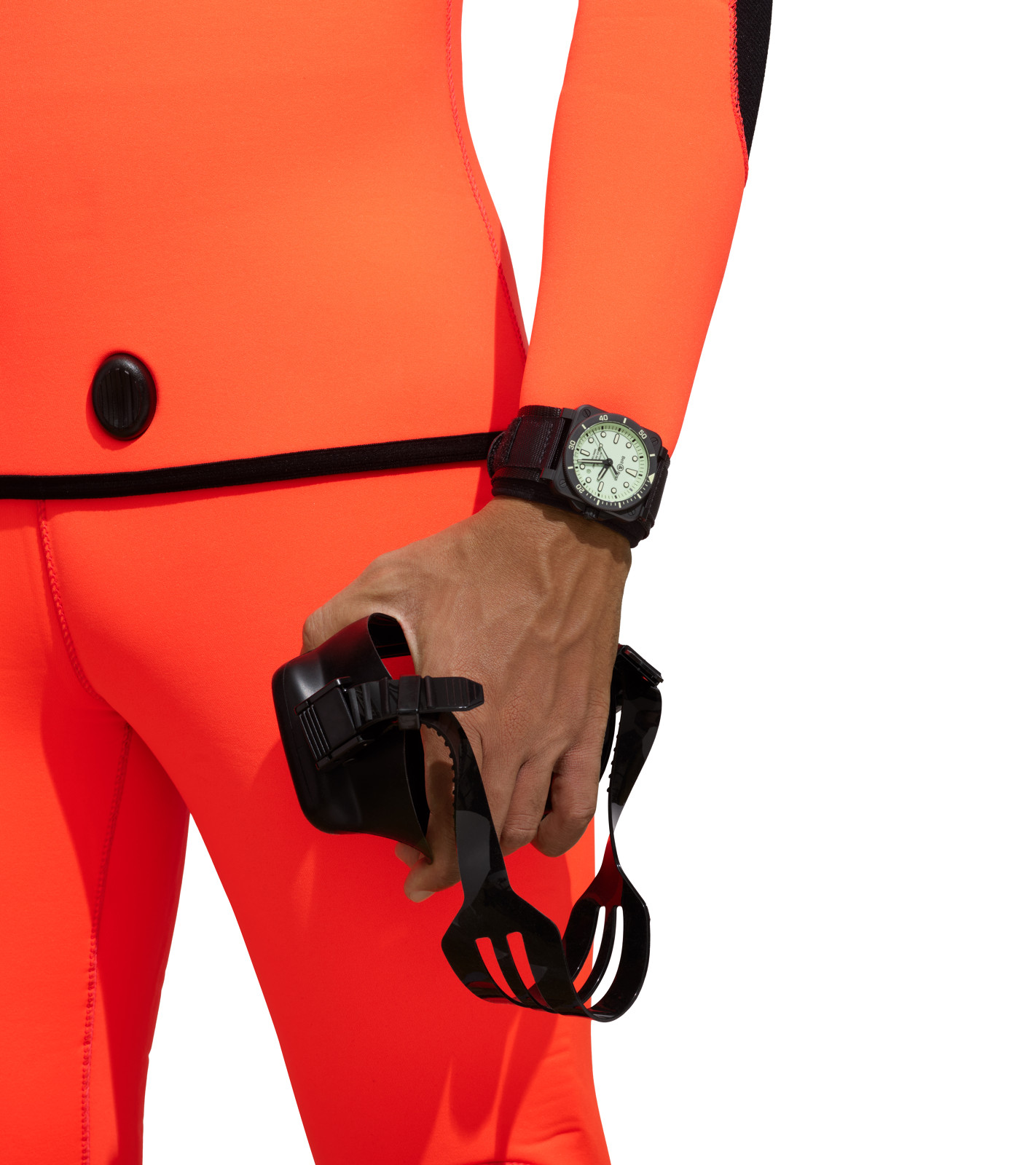 Bell & Ross’ marine expertise is the result of the collective experience and the knowledge of its designers, master watchmakers and professional divers. Legible, functional, accurate, robust and reliable, these watches meet the specific demands of professionals in their missions. Bell & Ross presents the new BR 03-92 DIVER FULL LUM