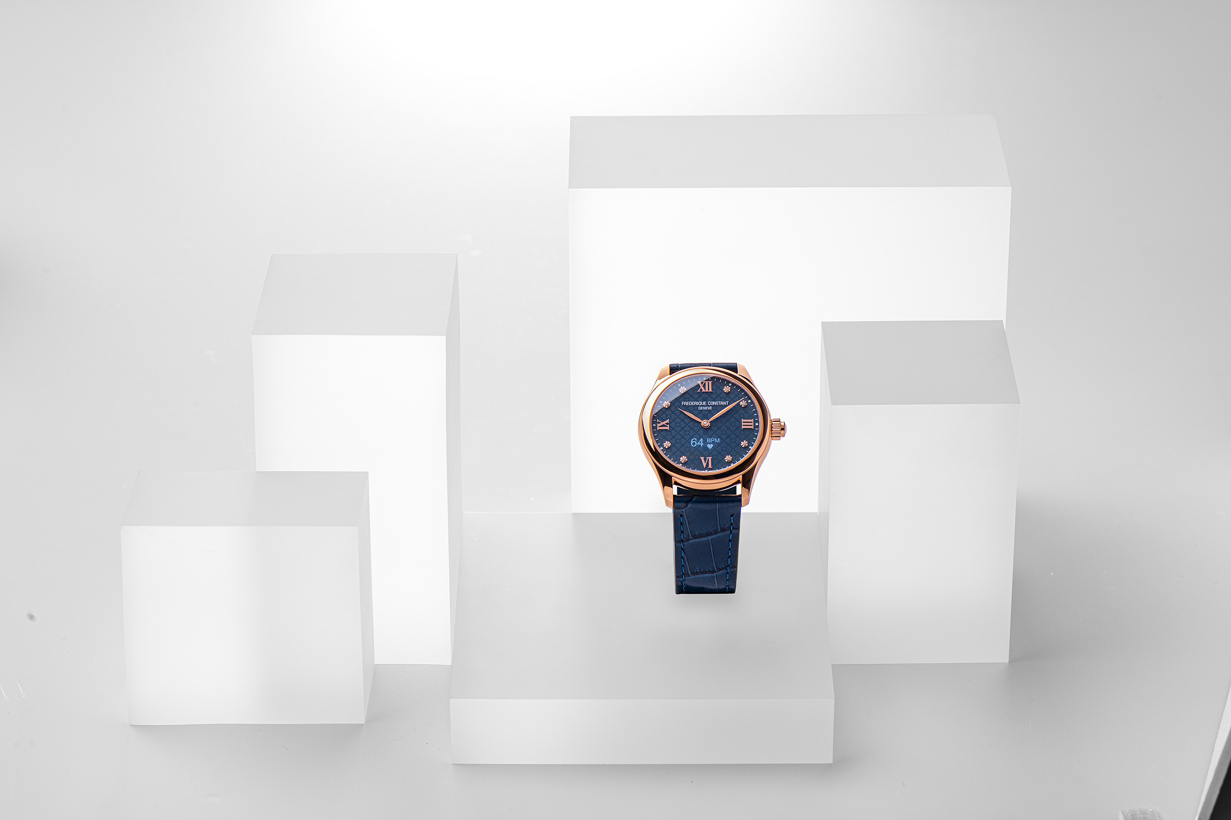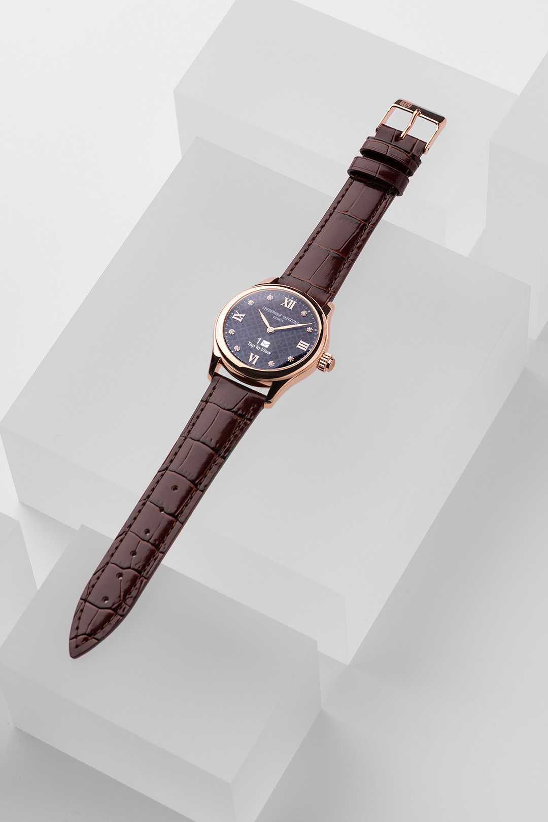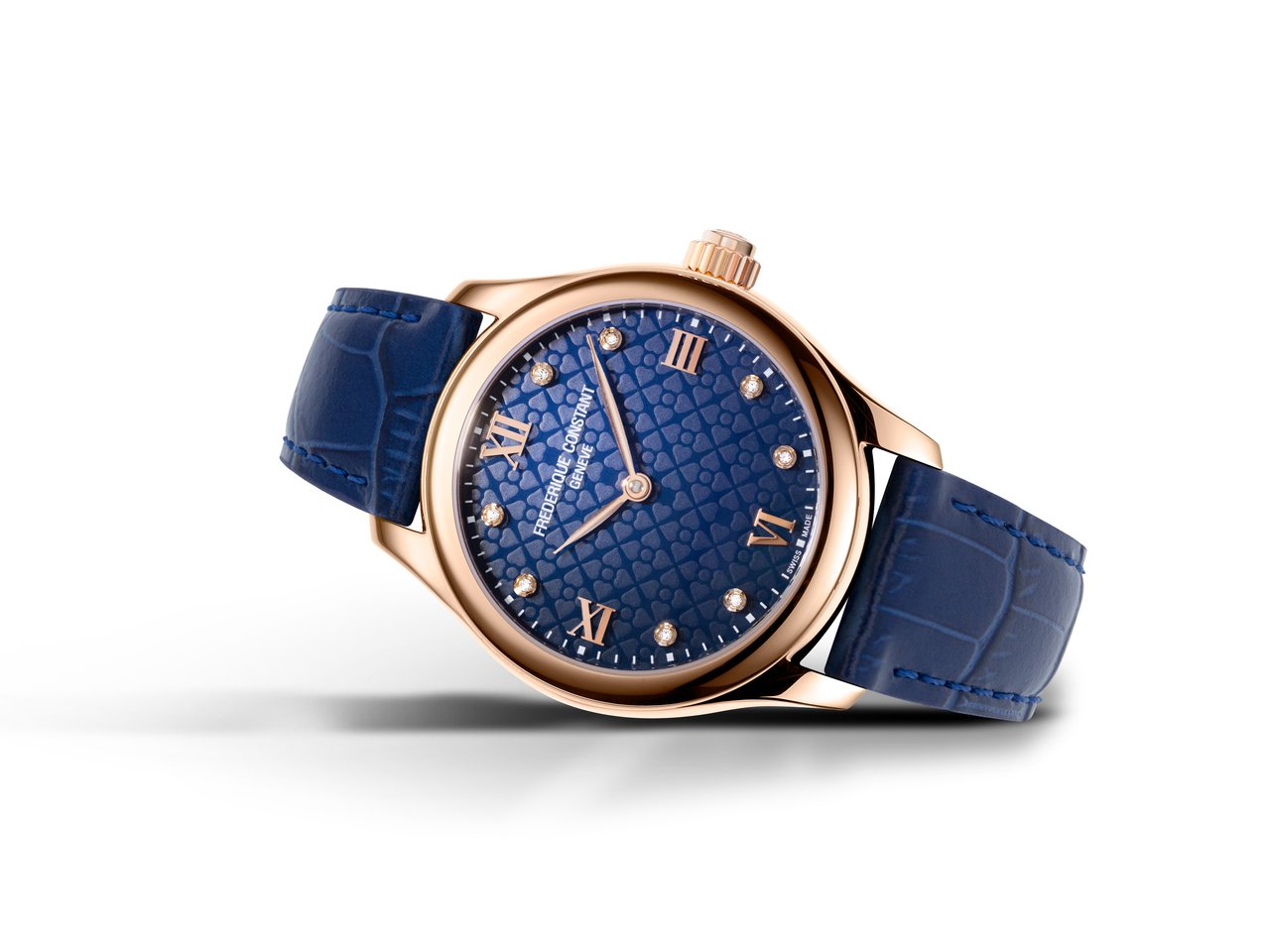- FC-286ND3B4 – Navy dial set with 8 diamonds, Rose gold plated polished stainless steel, RRP 1’095€