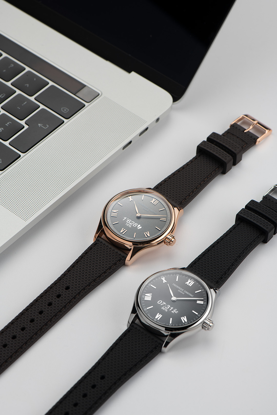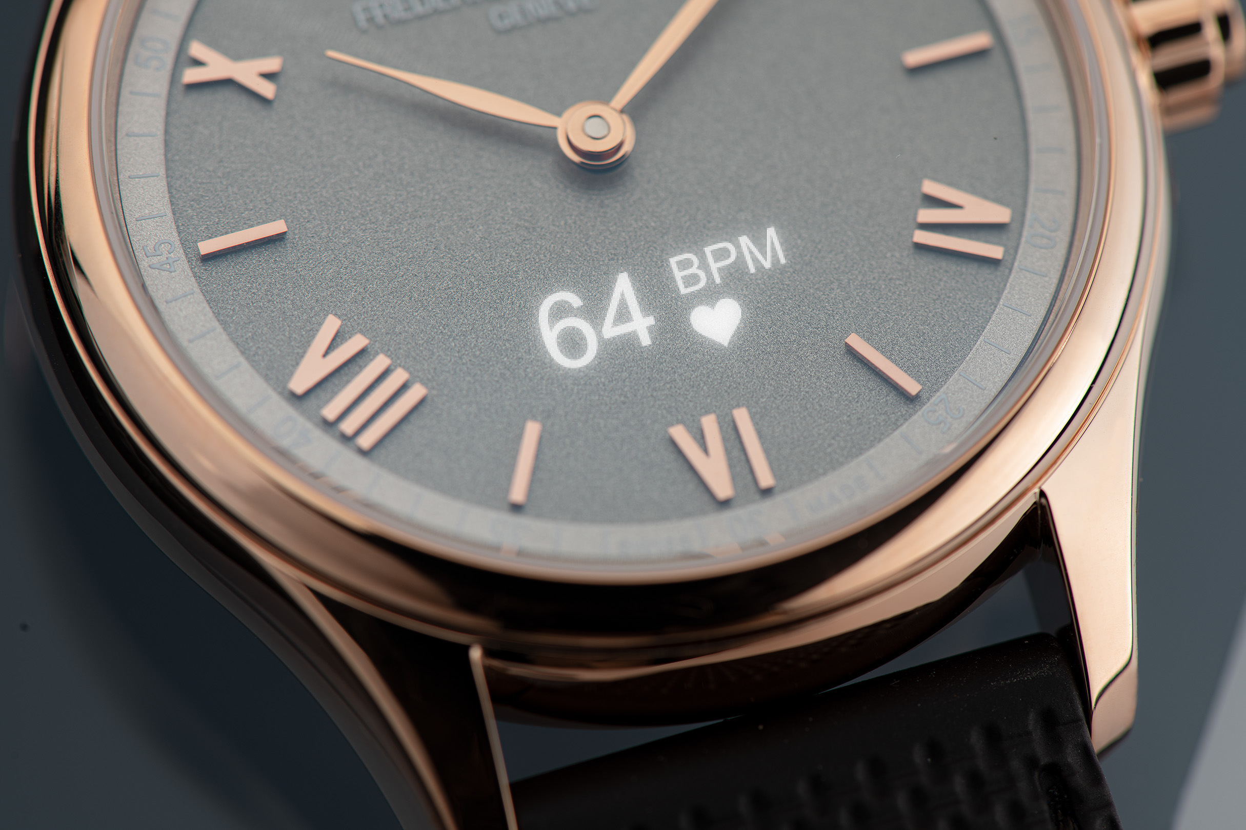 The Smartwatch Vitality has a dial with two faces – a first at Frederique Constant. The first is characterised by Roman numerals and hand-polished hour and minute hands… chic and contemporary classicism for those who appreciate sophisticated timepieces with a refined look.