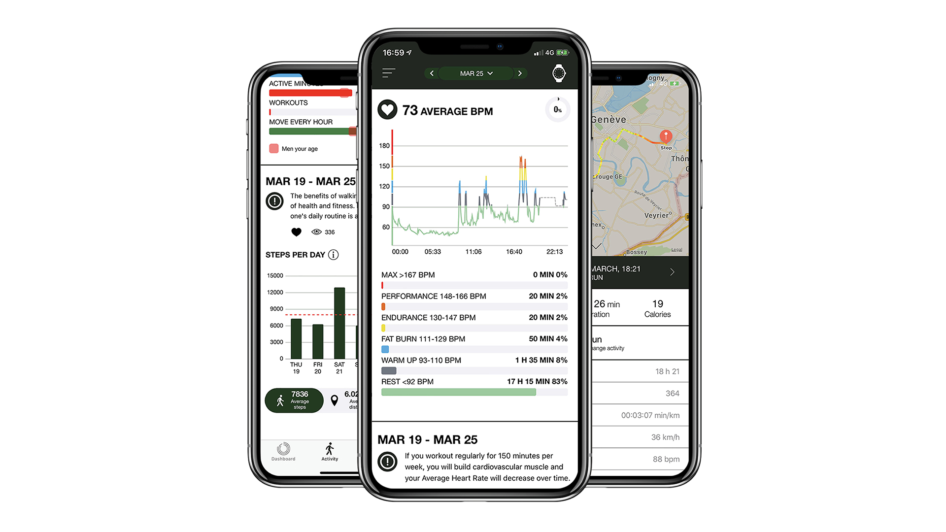 - Get-active alerts: physical activity reminder after a certain period of inactivity.