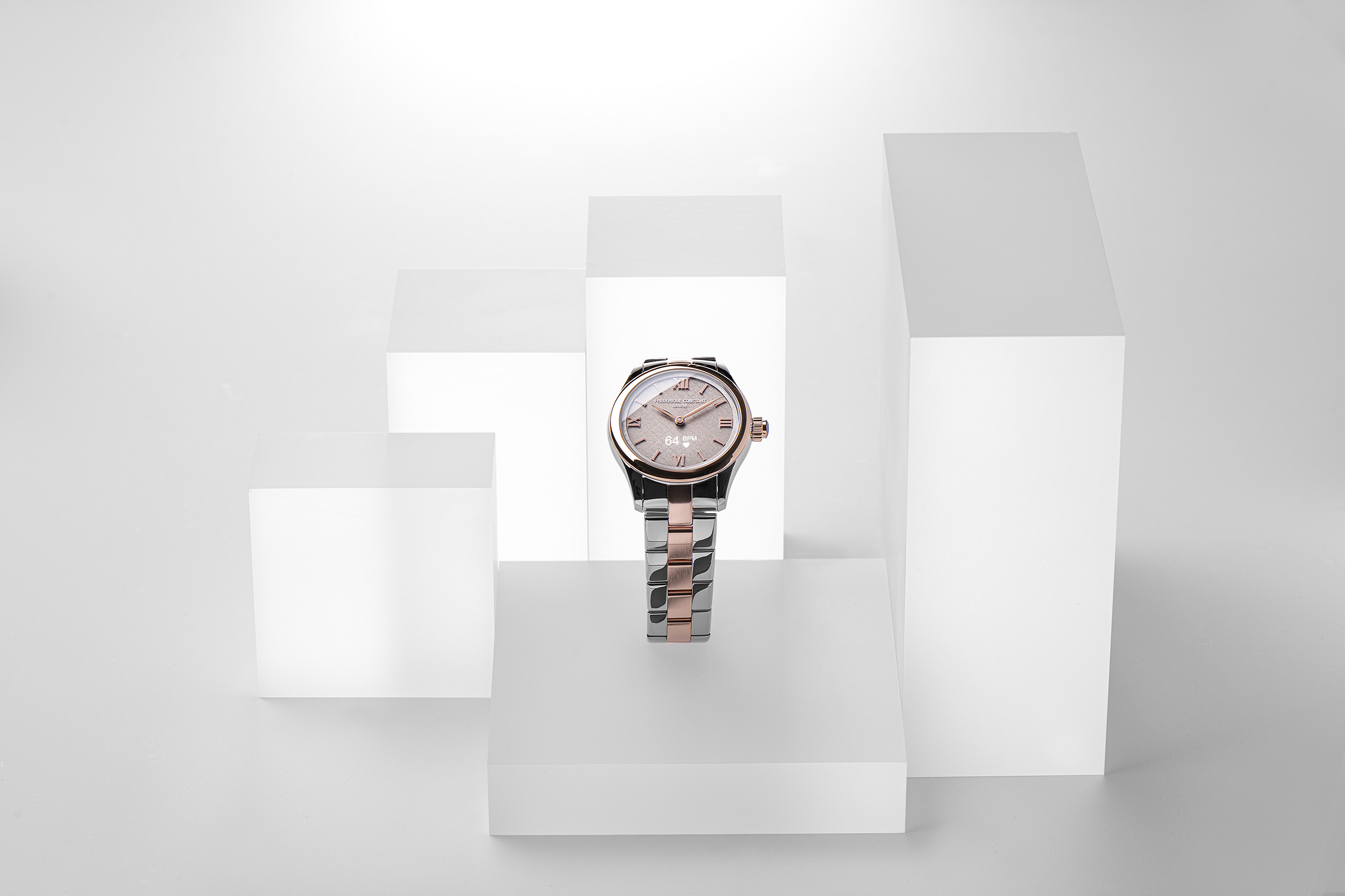 In terms of straps, Frederique Constant wanted to give customers plenty to choose from. Each of the ladies’ models comes with a leather strap or steel bracelet, but can equally be accessorised with a range of five other stylish and sporty rubber straps. Match your Smartwatch Vitality to your mood with straps in colours such as purple, white, pink, red and grey, sold separately.