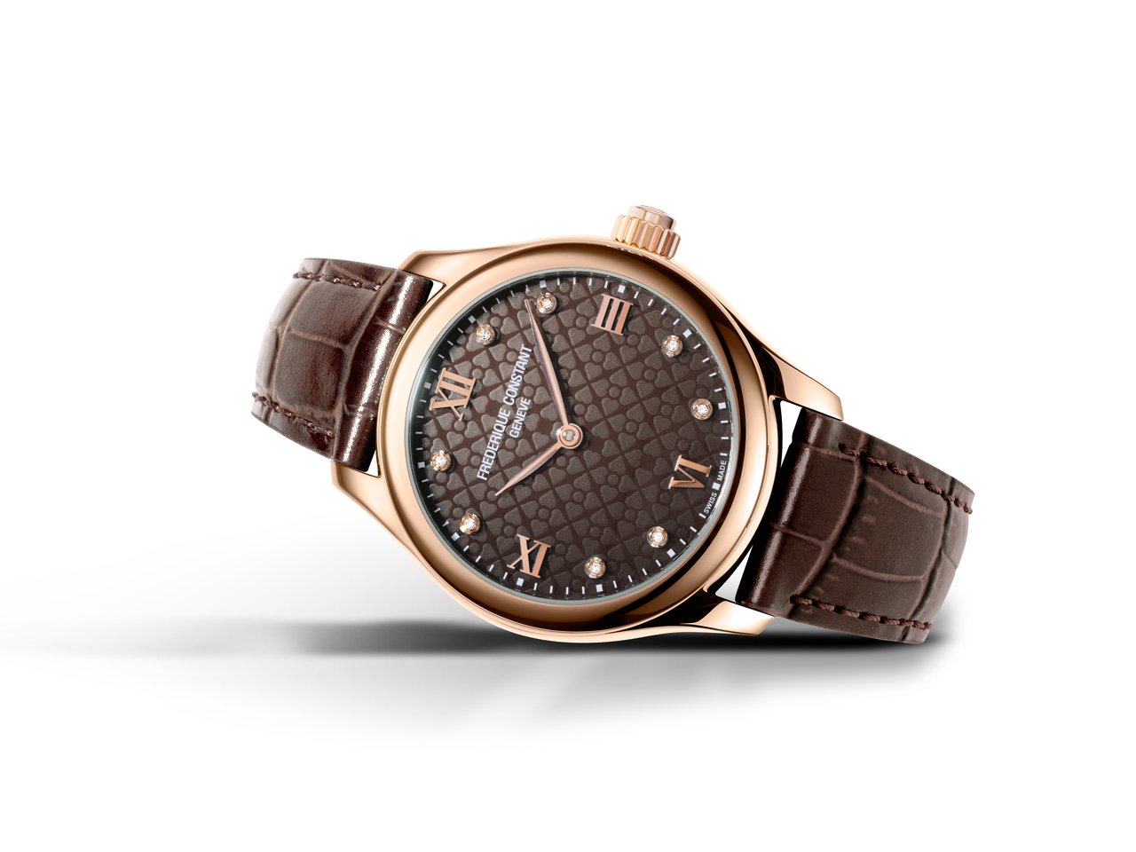 - FC-286CD3B4 – Chocolate dial set with 8 diamonds, Rose gold plated polished stainless steel, RRP 1’095€