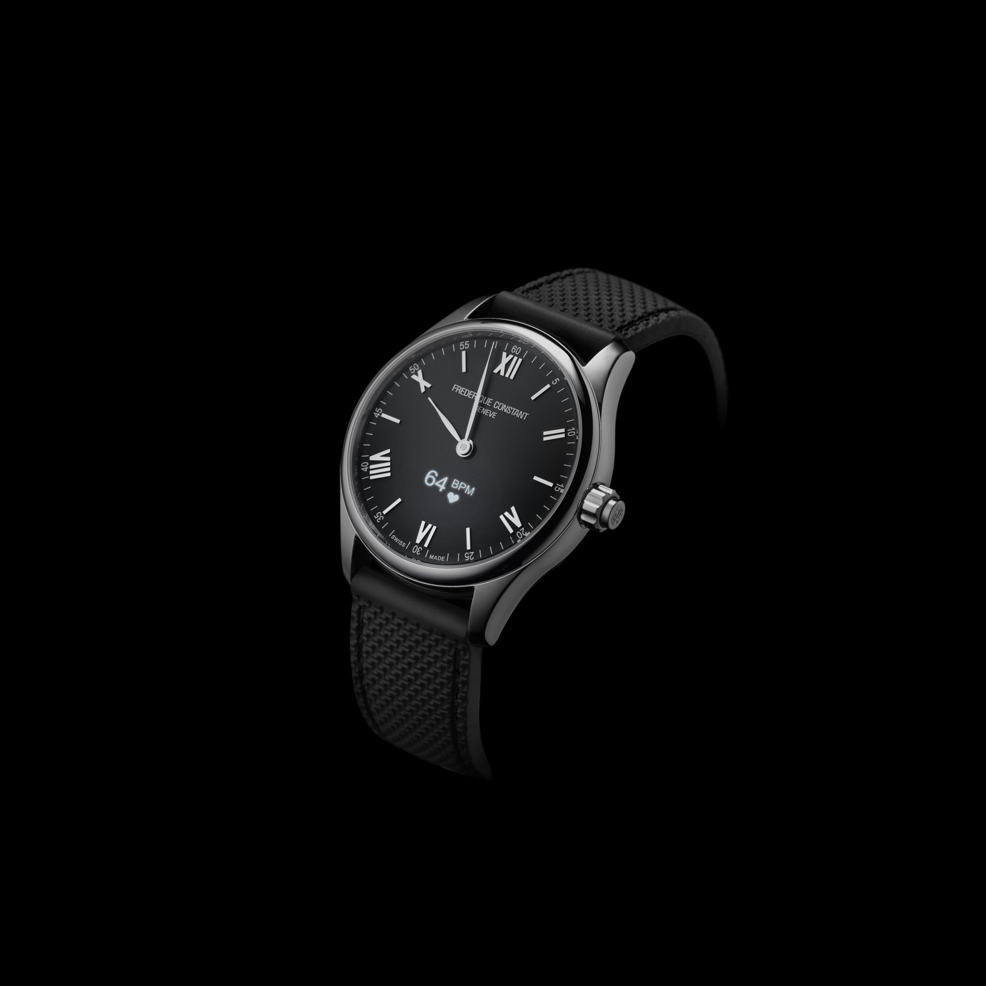 Frederique Constant is proud to introduce its latest connected watch, the Smartwatch Vitality, bursting with technology and featuring a digital dial revealed on demand. In addition to the features that were key to the success of its predecessors, the Smartwatch Vitality embraces a major innovation in the form of a new generation, integrated sensor developed by Philips Wearable Sensing, which can measure the heart rate directly from the wrist.