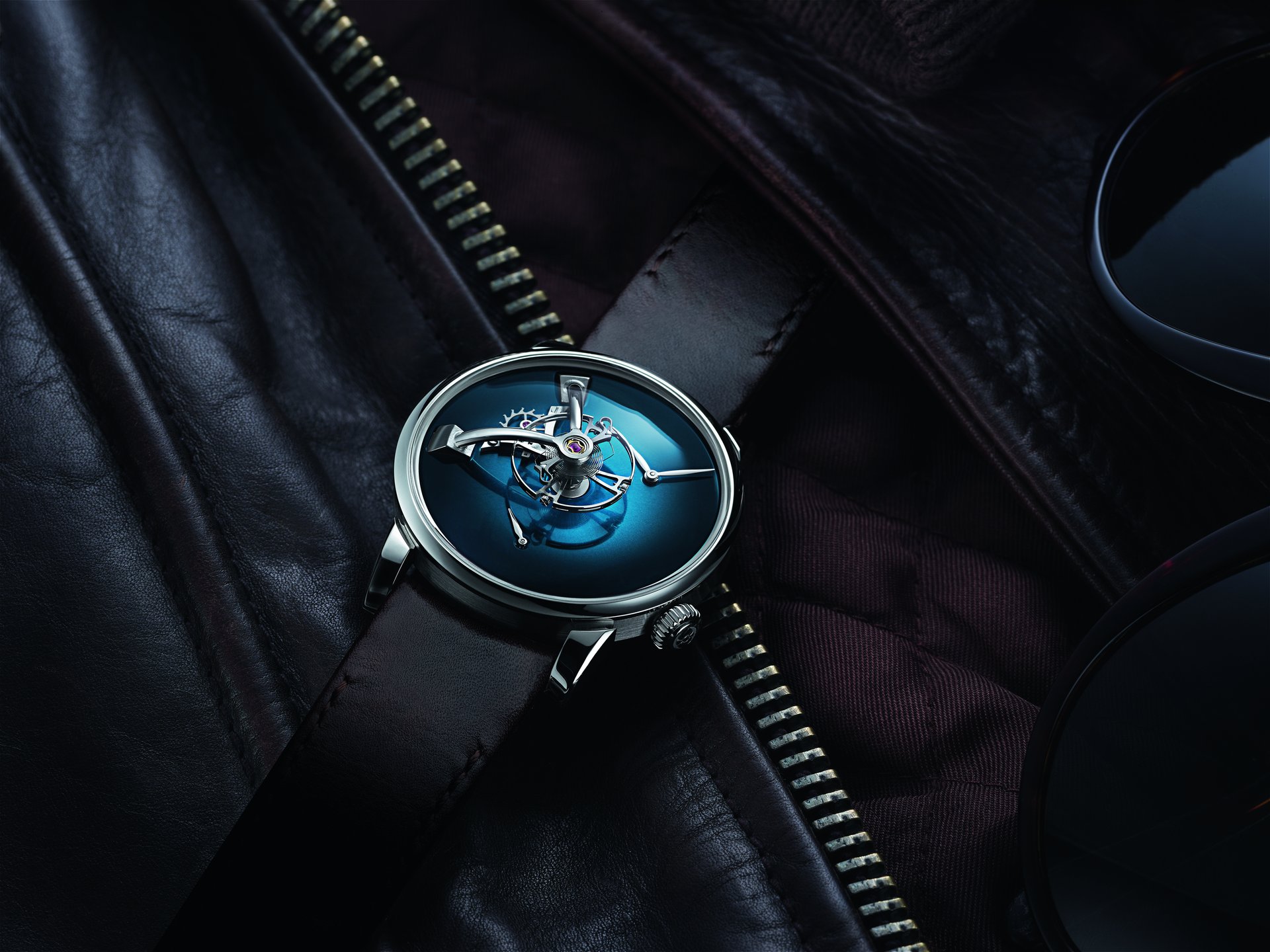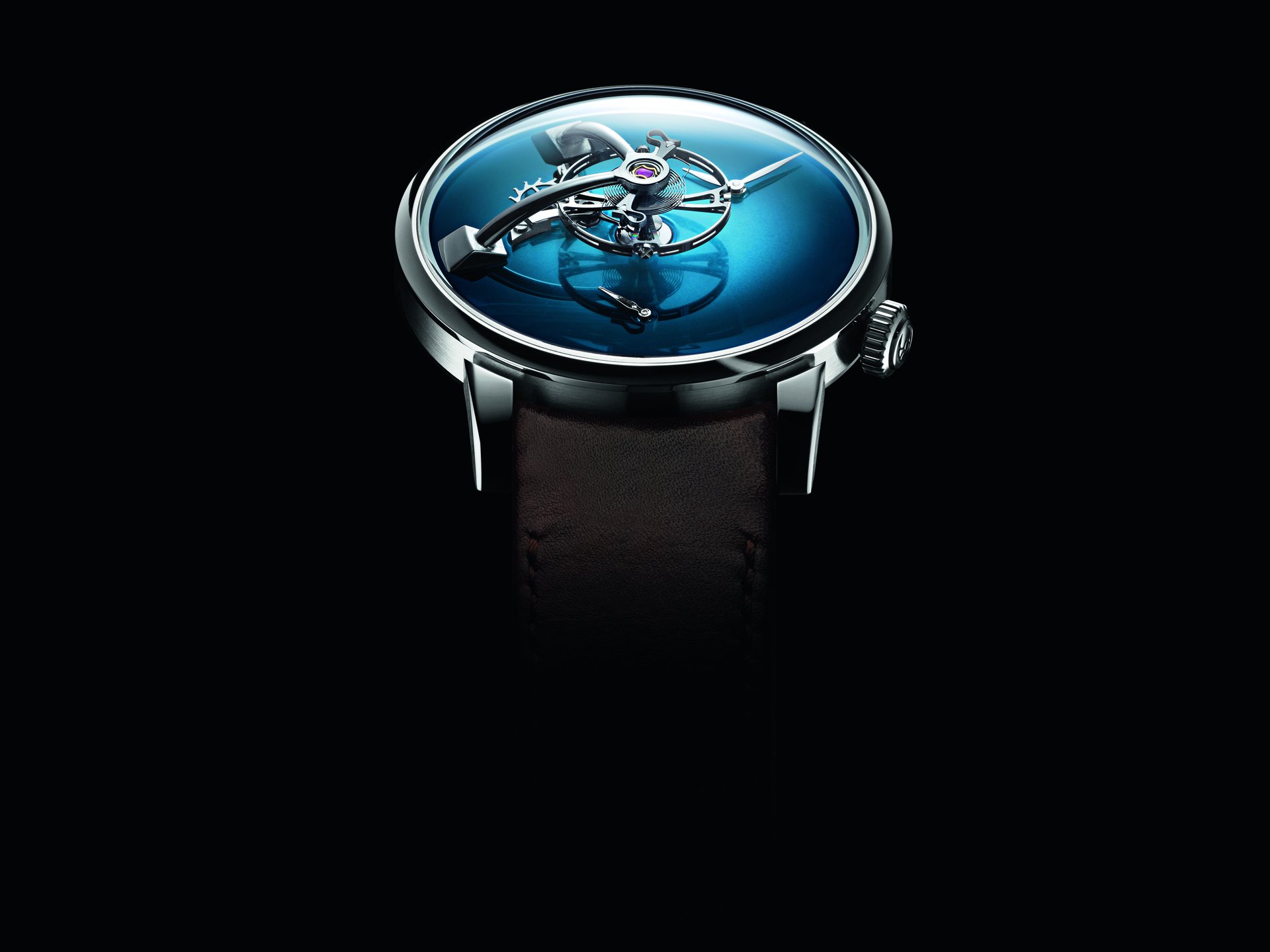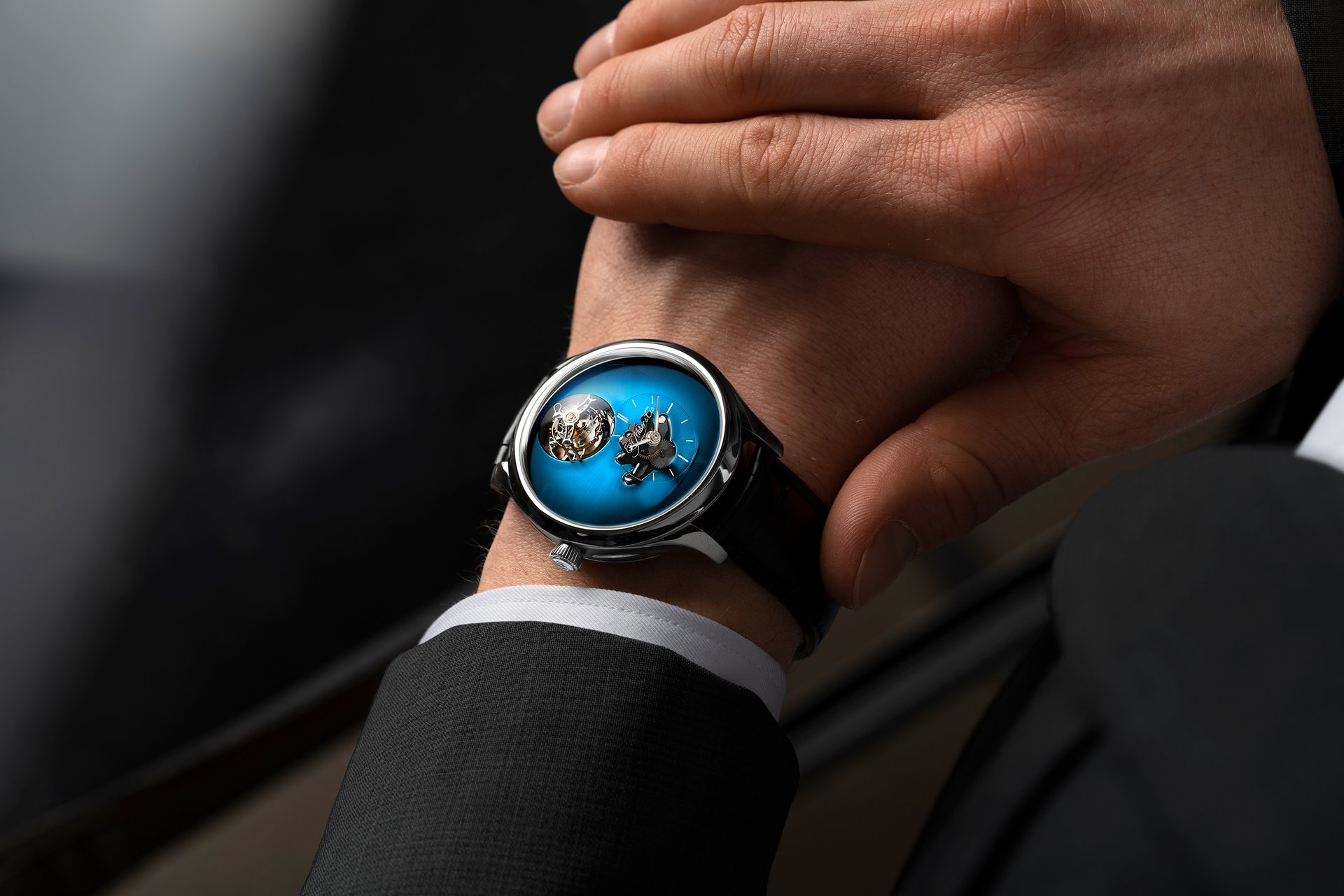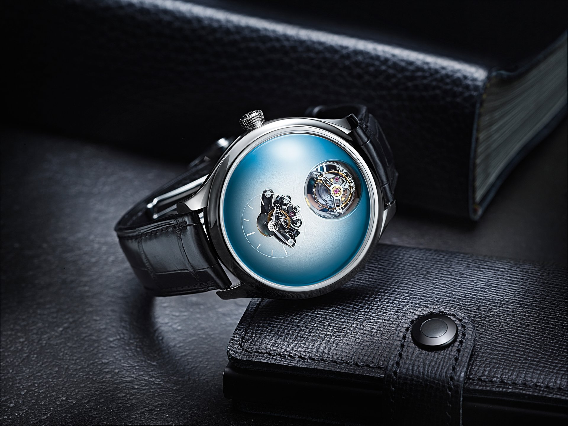 • Steel model, Funky Blue fumé dial, black alligator leather strap, limited edition of 15 pieces