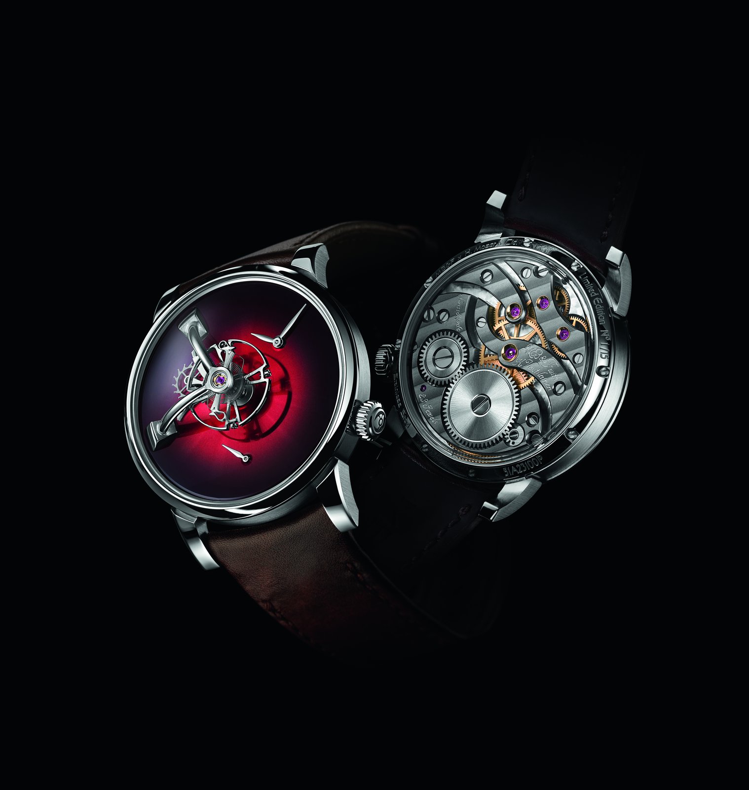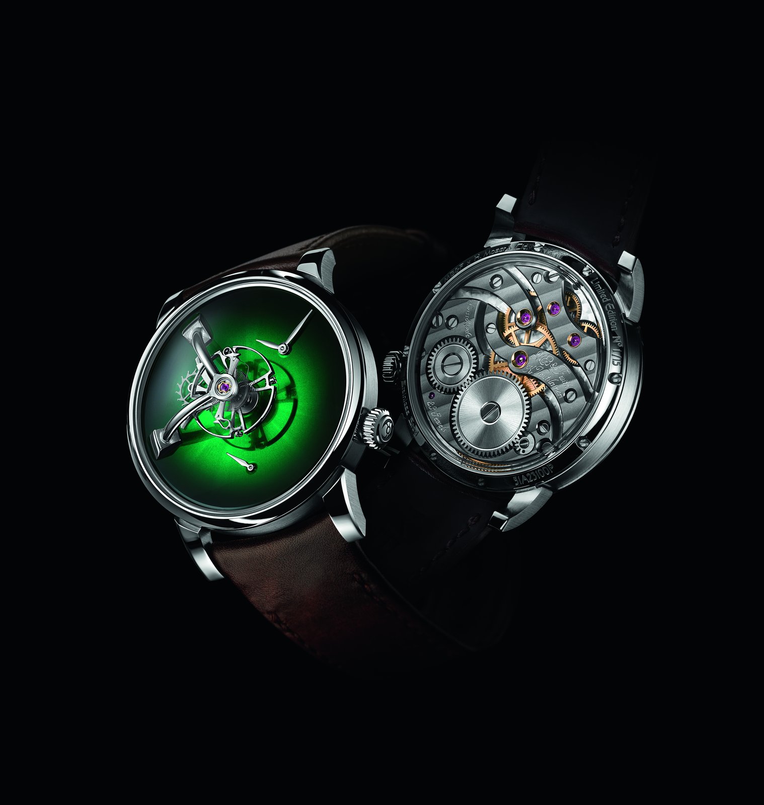 In a spirit of sharing and openness, while cultivating the notion of strength in unity, H. Moser & Cie. and MB&F have thus jointly created two models, available in several versions and issued in 15-piece limited series. This number is a nod to the 15th anniversary of MB&F as well as honouring the 15th anniversary of the relaunch of H. Moser & Cie. By pooling their strengths, these two competing yet friendly brands are working to harness the combined strengths of talented artisans, entirely in keeping with the philosophy adopted by MB&F.