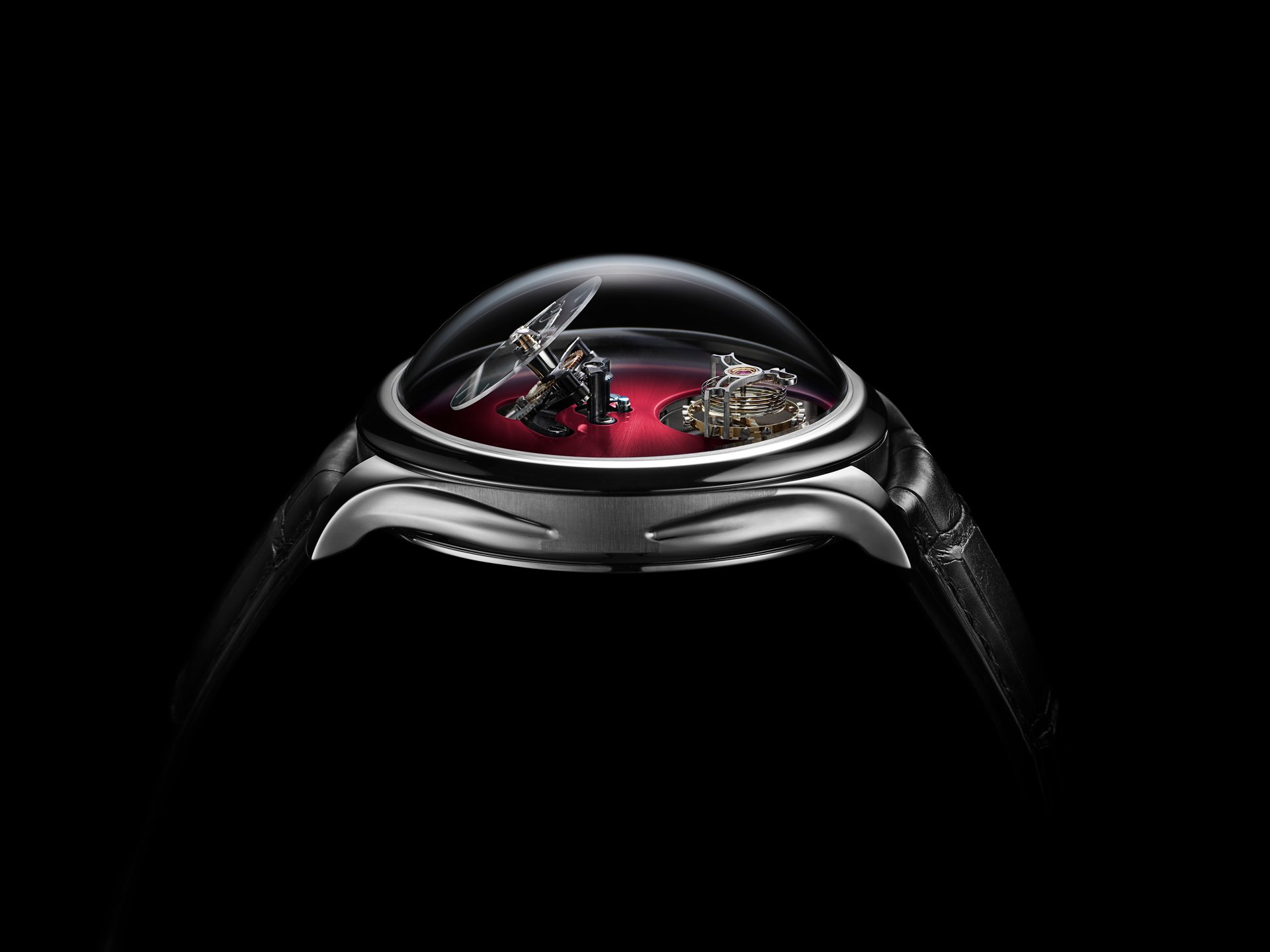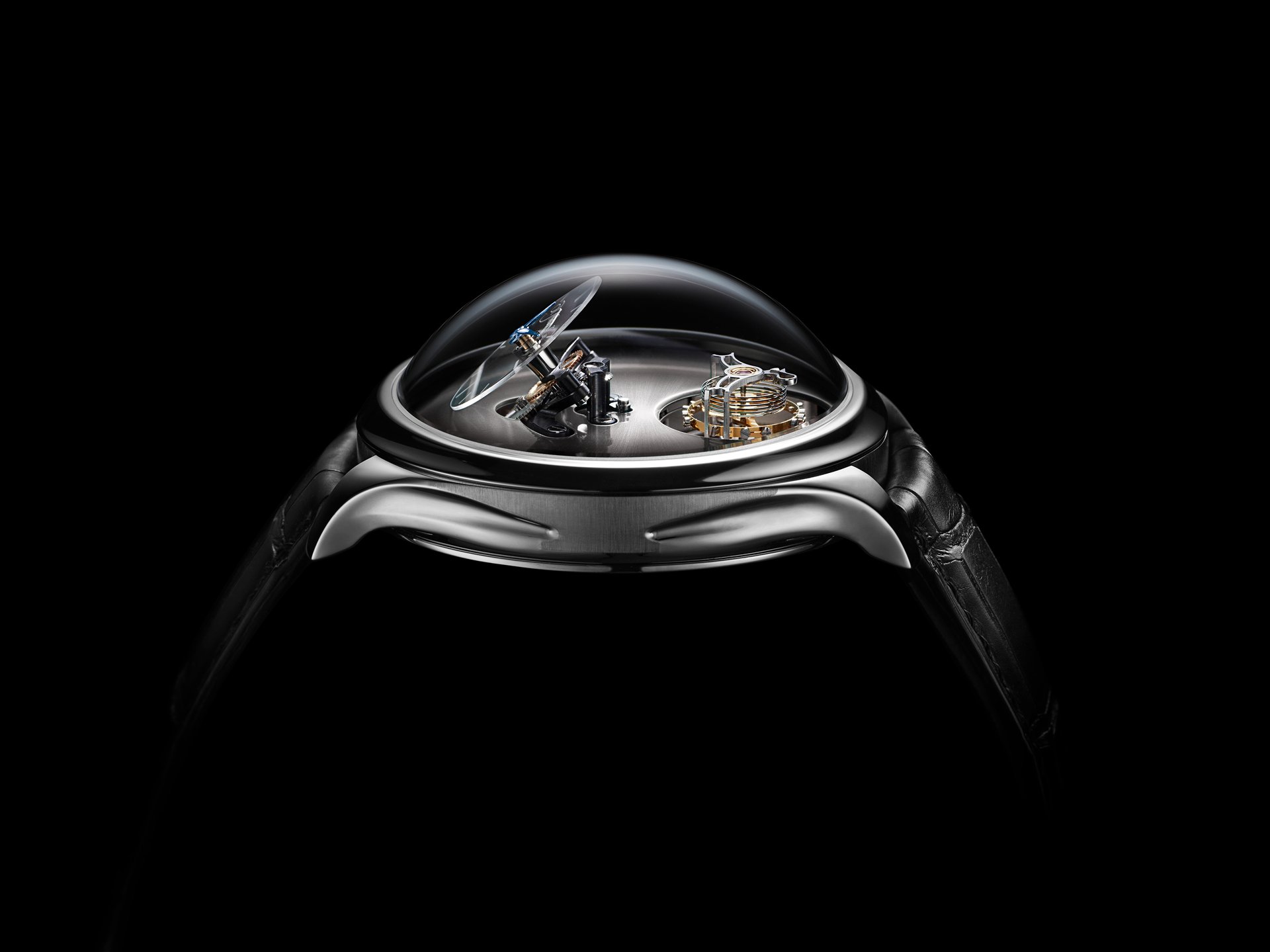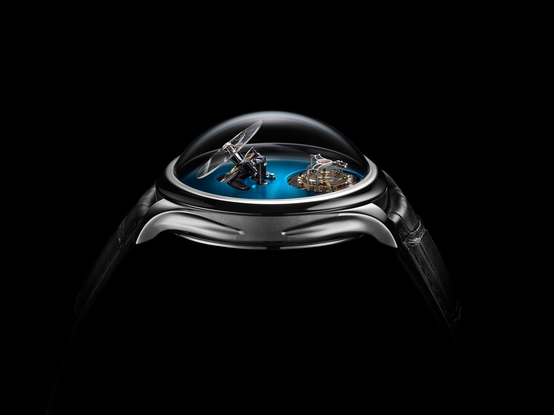 • Three-dimensional horological movement developed in-house by MB&F