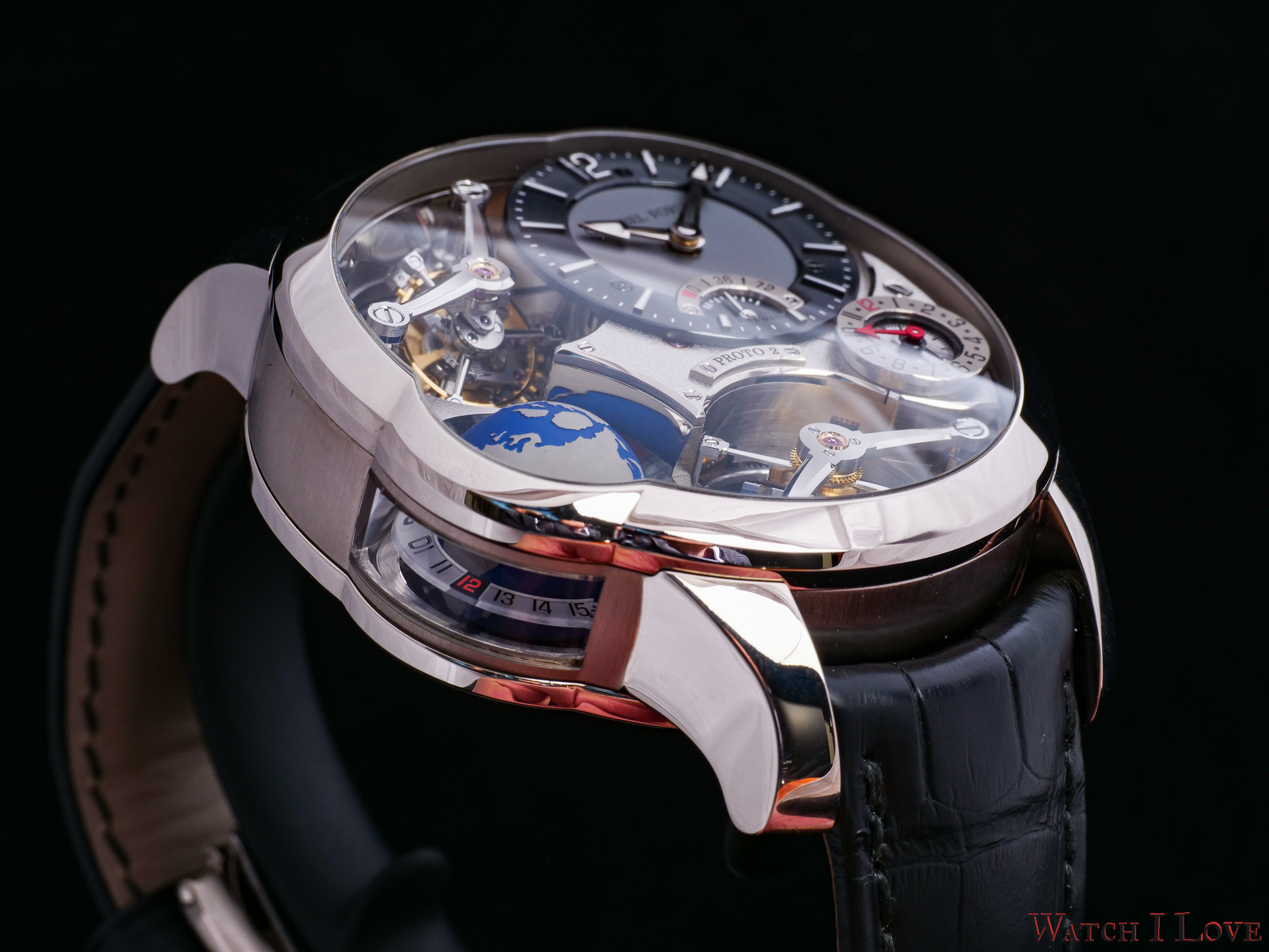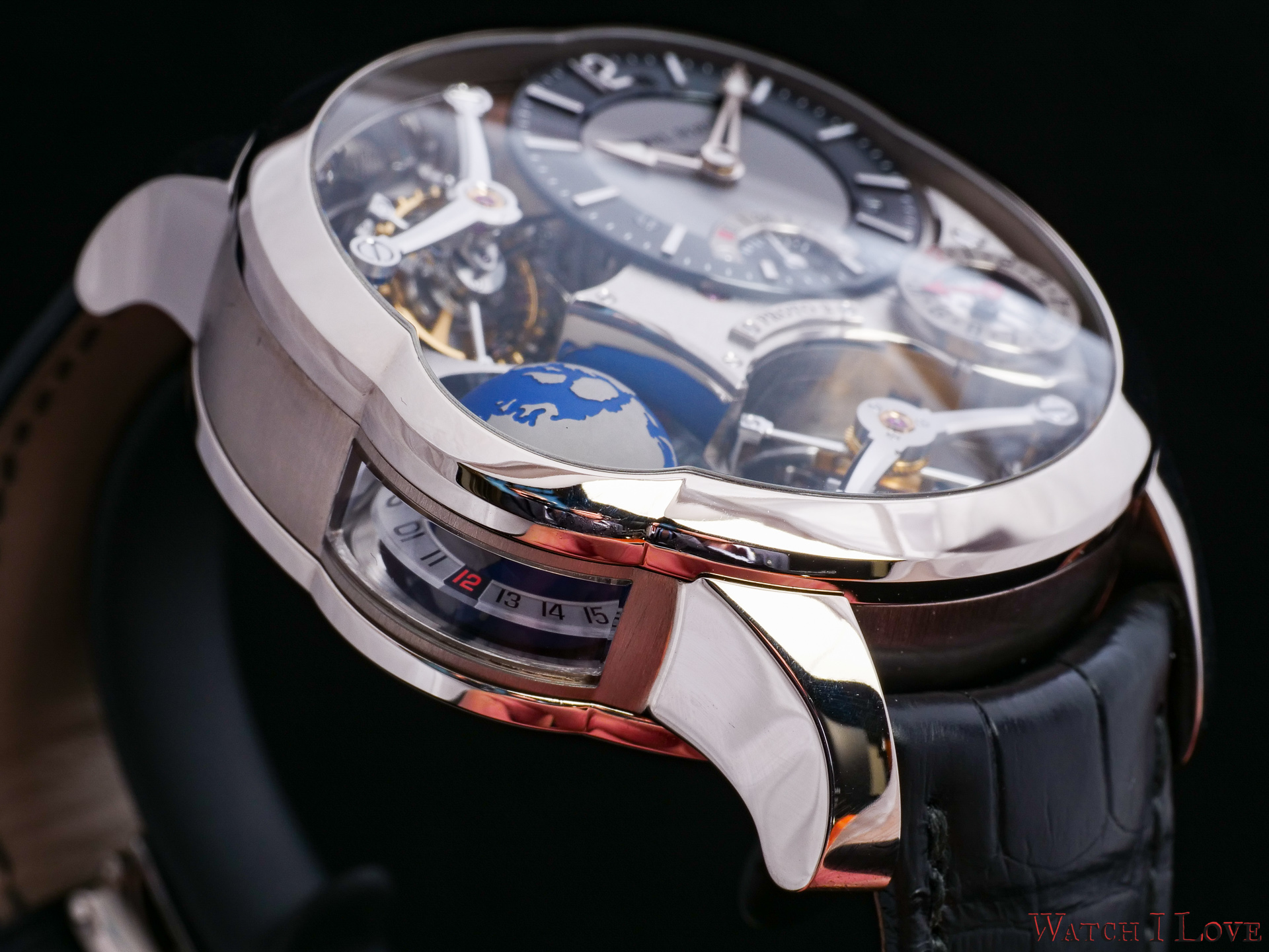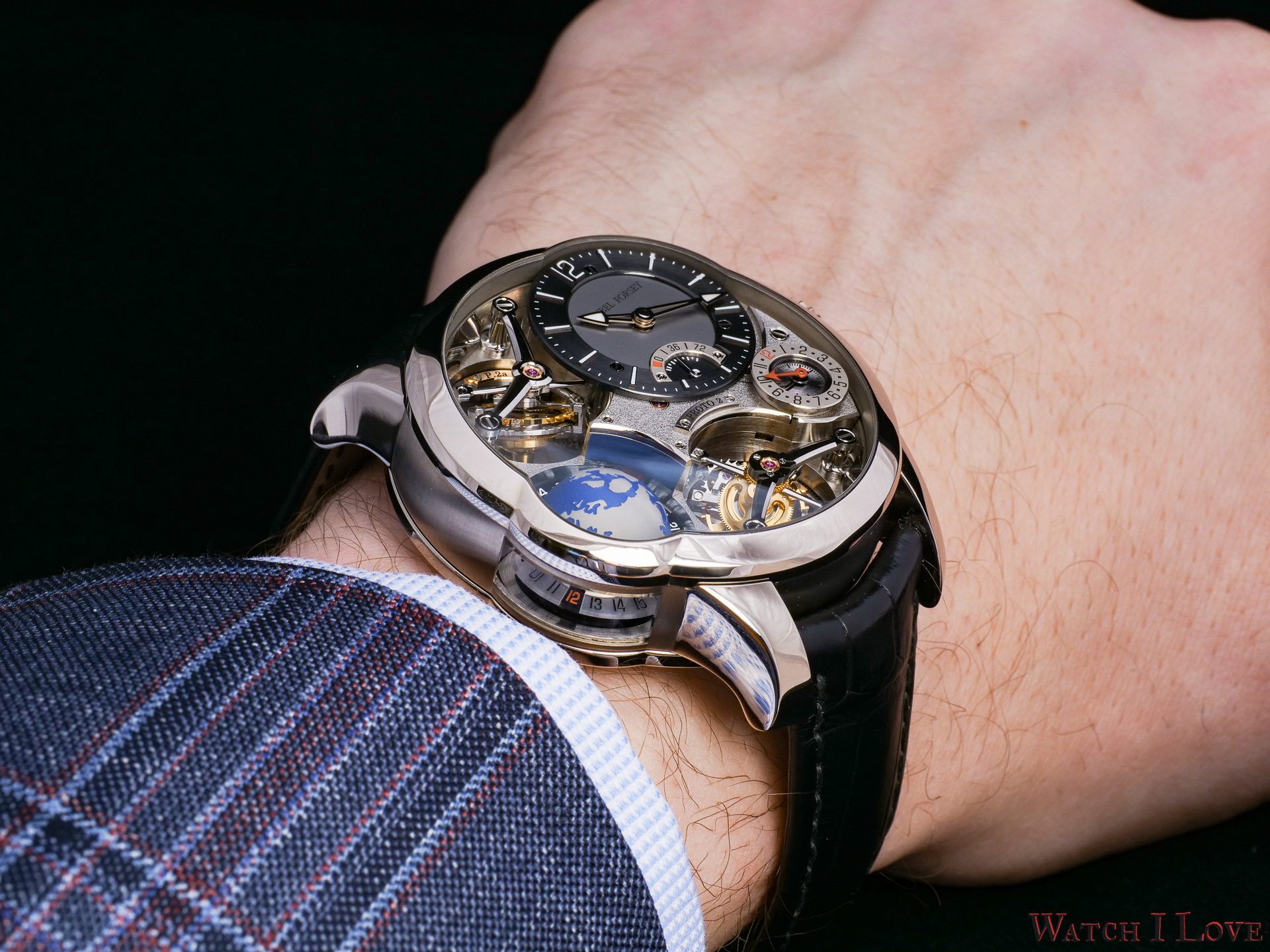 Greubel Forsey GMT Quadruple Tourbillon is, by a mile, a spectacular appearance. Even a complete horological agnostic person will be attracted by this complex machinery. The original display is not easy to hide under the sleeve.