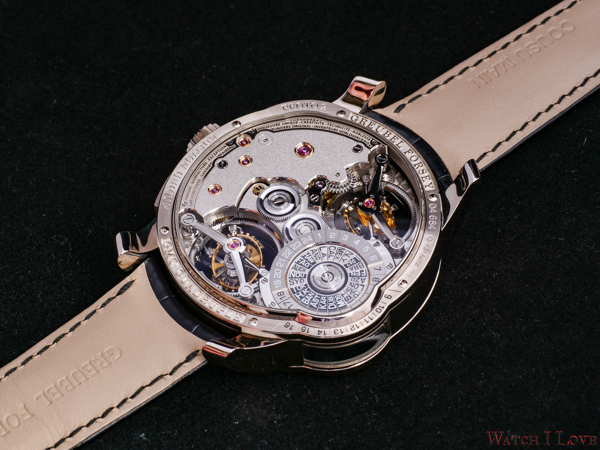 - Raised polished engraving “GMT Quadruple” and “Greubel Forsey” on a hand-punched background