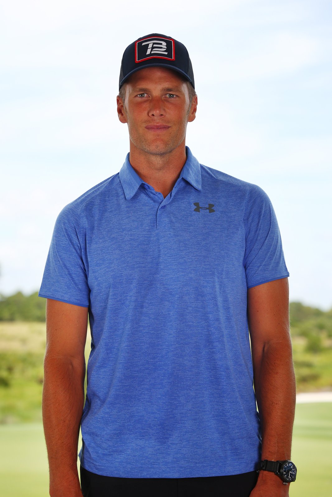NFL player and quarterback of the Tampa Bay Buccaneers Tom Brady poses before a training session for the “The Match: Champions for Charity” tournament at the Medalist Golf Club in Hobe Sound, Florida. (Photo by Mike Ehrmann / Getty Images for The Match)